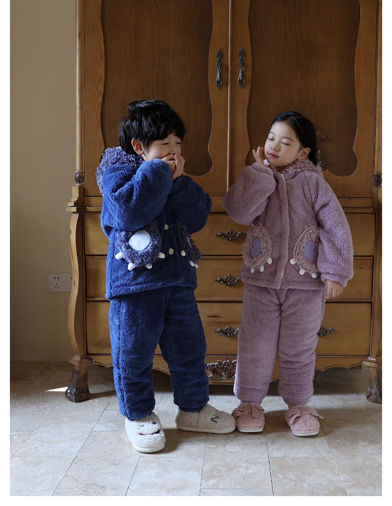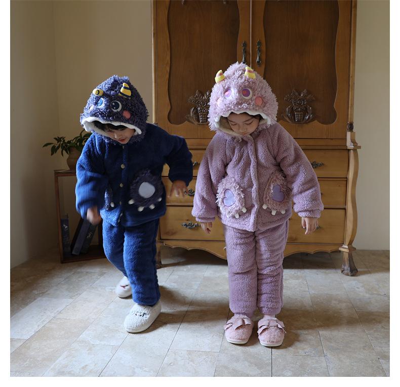 Pijamas gruesos de doble capa para niños y niñas, ropa de casa cálida con forro polar, para usar en el exterior, invierno de 2023
