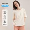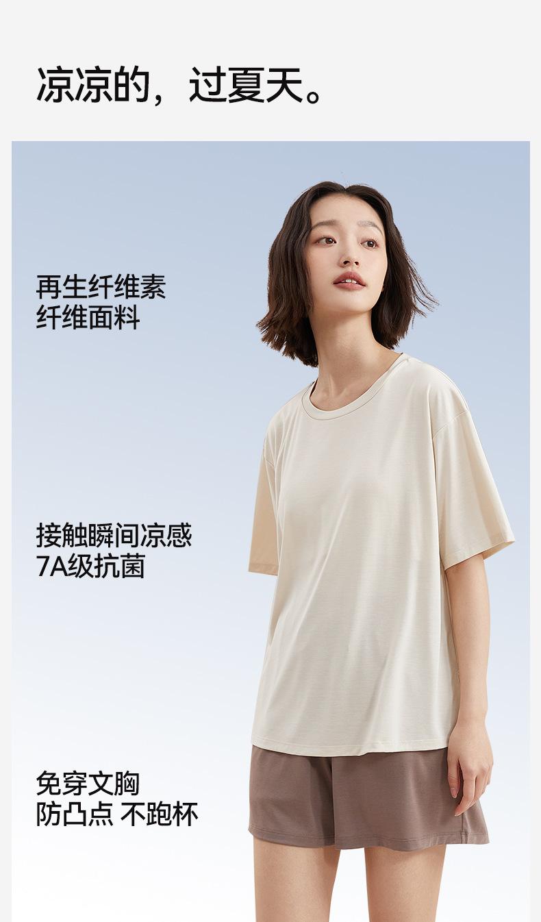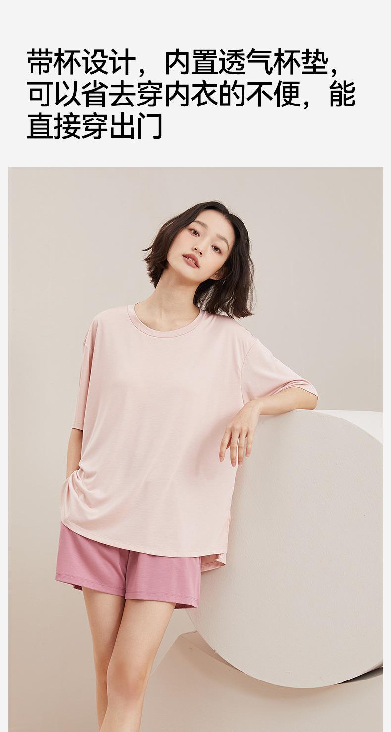 Camiseta con Almohadillas para el Pecho para Mujer, Camiseta Interior Modal de Manga Corta Holgada de Seda de Hielo de una Pieza Sin Sujetador para Casa