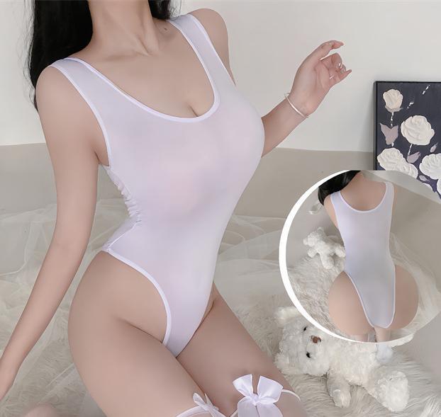 Innaya Lencería Sexy Traje de Baño de Una Pieza para Mujer Traje de Baño Perspectiva sin Espalda con Abertura en la Entrepierna Tentación de Fuga de Leche Apretada