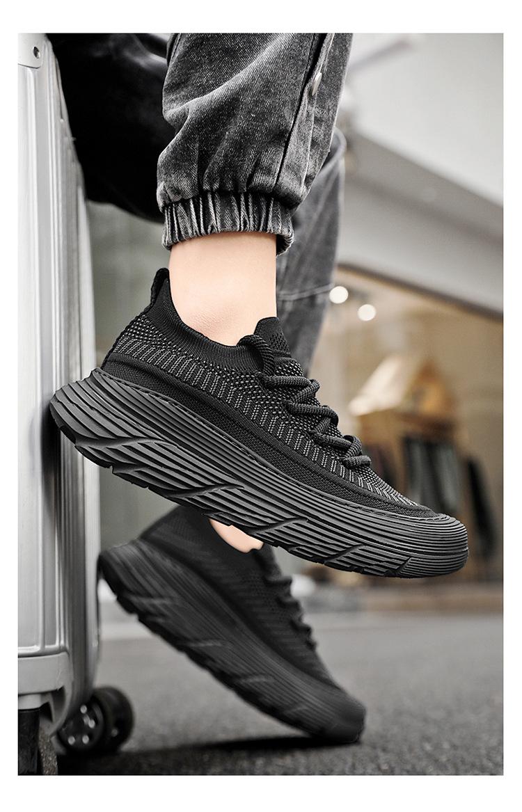 Zapatos de hombre transpirables de verano 2024, nuevos zapatos de malla fina con tejido Fly, zapatos deportivos para correr, suela suave, zapatos casuales negros de moda.