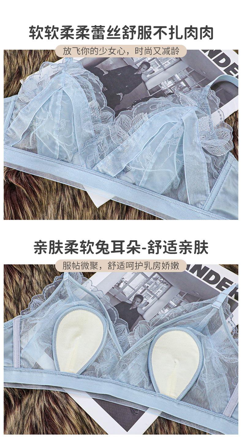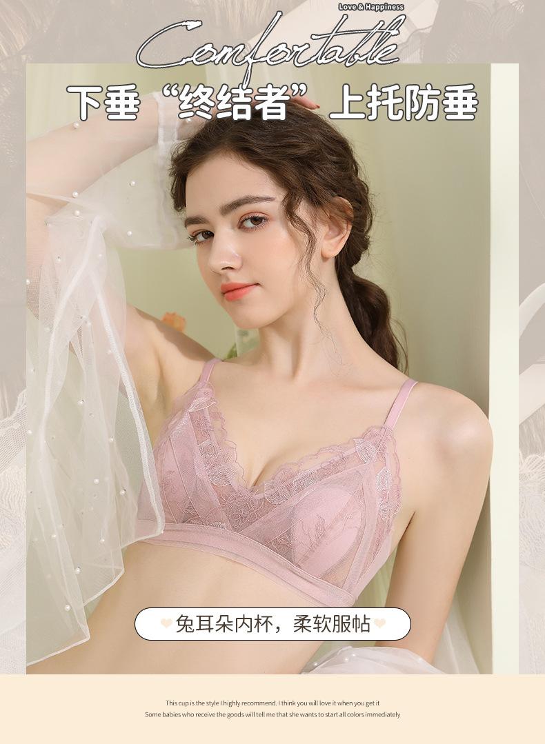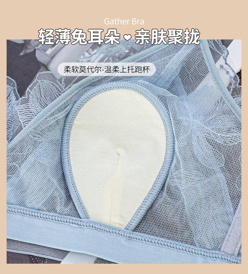 Nuevo sujetador fino con orejas de conejo estilo francés, pequeño, push-up, sin aro de acero, cómodo sujetador de encaje, ropa interior, conjunto de bragas para mujer
