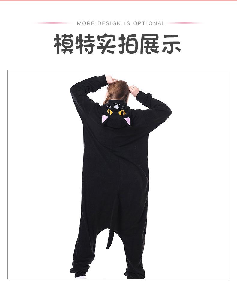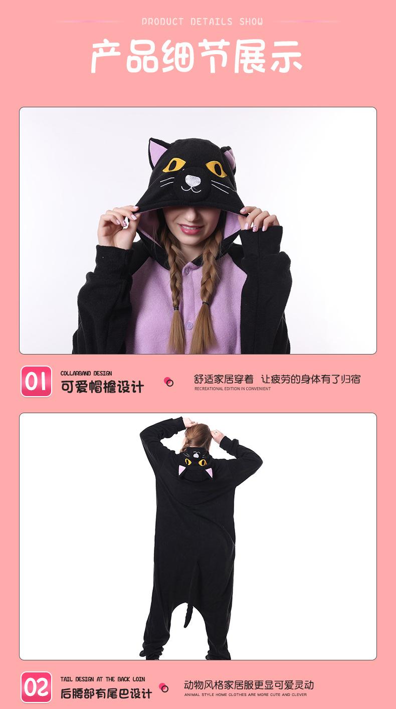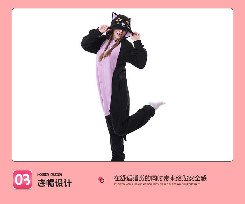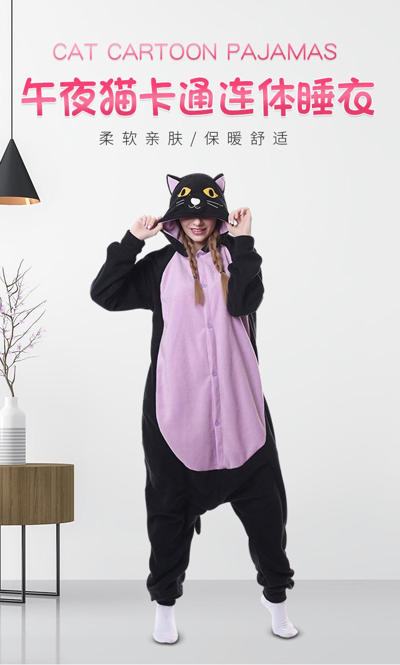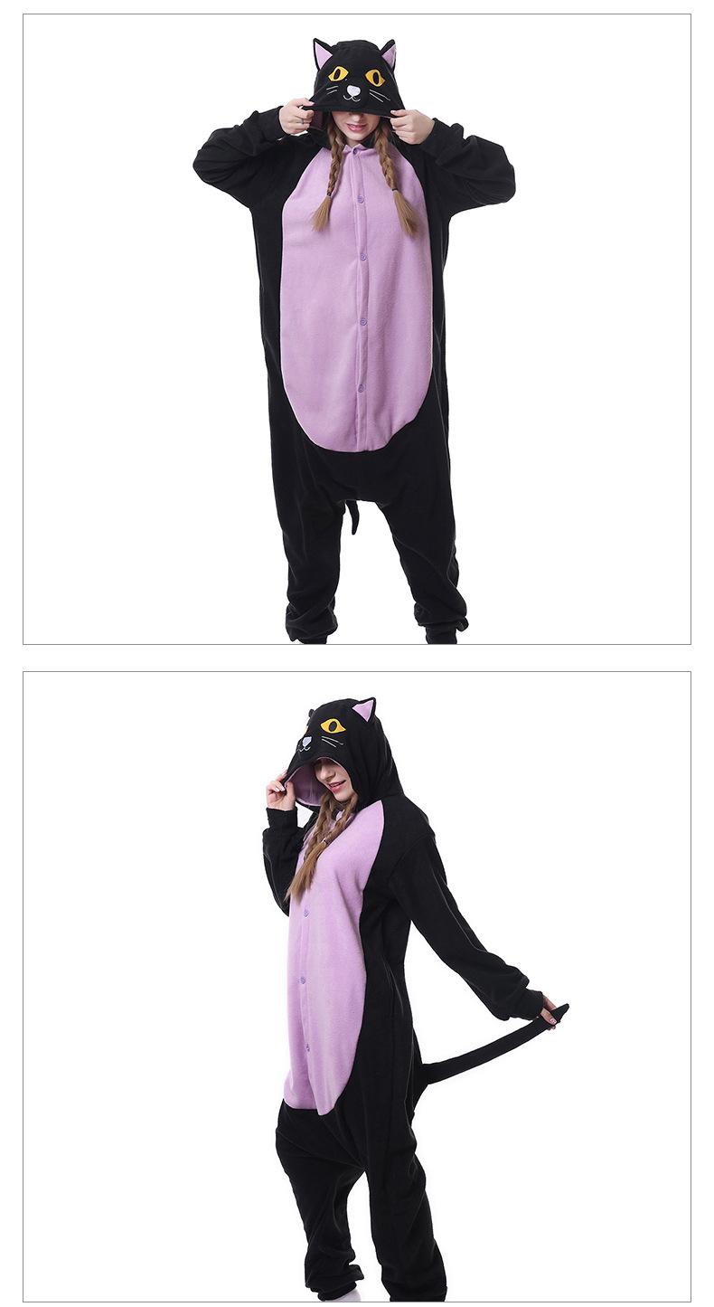 Pijama Entero de Dibujos Animados con Temática Animal de Lote Mixto de Halloween para Adultos, Felpa de Gato de Medianoche para Pareja, Ropa de Dormir Moderna