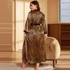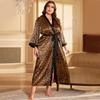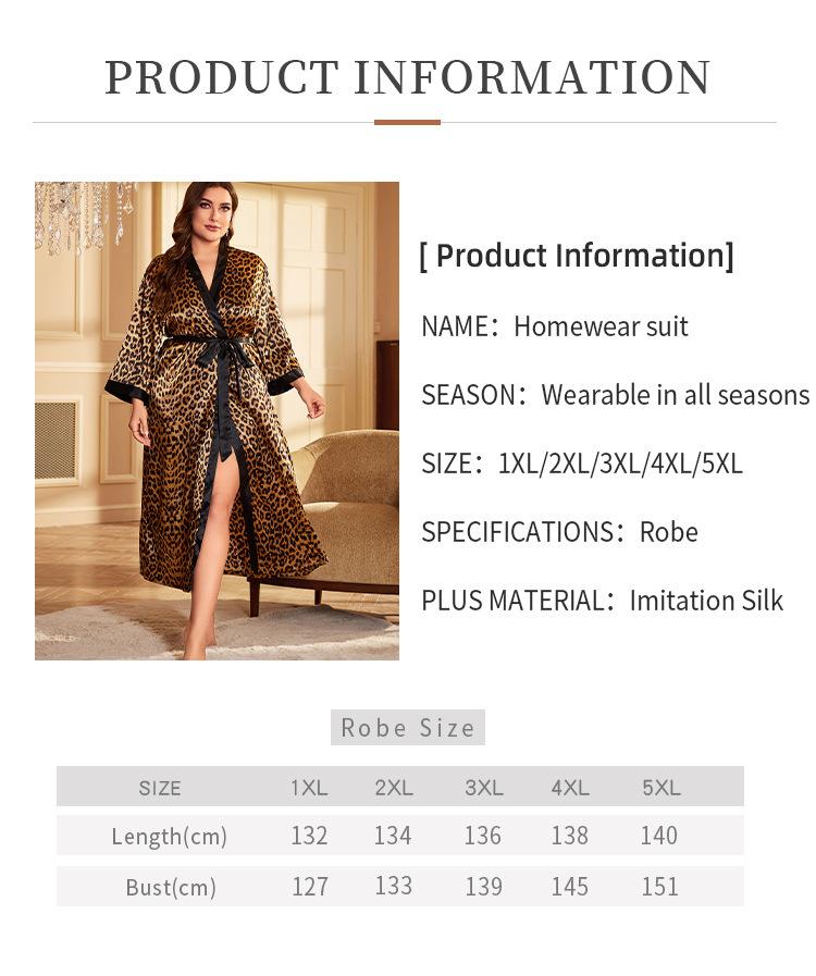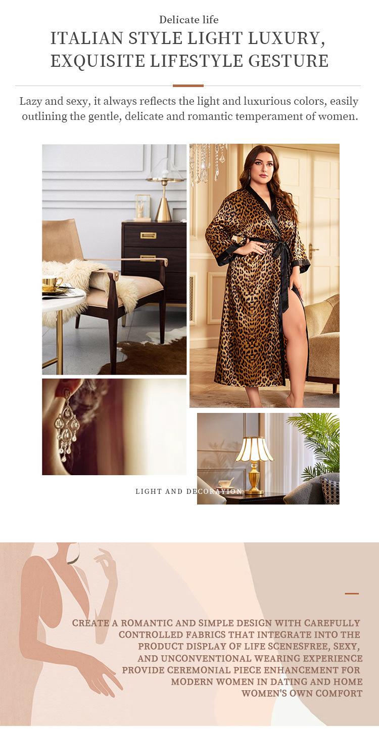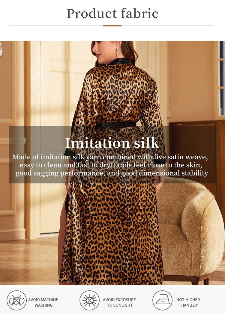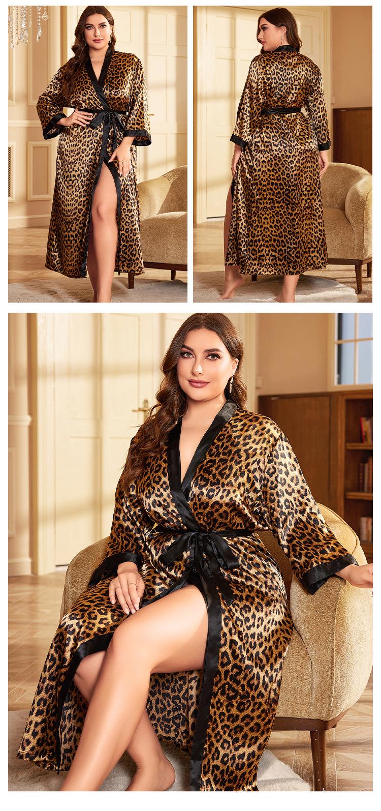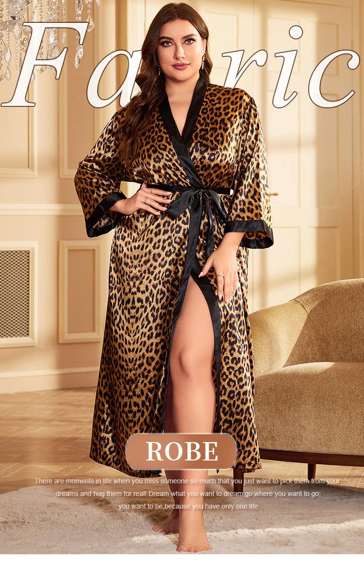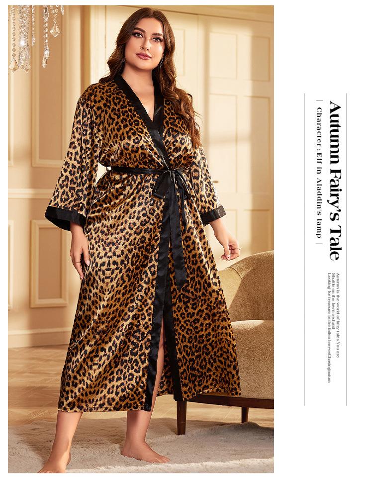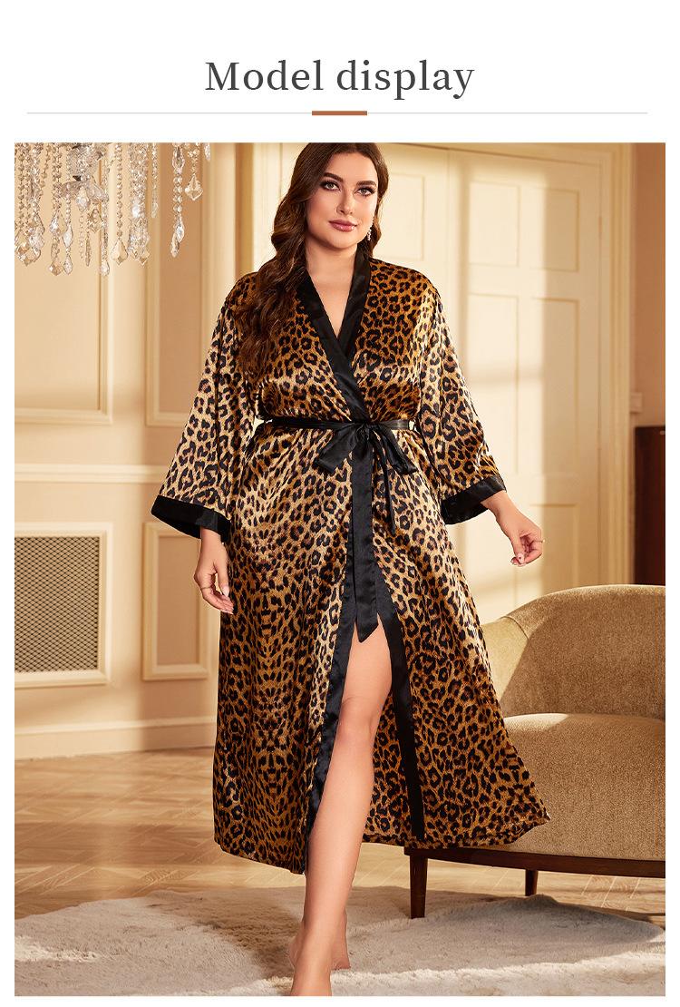 Camisón de seda artificial sexy de talla grande para primavera y verano, pijama con estampado de leopardo para el hogar, cárdigan holgado sexy con cordones, bata de baño