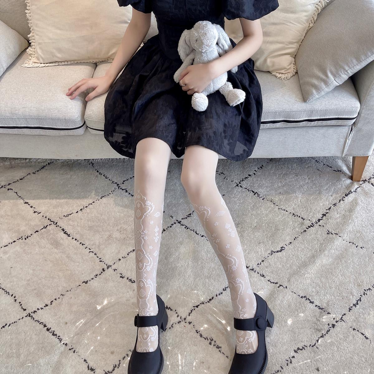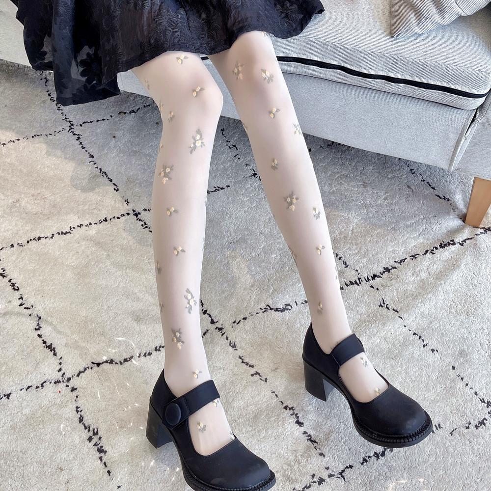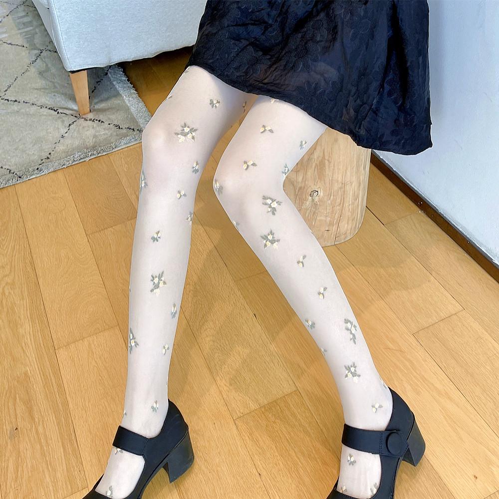 Estilo Japonés Dulce Primavera y Verano Ultradelgadas Seda Hilada con Núcleo Blanco Leche Floral Medias de Seda Pantimedias Jacquard Tótem de Pantorrilla Niños