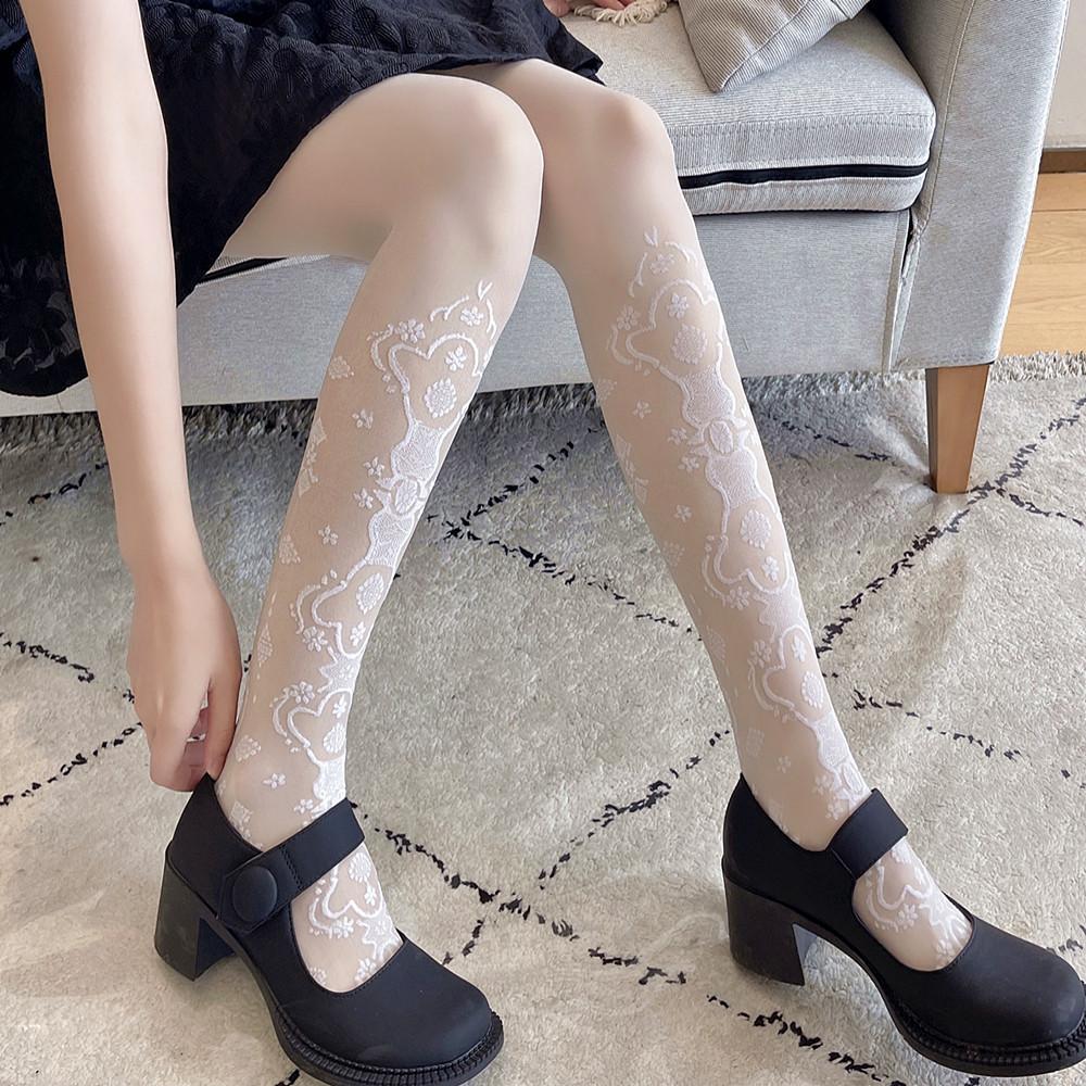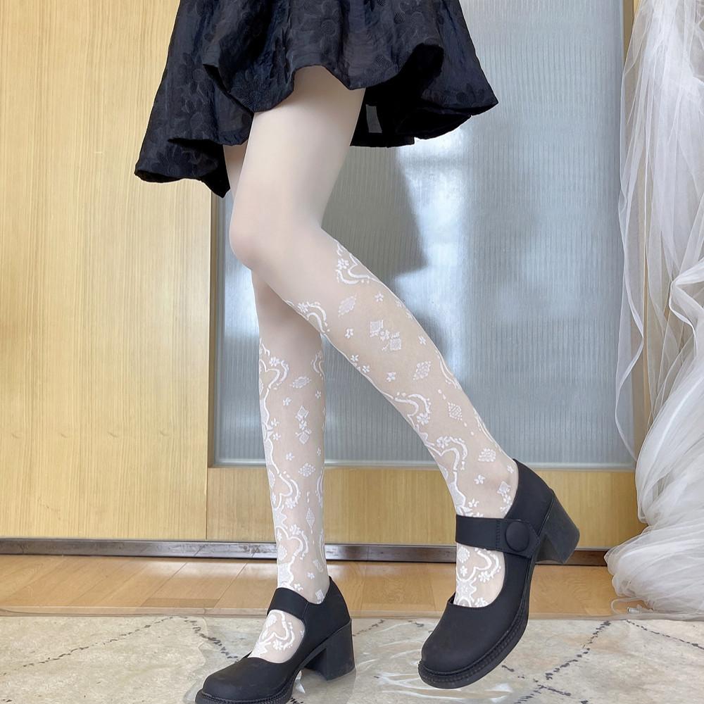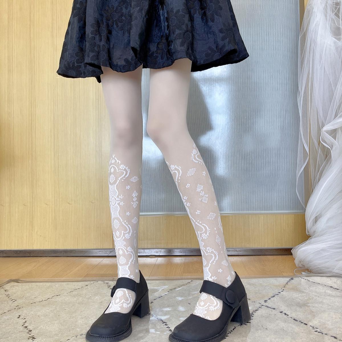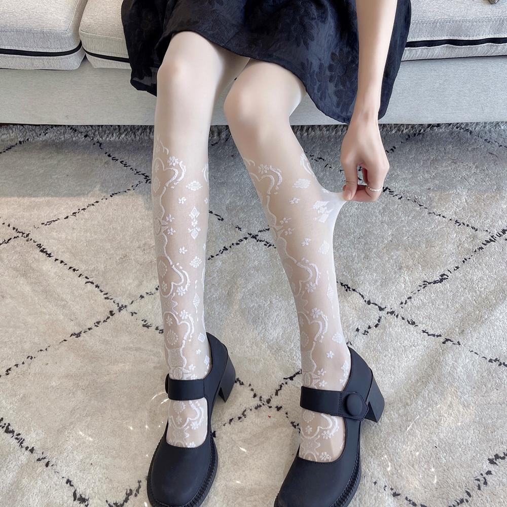Estilo Japonés Dulce Primavera y Verano Ultradelgadas Seda Hilada con Núcleo Blanco Leche Floral Medias de Seda Pantimedias Jacquard Tótem de Pantorrilla Niños