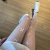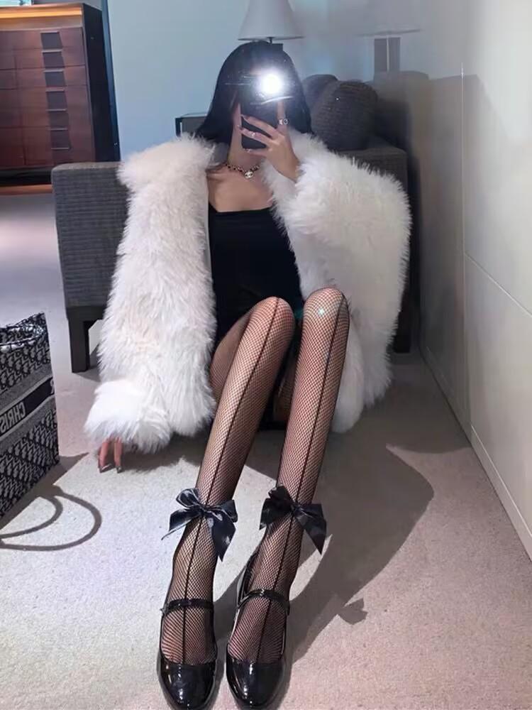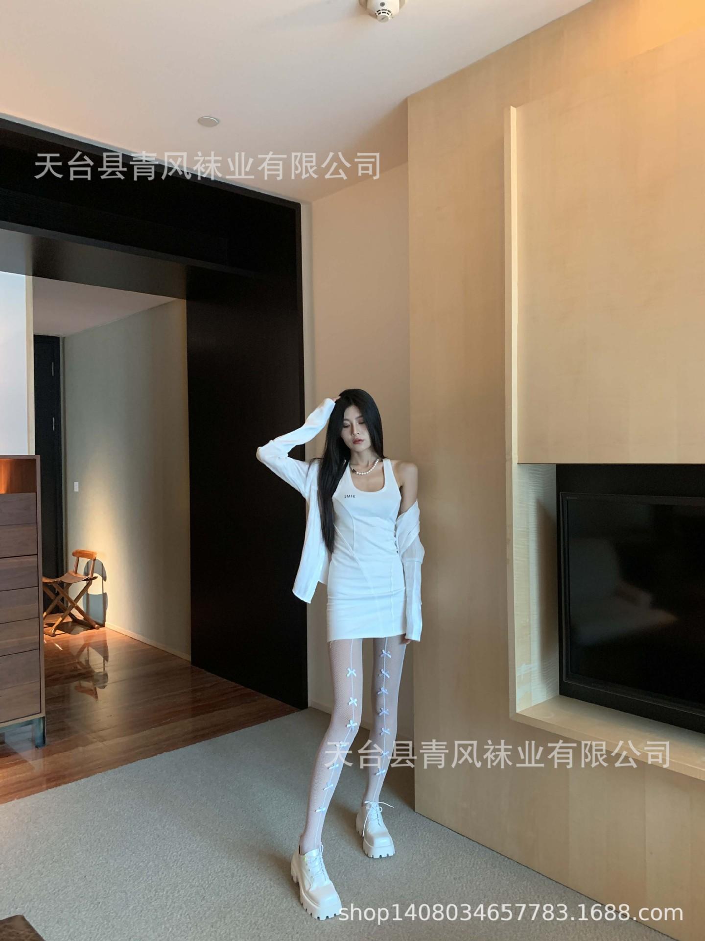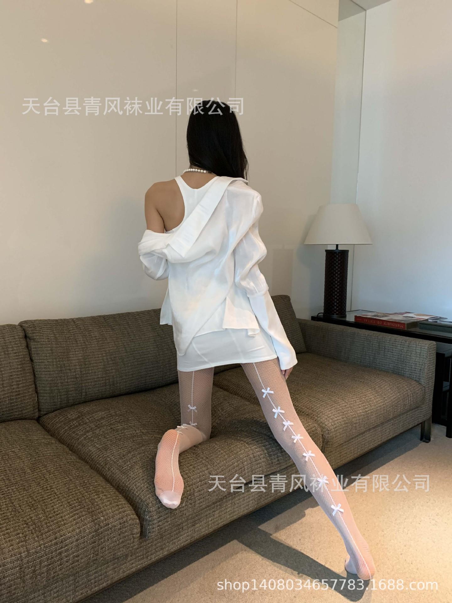 Calcetines de red con lazo blanco para mujer, finos y sexys, tipo pantimedias JK, con lazo hueco, de un solo cuerpo, de red negra.