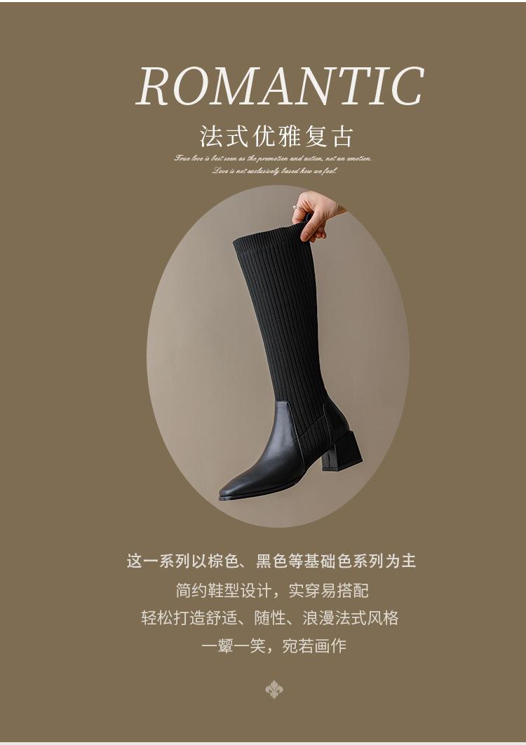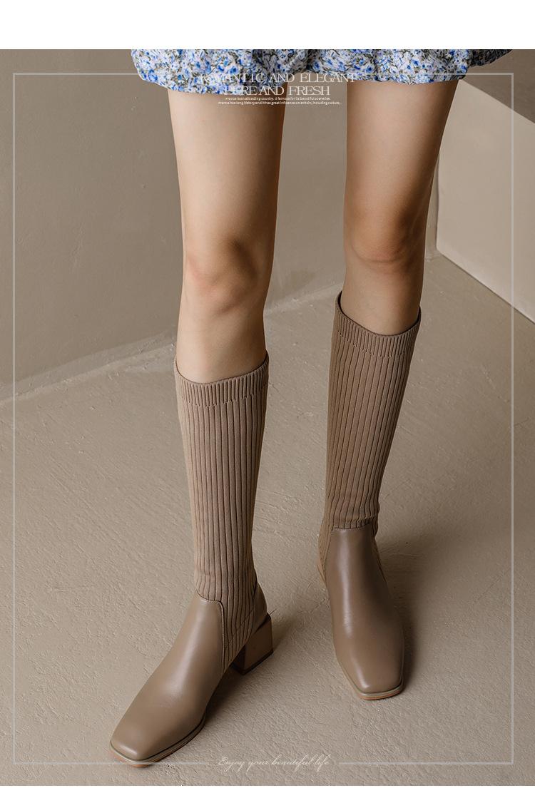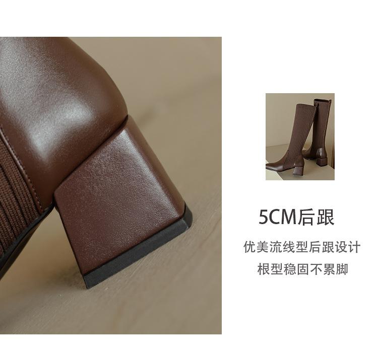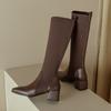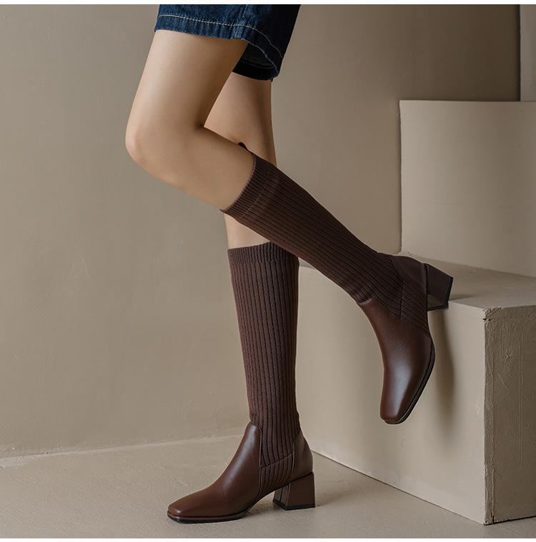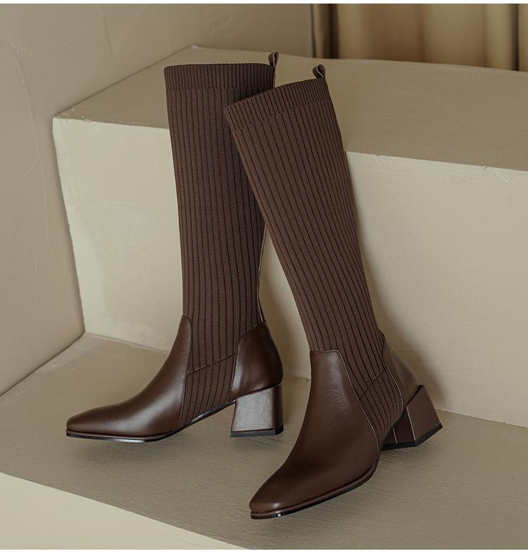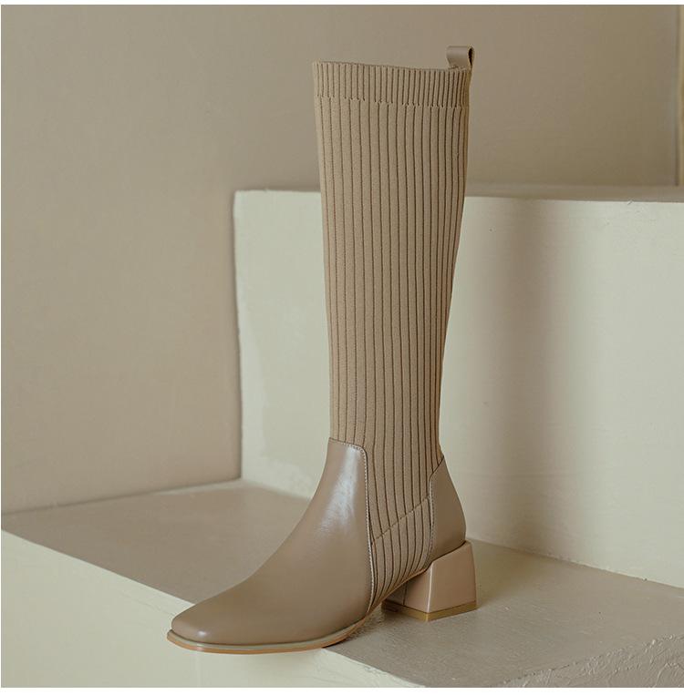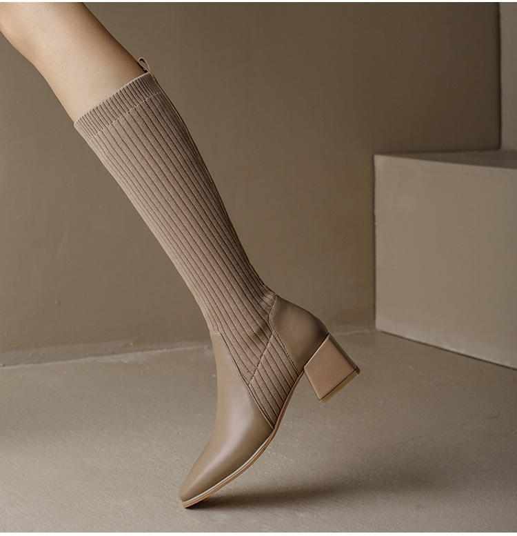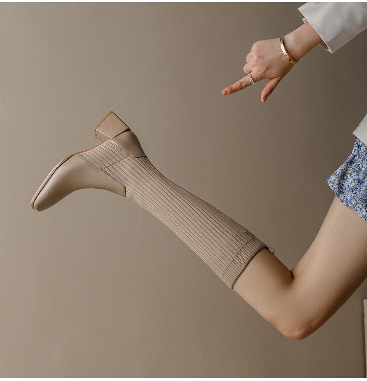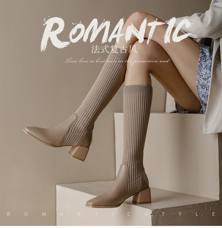 Botas finas de lana elástica de punto vintage para mujer, calcetines de tacón grueso hasta la rodilla, botas largas, botas individuales de primavera y otoño