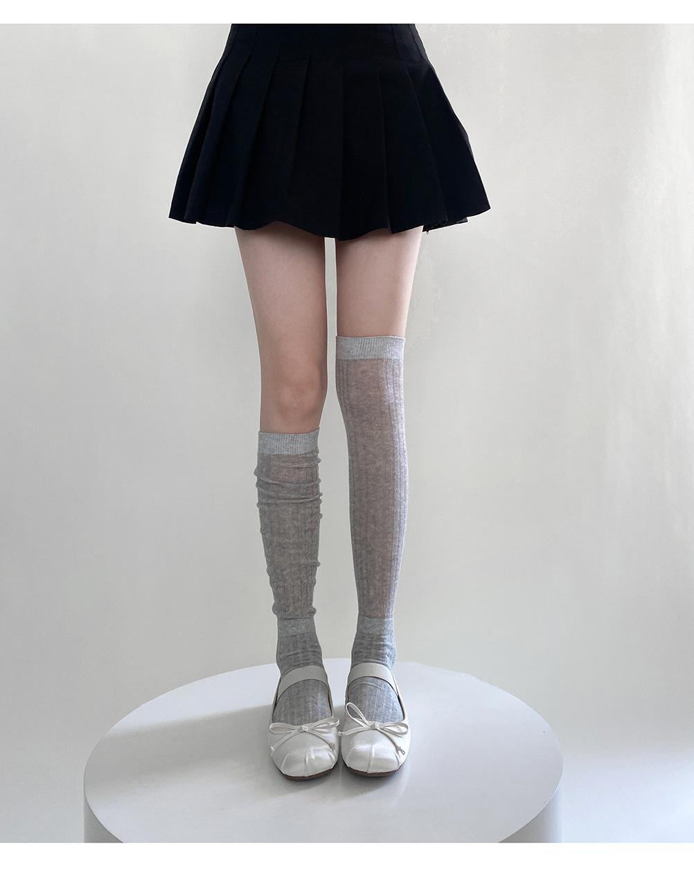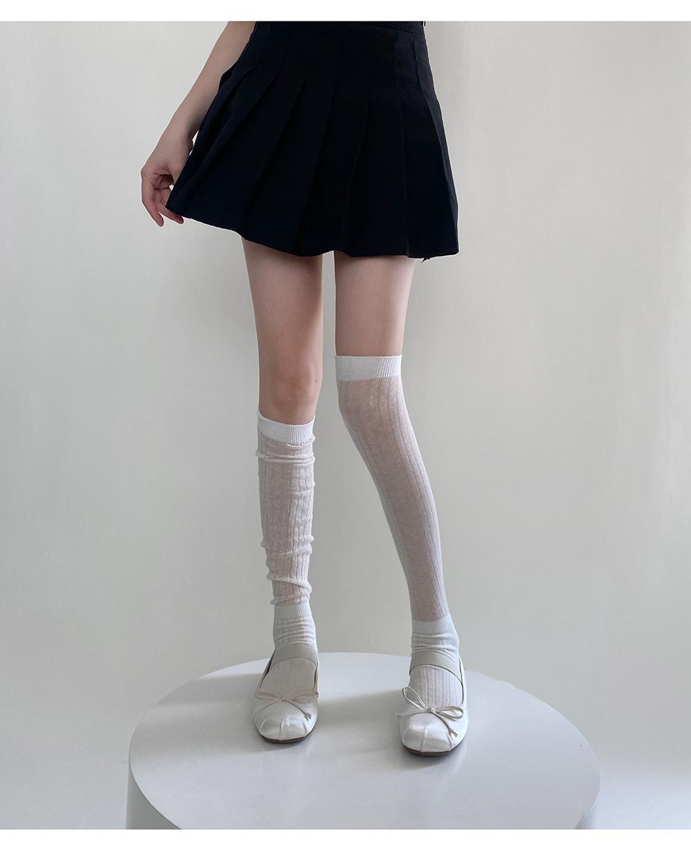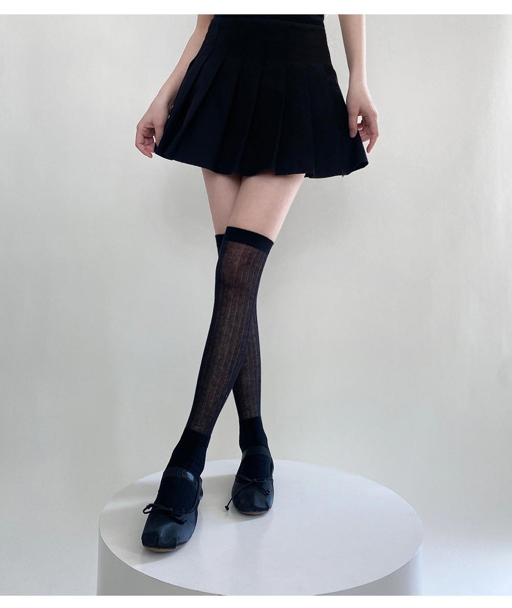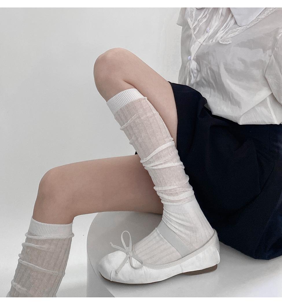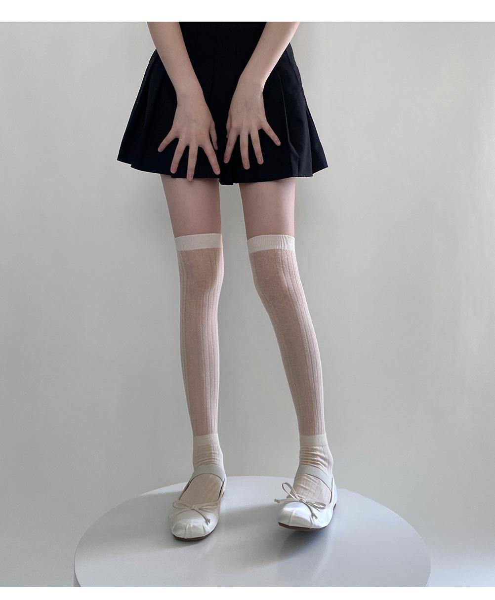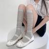 Calcetines blancos sencillos de estilo japonés de verano para mujer, finos, dulces, de algodón jk, con rayas verticales, por encima de la rodilla, apilados, combinables con todo.