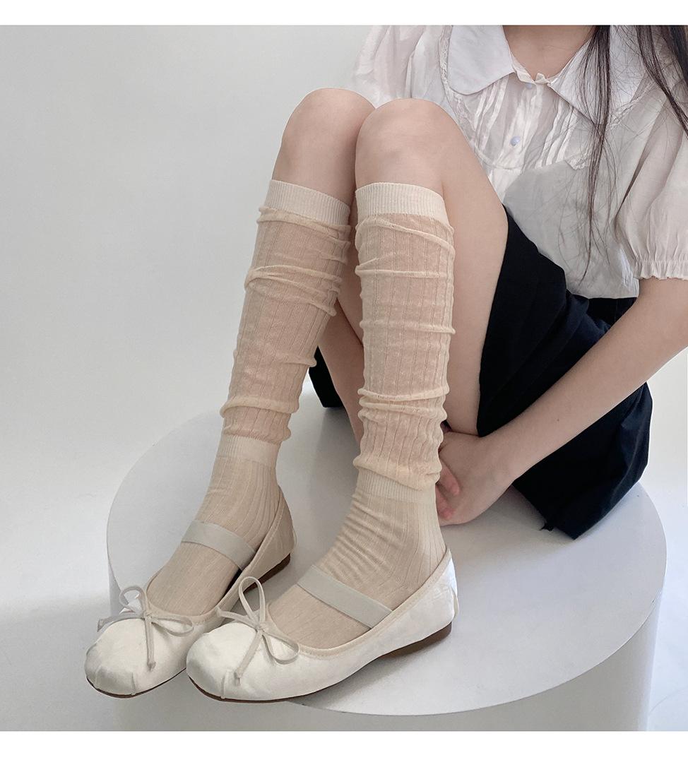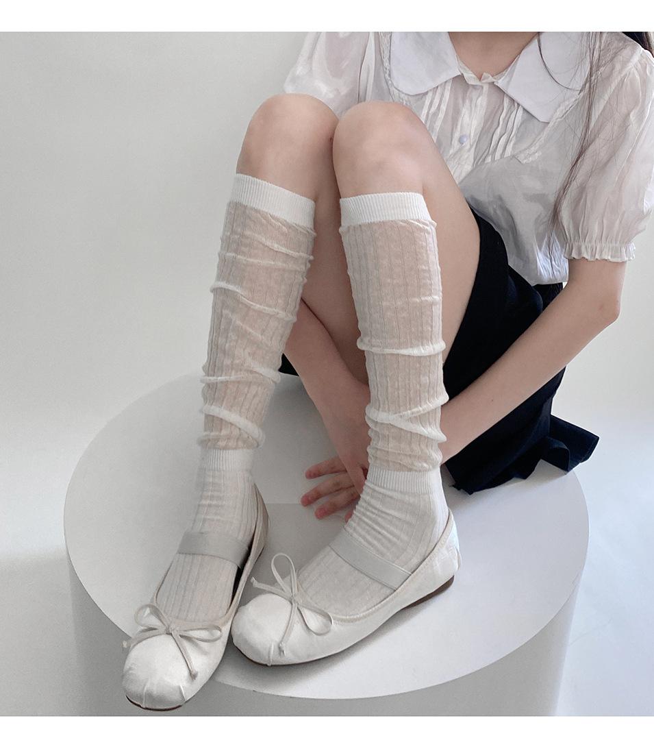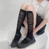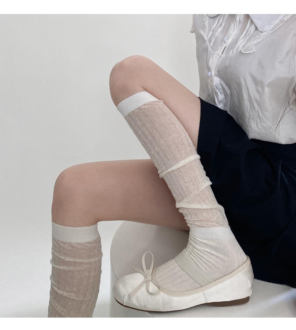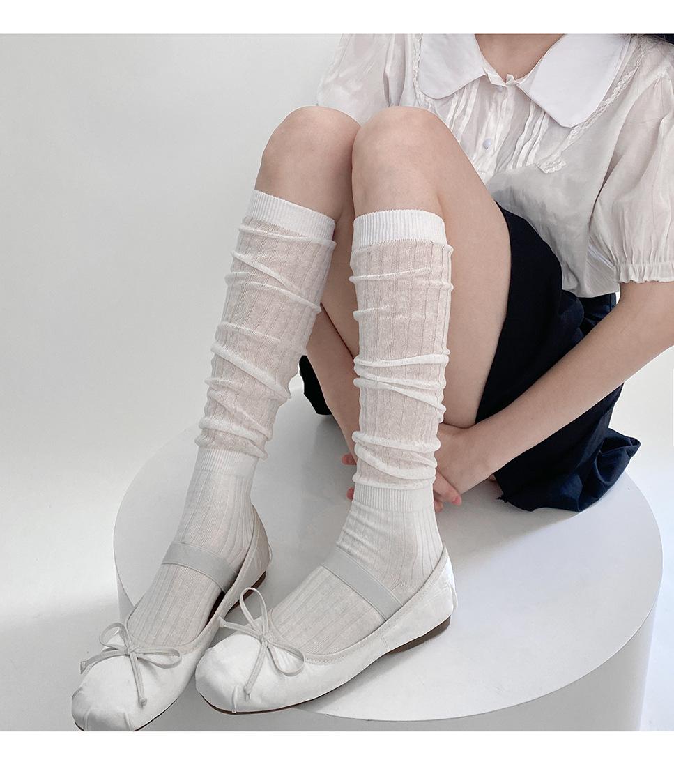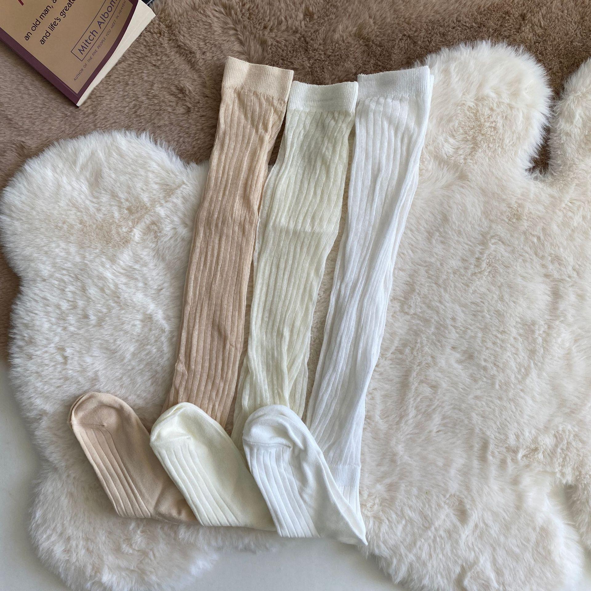 Calcetines blancos sencillos de estilo japonés de verano para mujer, finos, dulces, de algodón jk, con rayas verticales, por encima de la rodilla, apilados, combinables con todo.