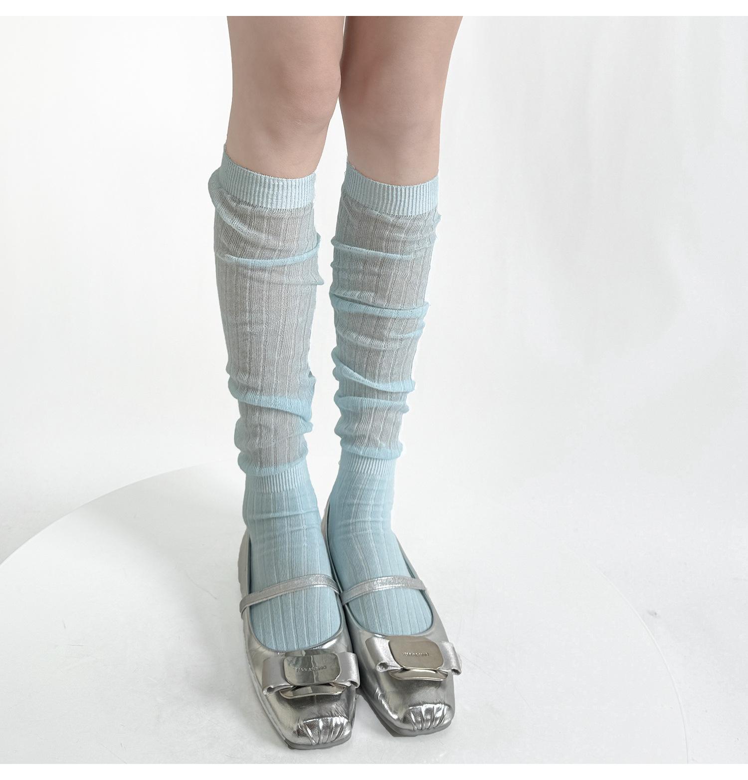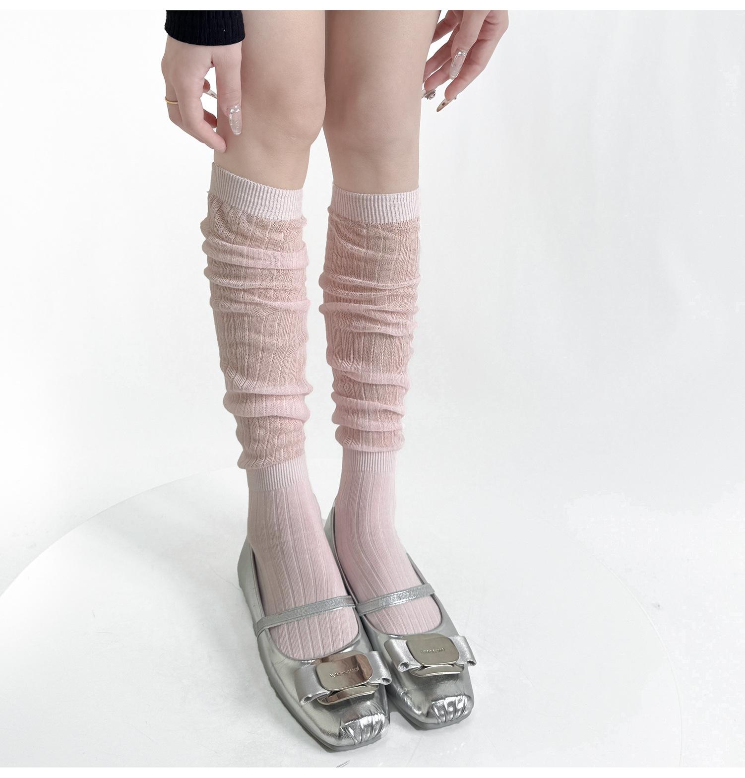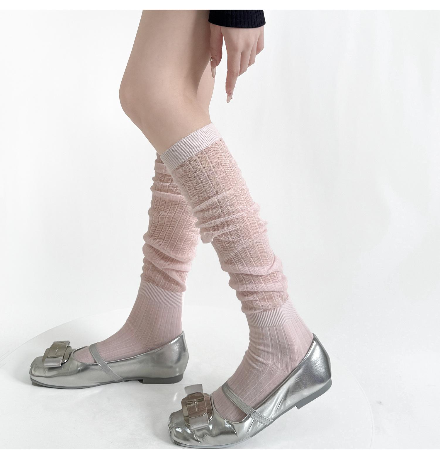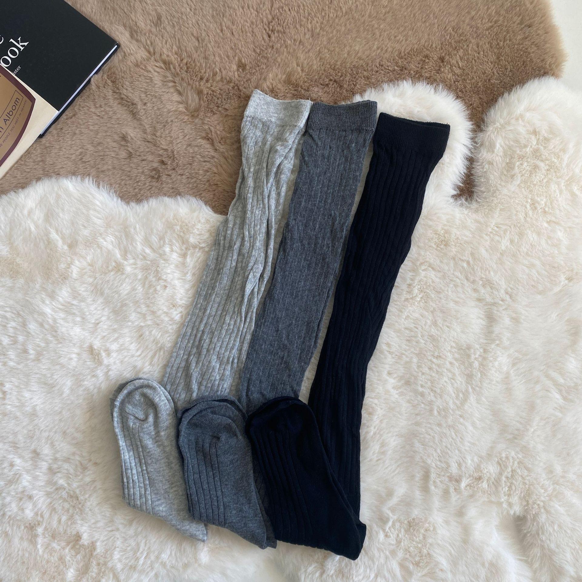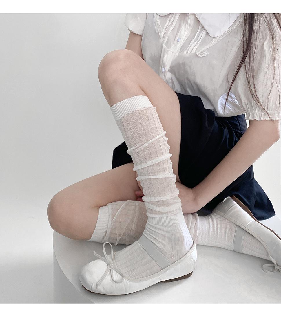 Calcetines blancos sencillos de estilo japonés de verano para mujer, finos, dulces, de algodón jk, con rayas verticales, por encima de la rodilla, apilados, combinables con todo.