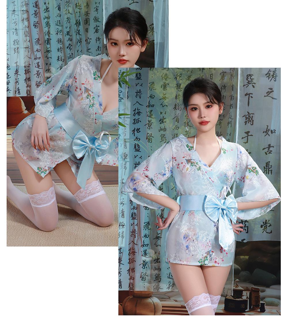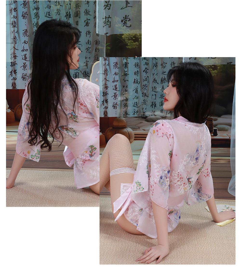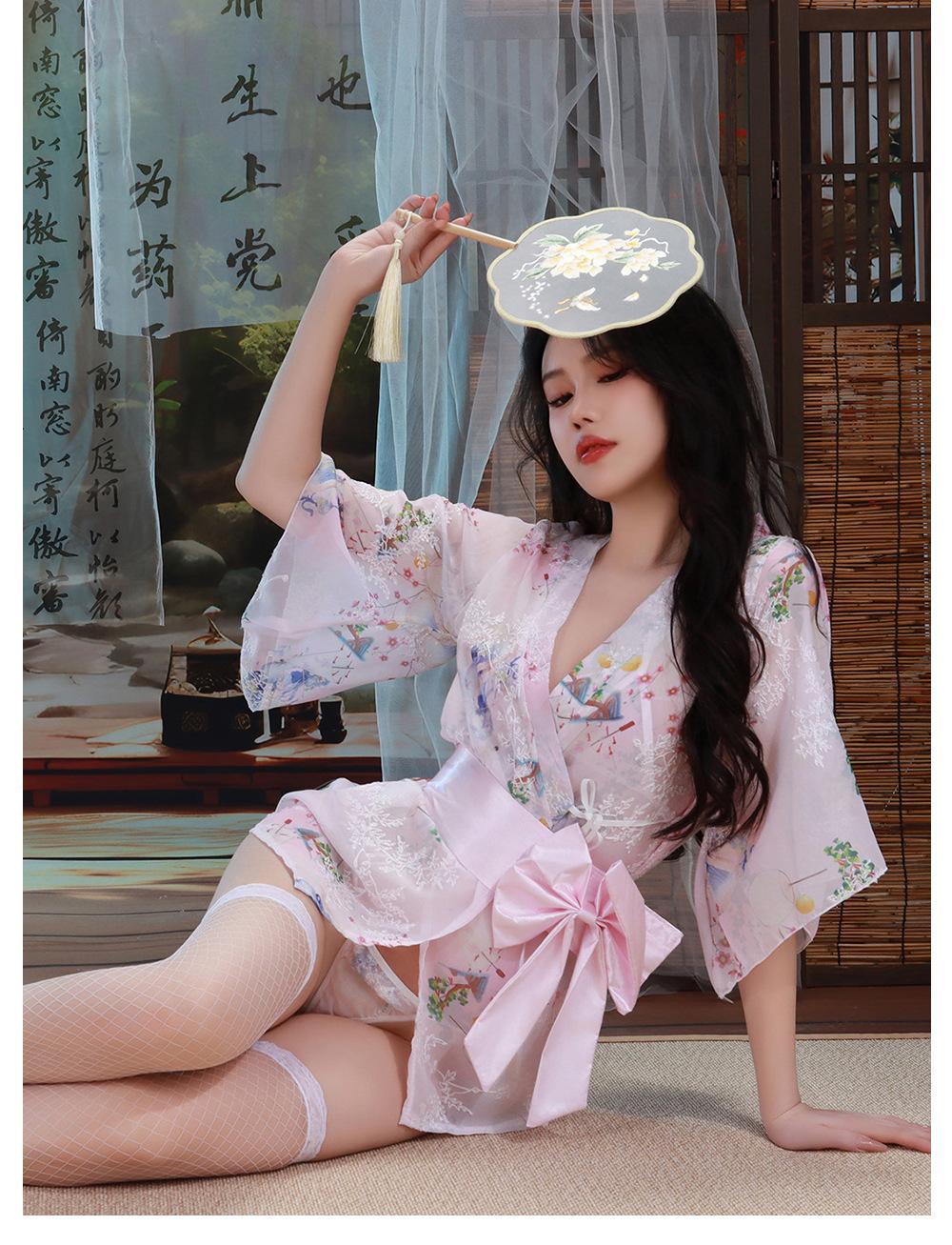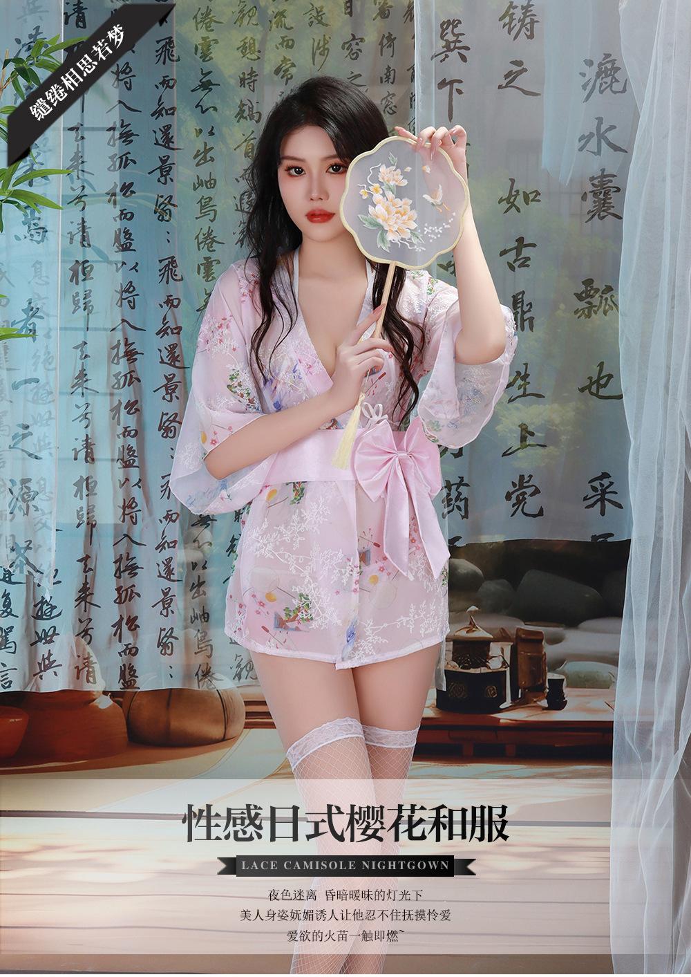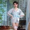 Noche Dorada Ropa Interior Sexy talla grande Traje Kimono Japonés Sexy Dulce Bata con Lazo Pijama de Tentación de Perspectiva para Mujer