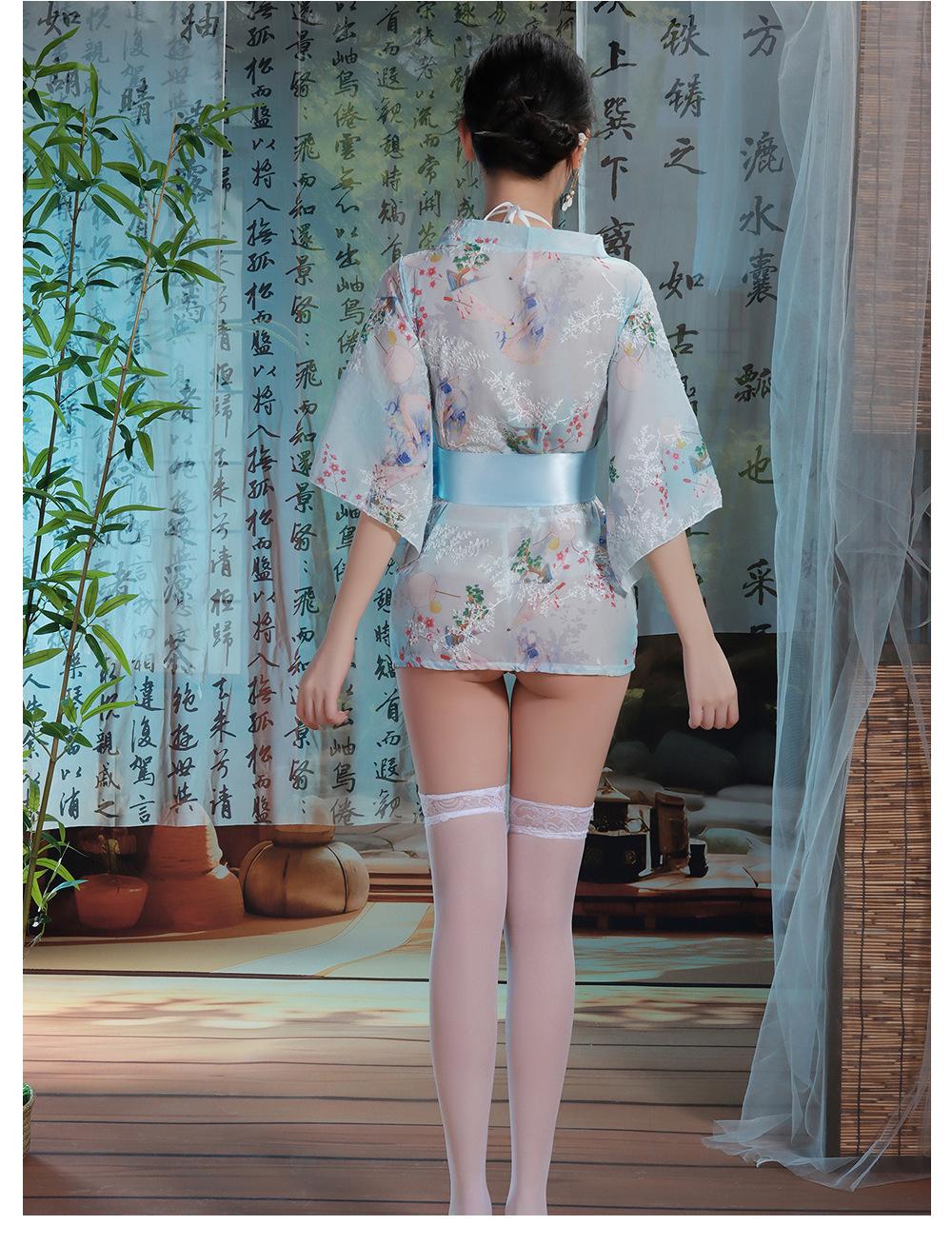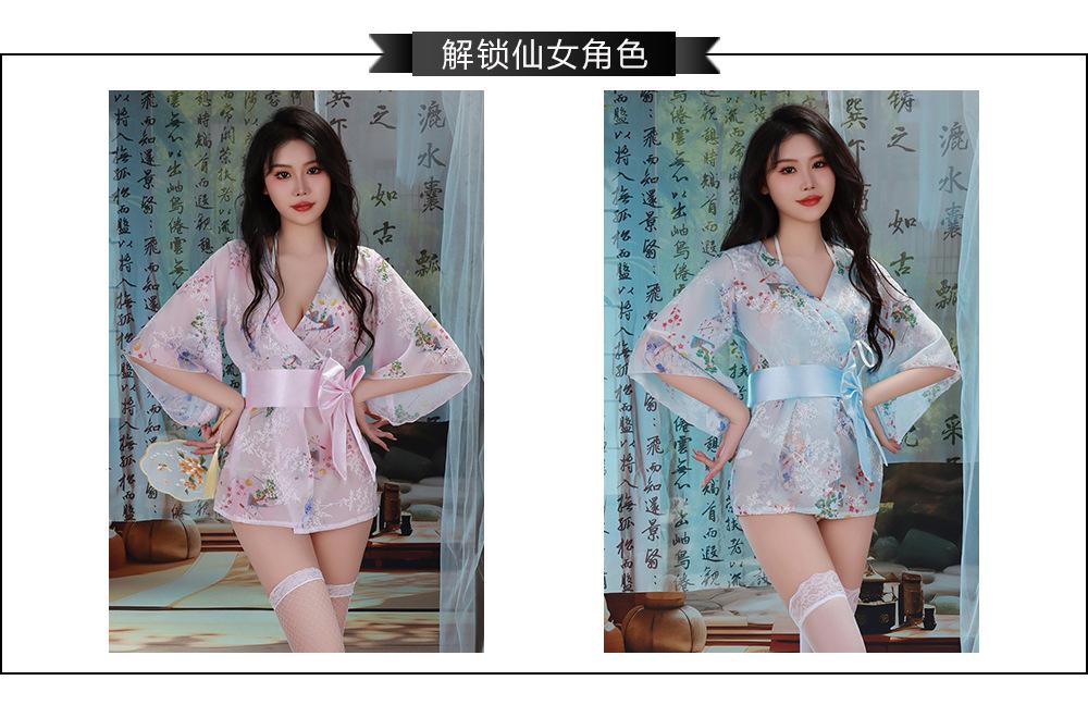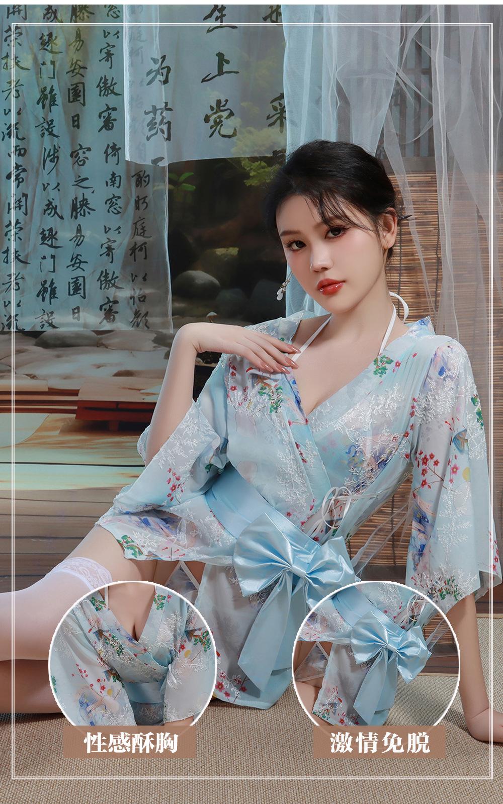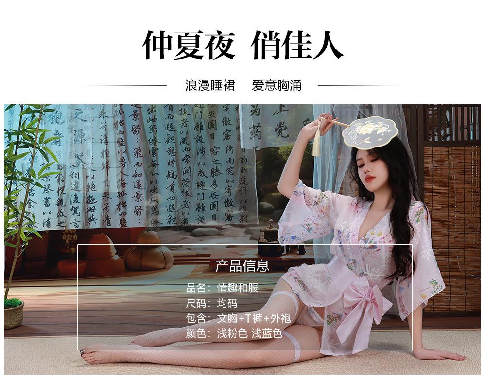 Noche Dorada Ropa Interior Sexy talla grande Traje Kimono Japonés Sexy Dulce Bata con Lazo Pijama de Tentación de Perspectiva para Mujer