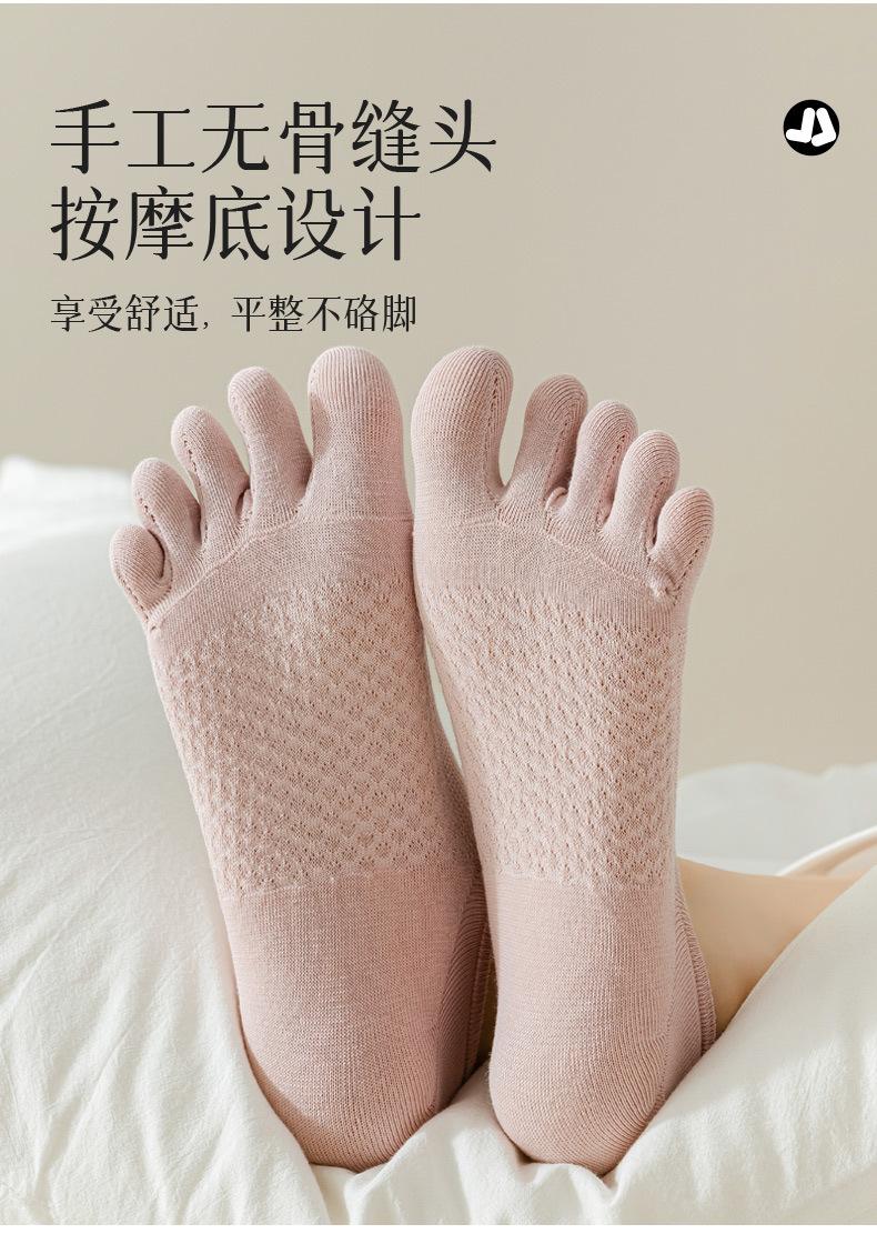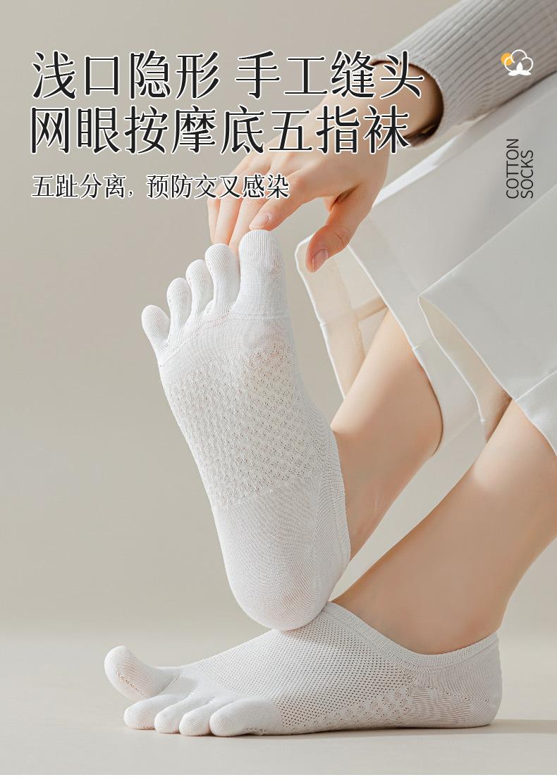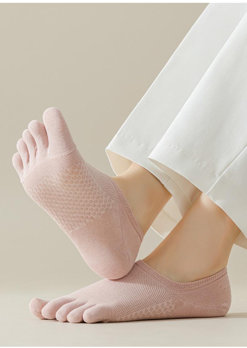 Calcetines de Verano de Malla de Cinco Dedos Malla Ligeros Transpirables Sin Costuras Invisibles Suela de Masaje Antideslizantes Color Sólido Calcetines Cortos de Barco
