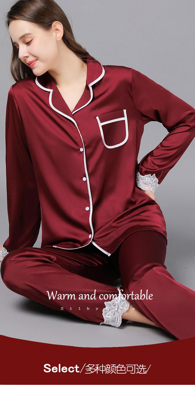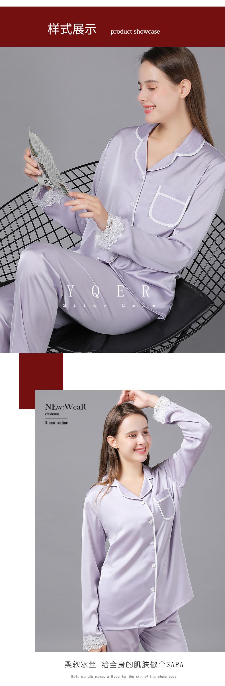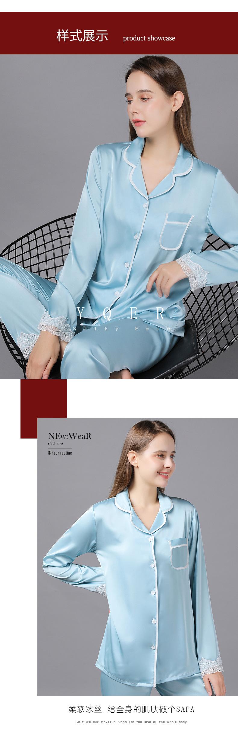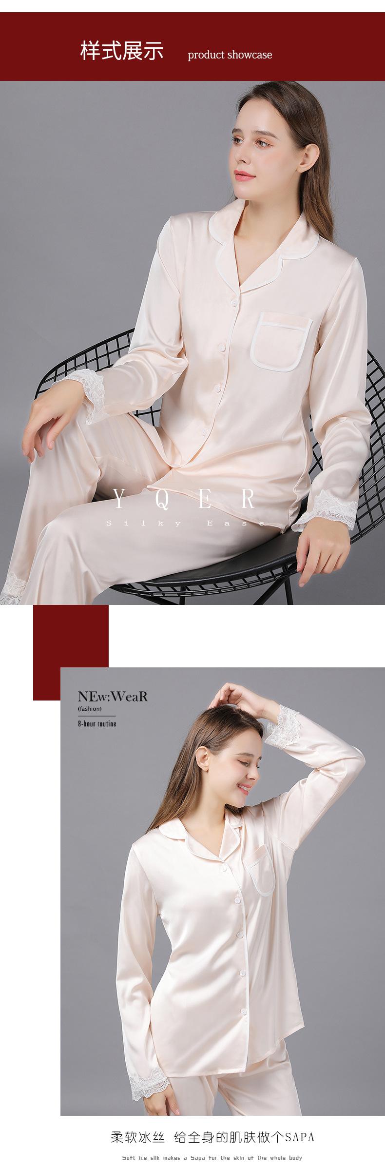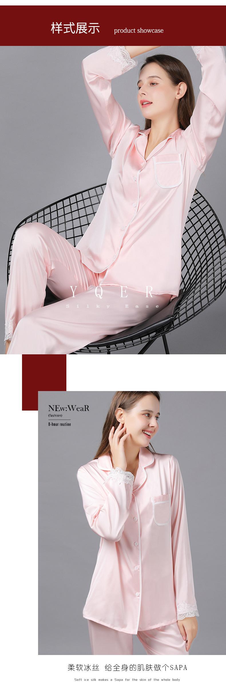 Pijamas de seda para mujer, de manga larga, de primavera y otoño, finos y sexys, de encaje, para el hogar, venta al por mayor