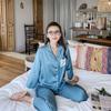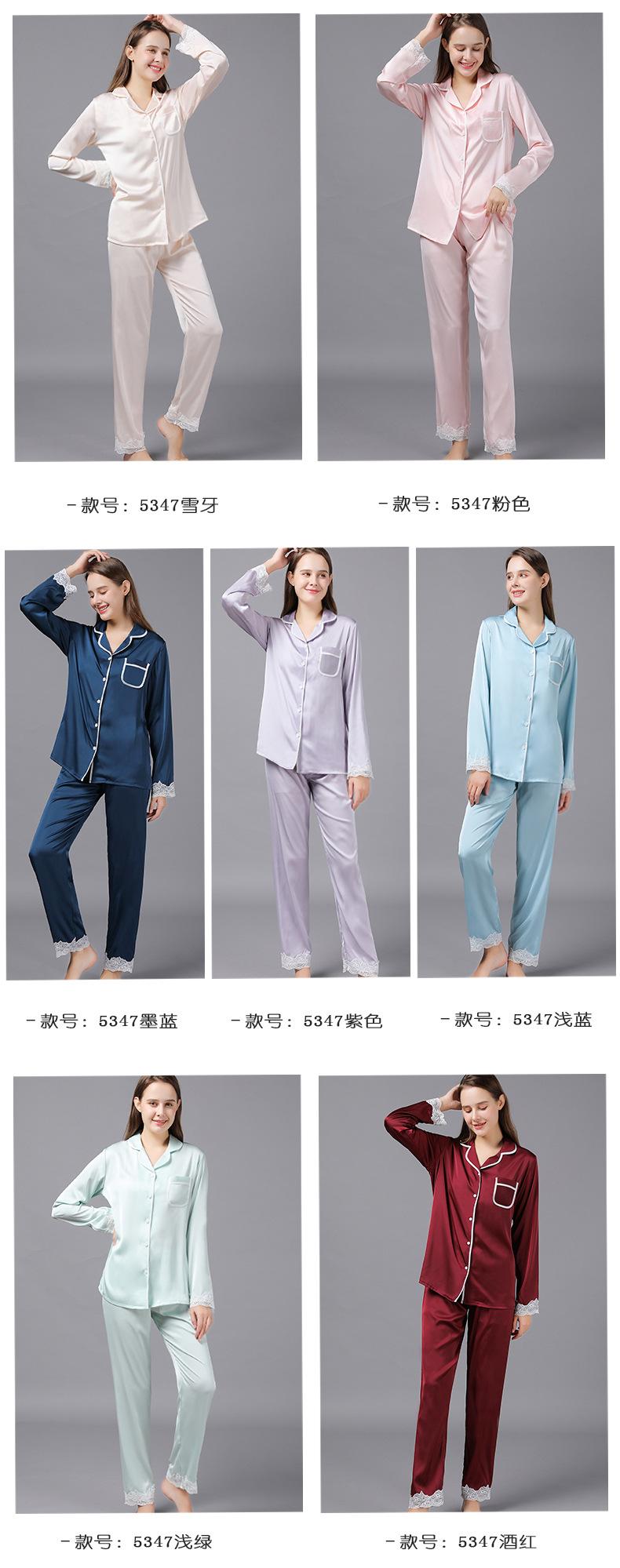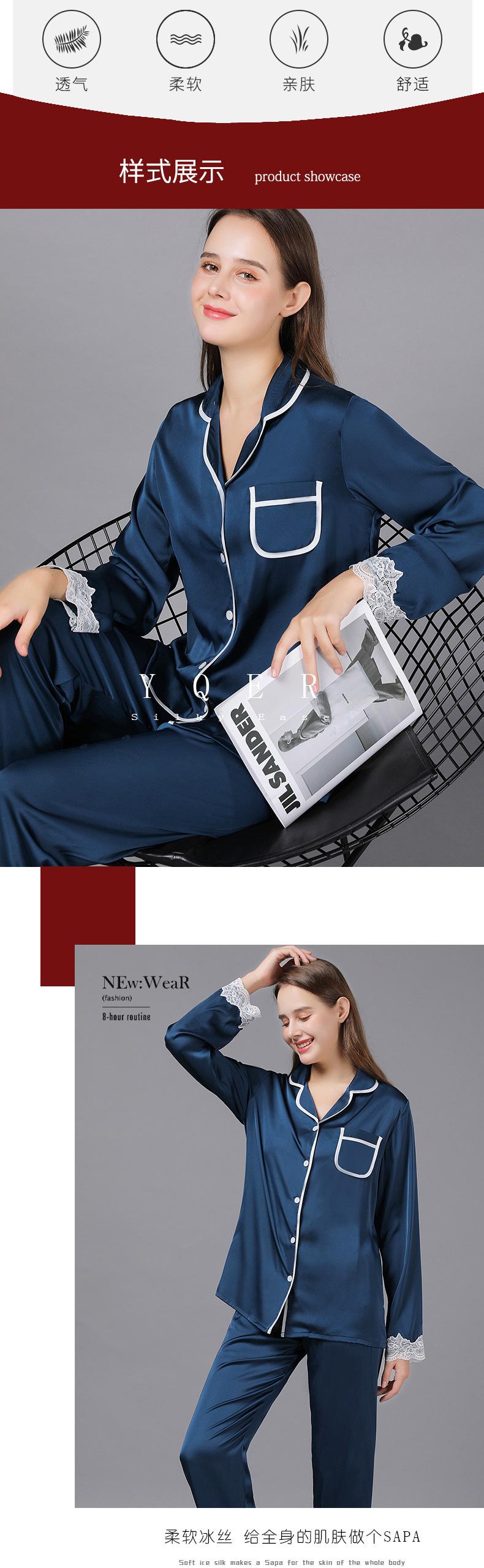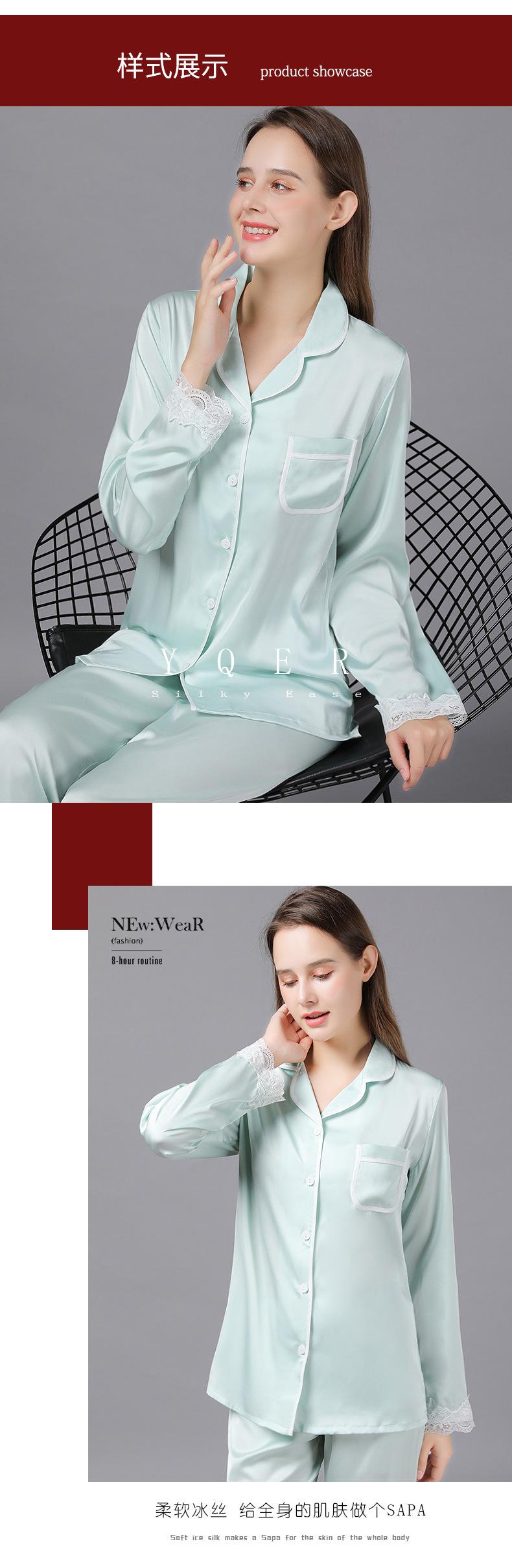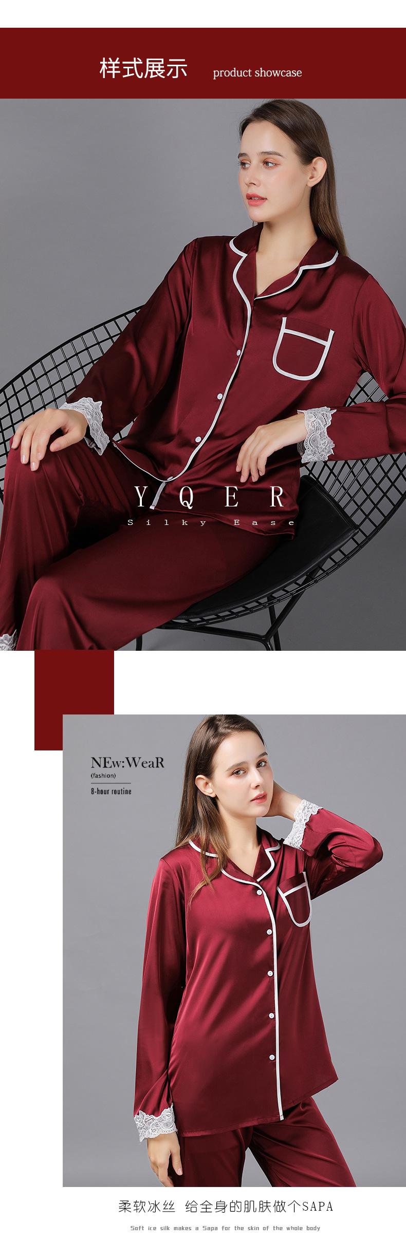 Pijamas de seda para mujer, de manga larga, de primavera y otoño, finos y sexys, de encaje, para el hogar, venta al por mayor