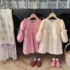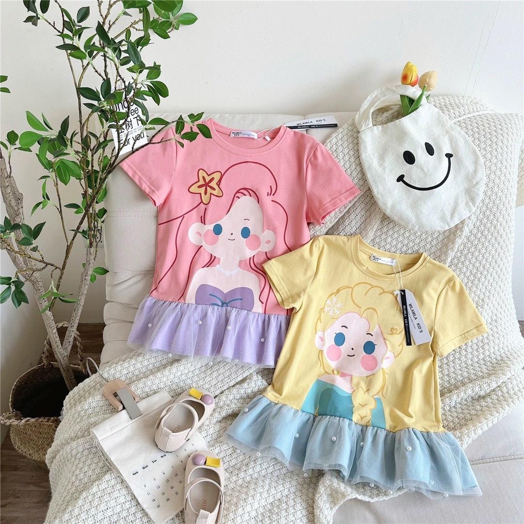 Vestido de malla con costuras para niñas, verano 2024, nuevo, estilo coreano, bonito vestido con volantes de princesa de dibujos animados para mujer