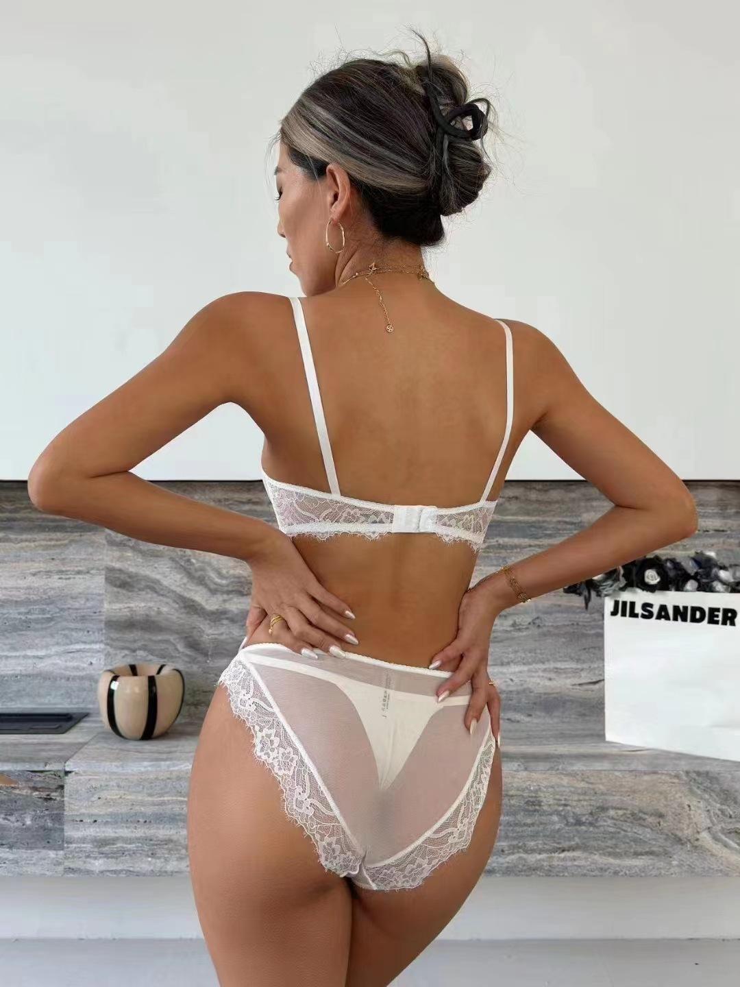 Lencería sexy transfronteriza de verano, lencería bordada de malla con perspectiva ultrafina, conjunto de sujetador antiflacidez pequeño con pecho grande |