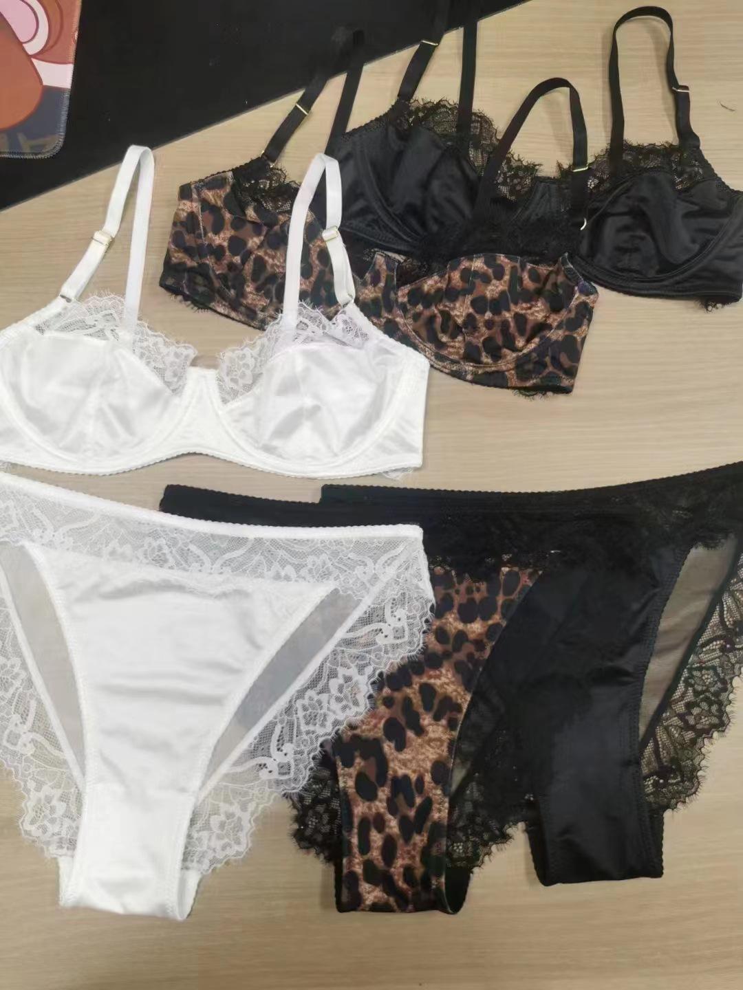 Lencería sexy europea y americana para mujer, lencería sexy de encaje bordado con estampado de leopardo ultrafino para pechos grandes para mostrar un pequeño conjunto de sujetador antiflacidez |