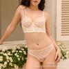 Ropa interior de encaje francés, perspectiva ultrafina, flocado, malla estampada, ropa interior sexy, sujetador de lazo sexy para niña |