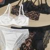 Ropa interior sexy transfronteriza europea y americana de verano, ropa interior francesa de encaje ultrafino, conjunto de sujetador antiflacidez pequeño de pecho grande para mujer |