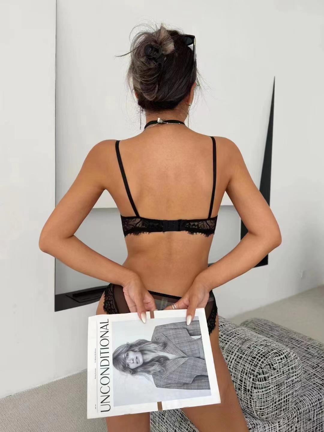 Lencería sexy transfronteriza nueva, conjunto de lencería de encaje ultrafino francés, pecho grande, sujetador pequeño antiflacidez |