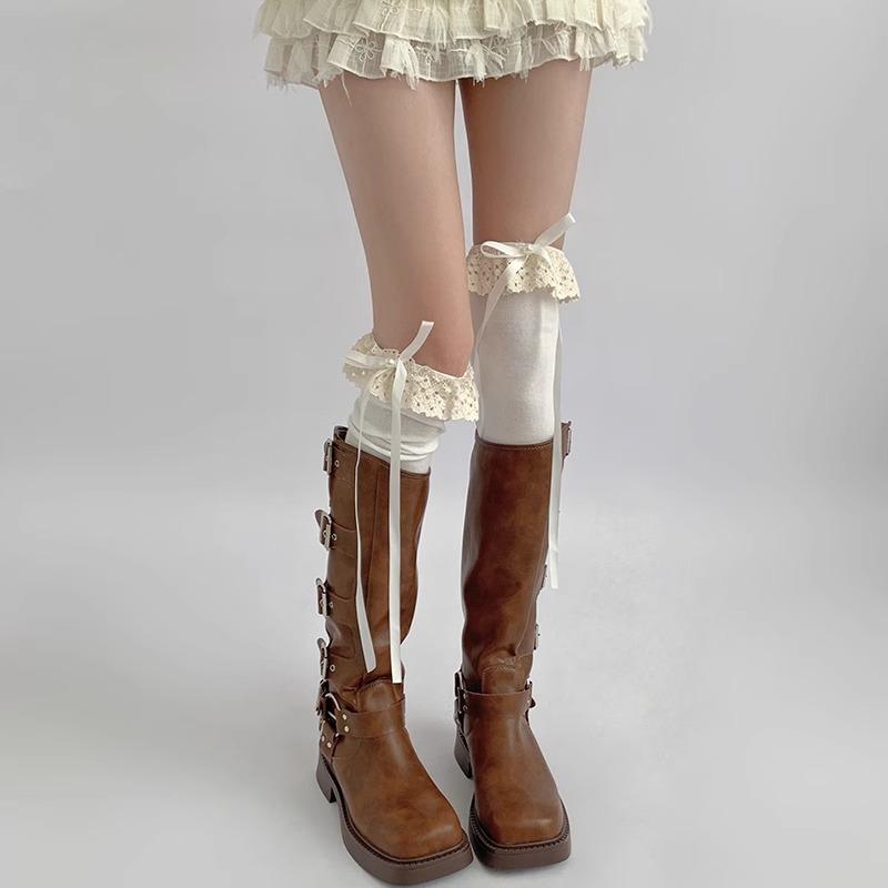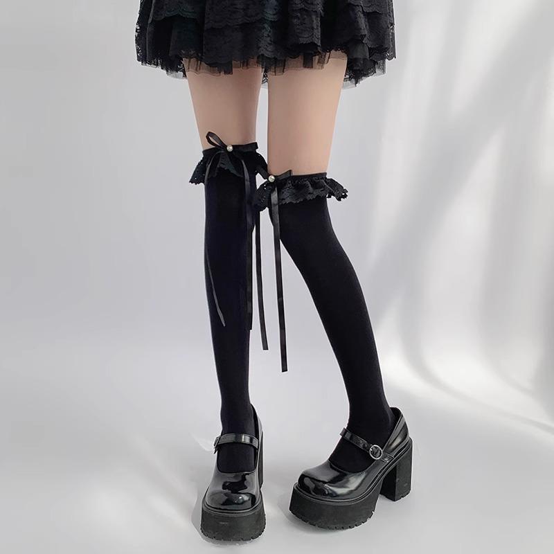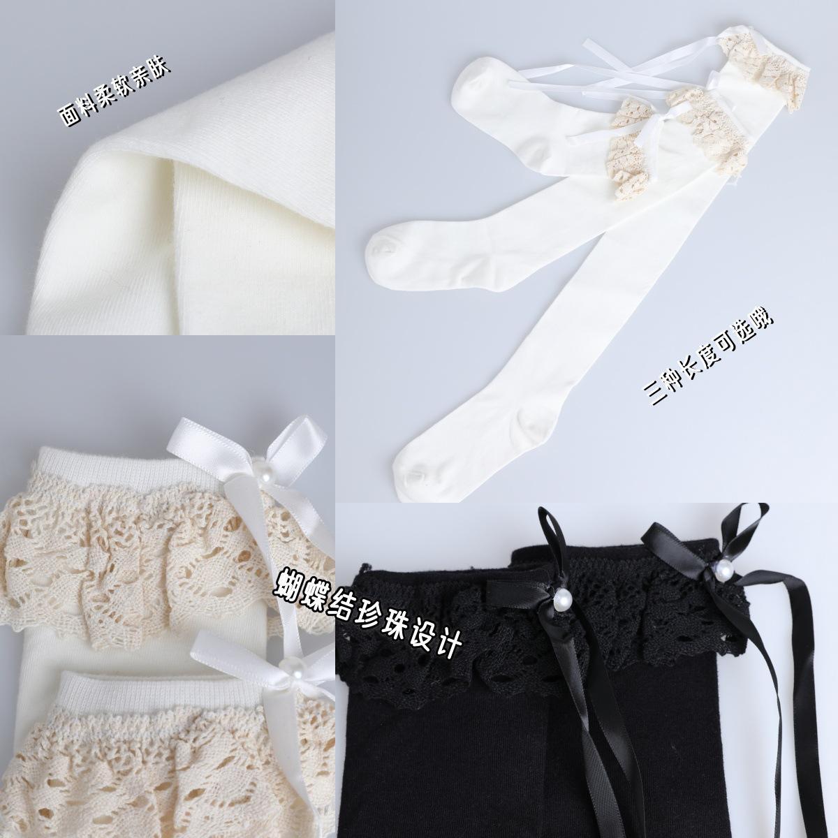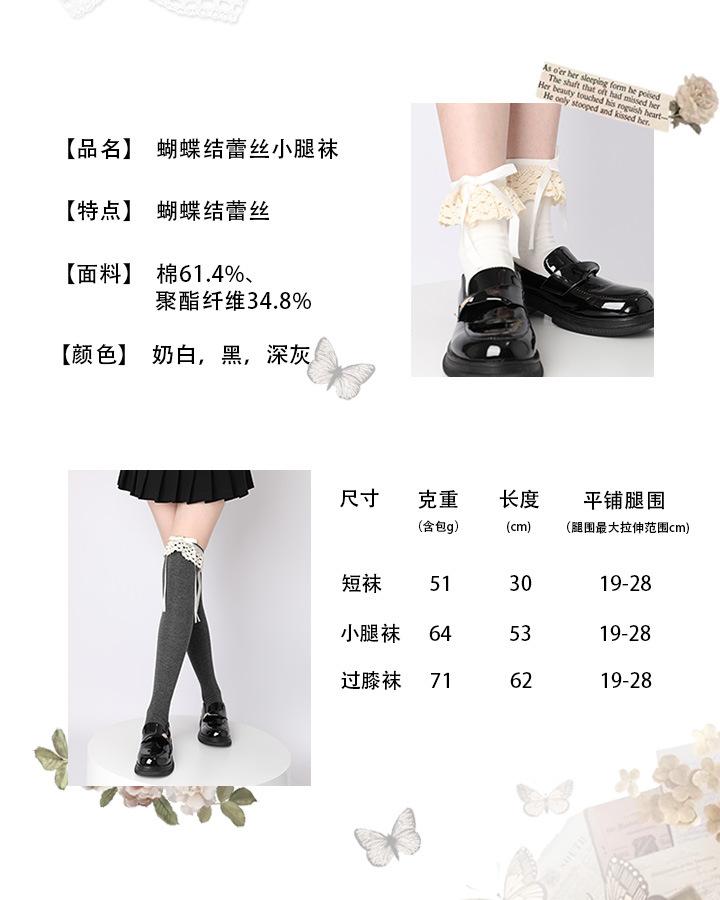 Milk white-lace [62cm], Black-lace [62cm], Dark gray-lace [62cm], Milk white-lace [45cm] calf socks, Milk whit...