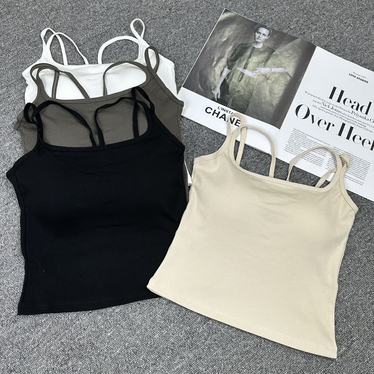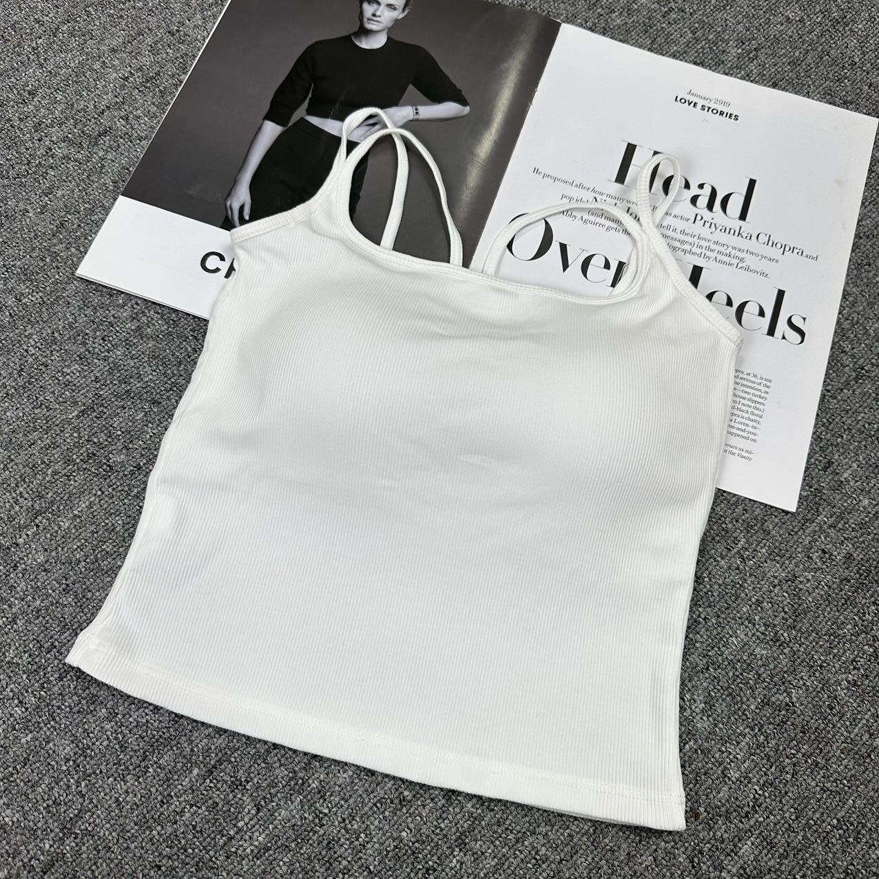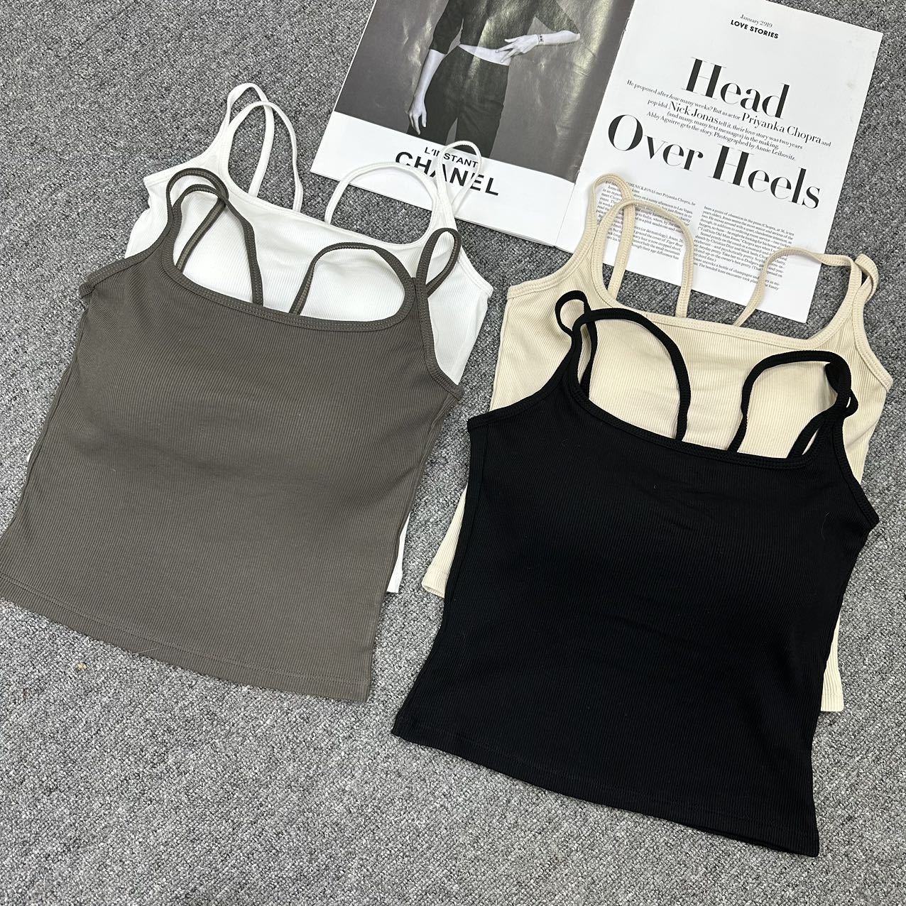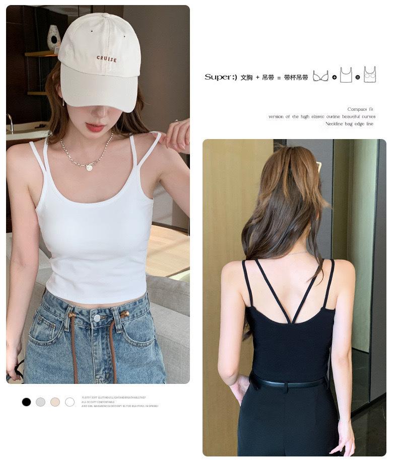 Nuevo Hilo Belleza Tira Trasera con Almohadilla de Pecho Copa Fija Interna Algodón Combinable Doble Tirante Chaleco para Mujer