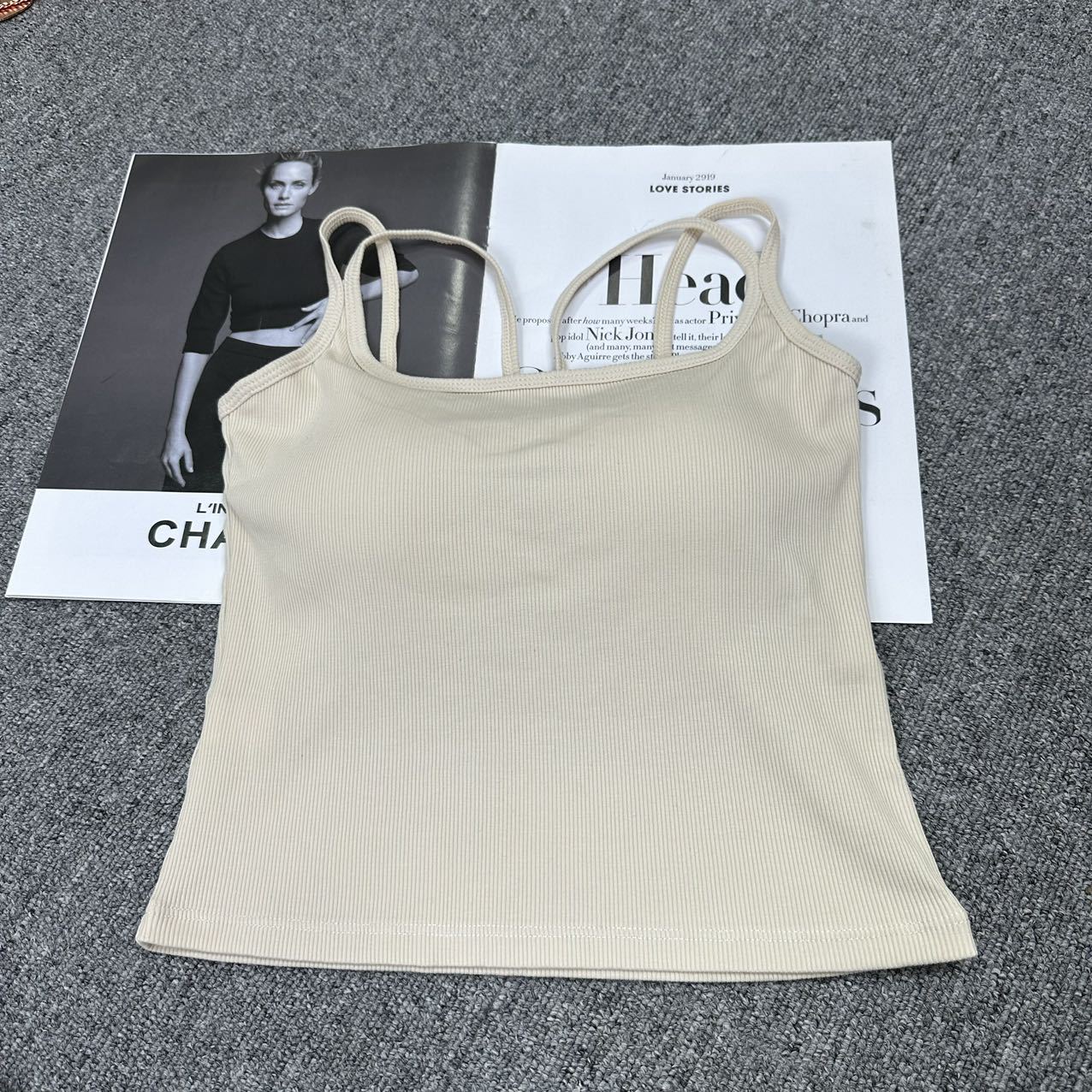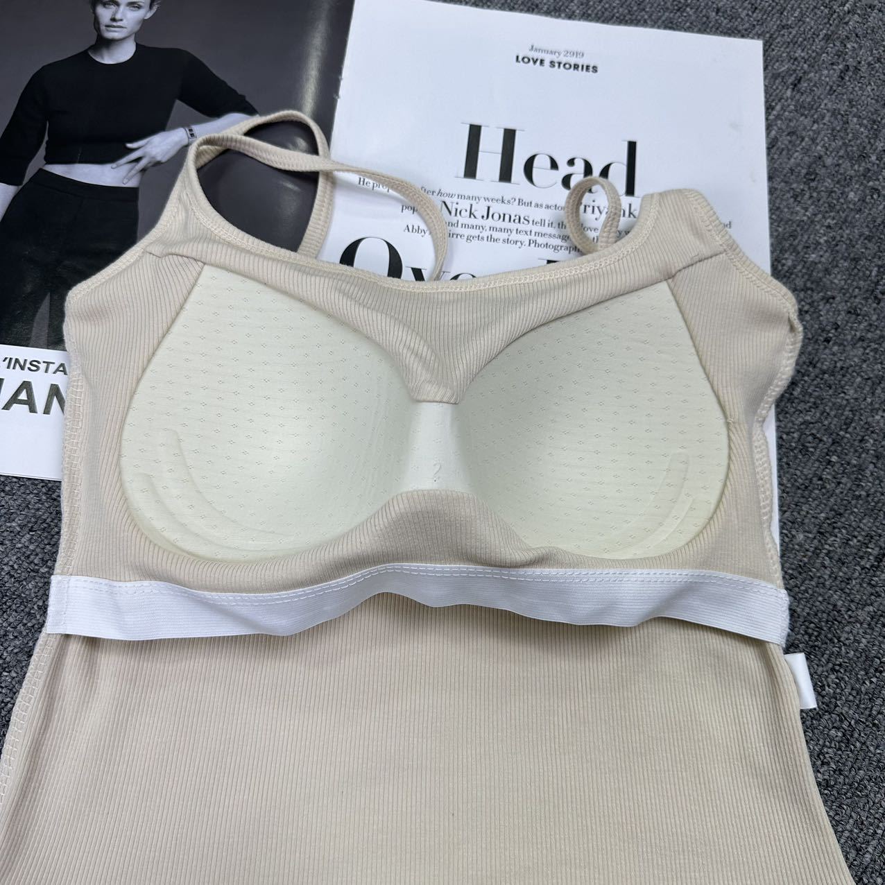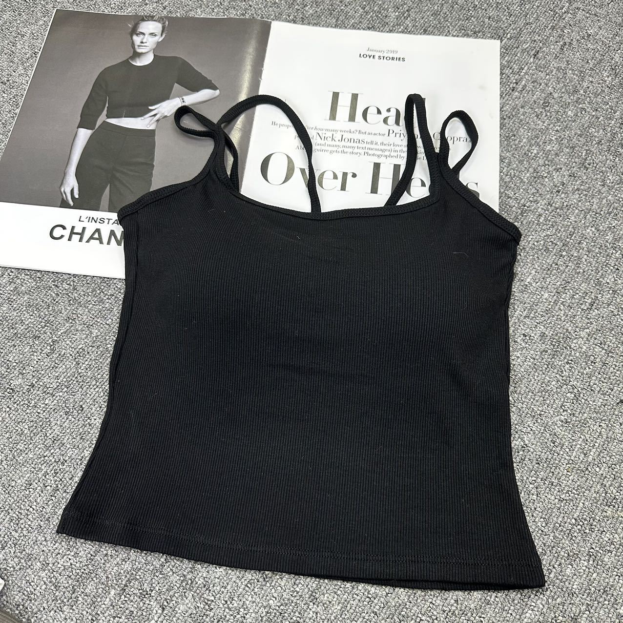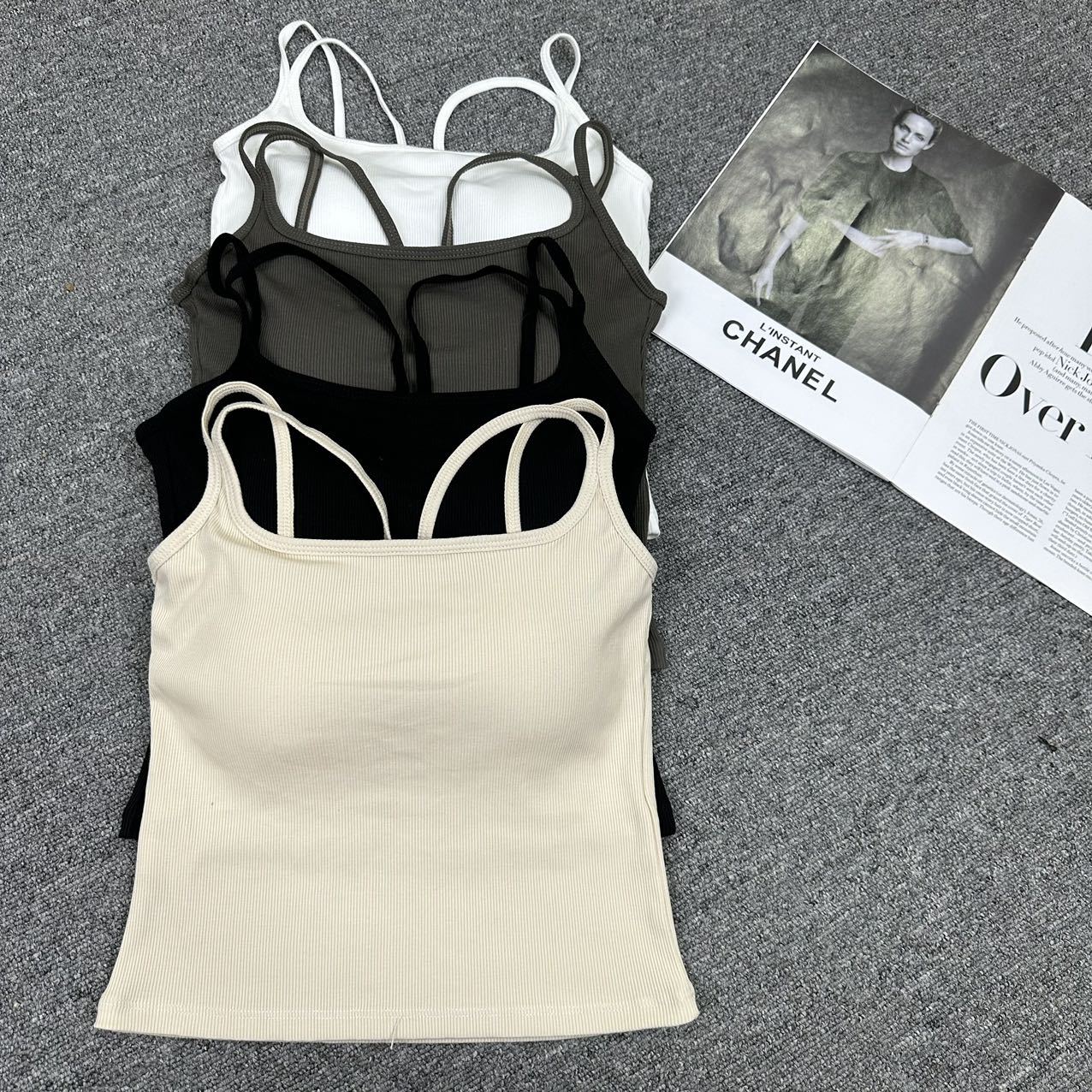 Nuevo Hilo Belleza Tira Trasera con Almohadilla de Pecho Copa Fija Interna Algodón Combinable Doble Tirante Chaleco para Mujer