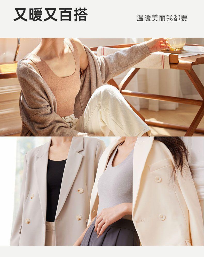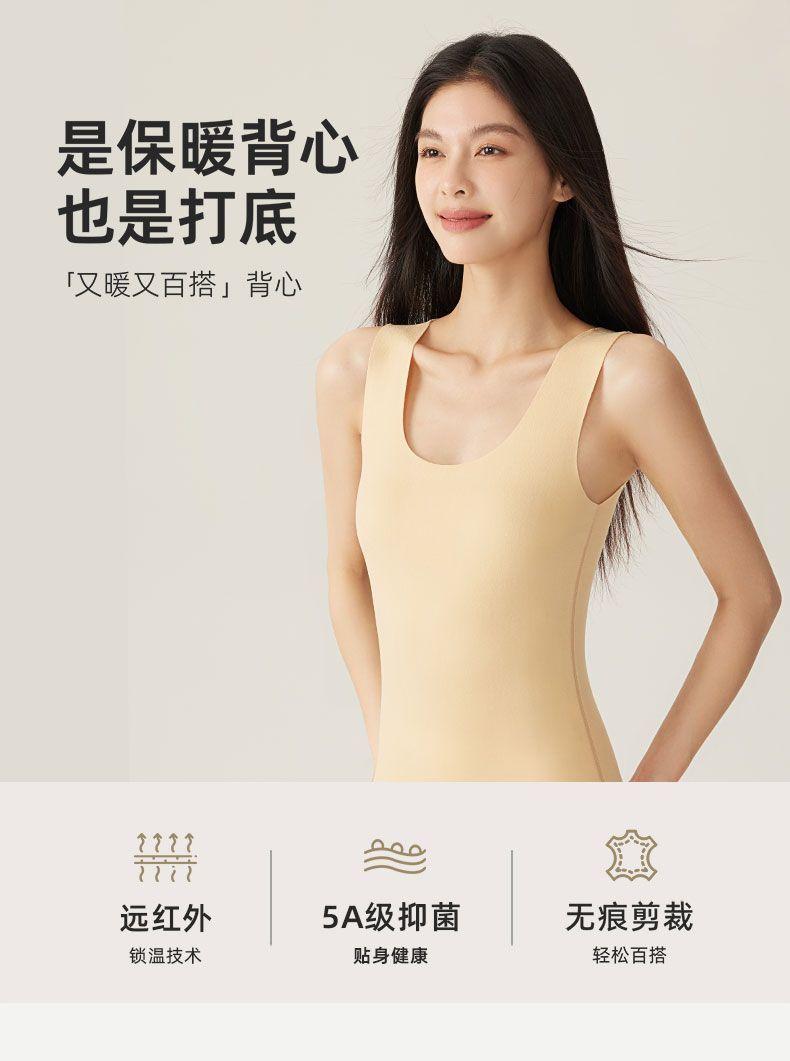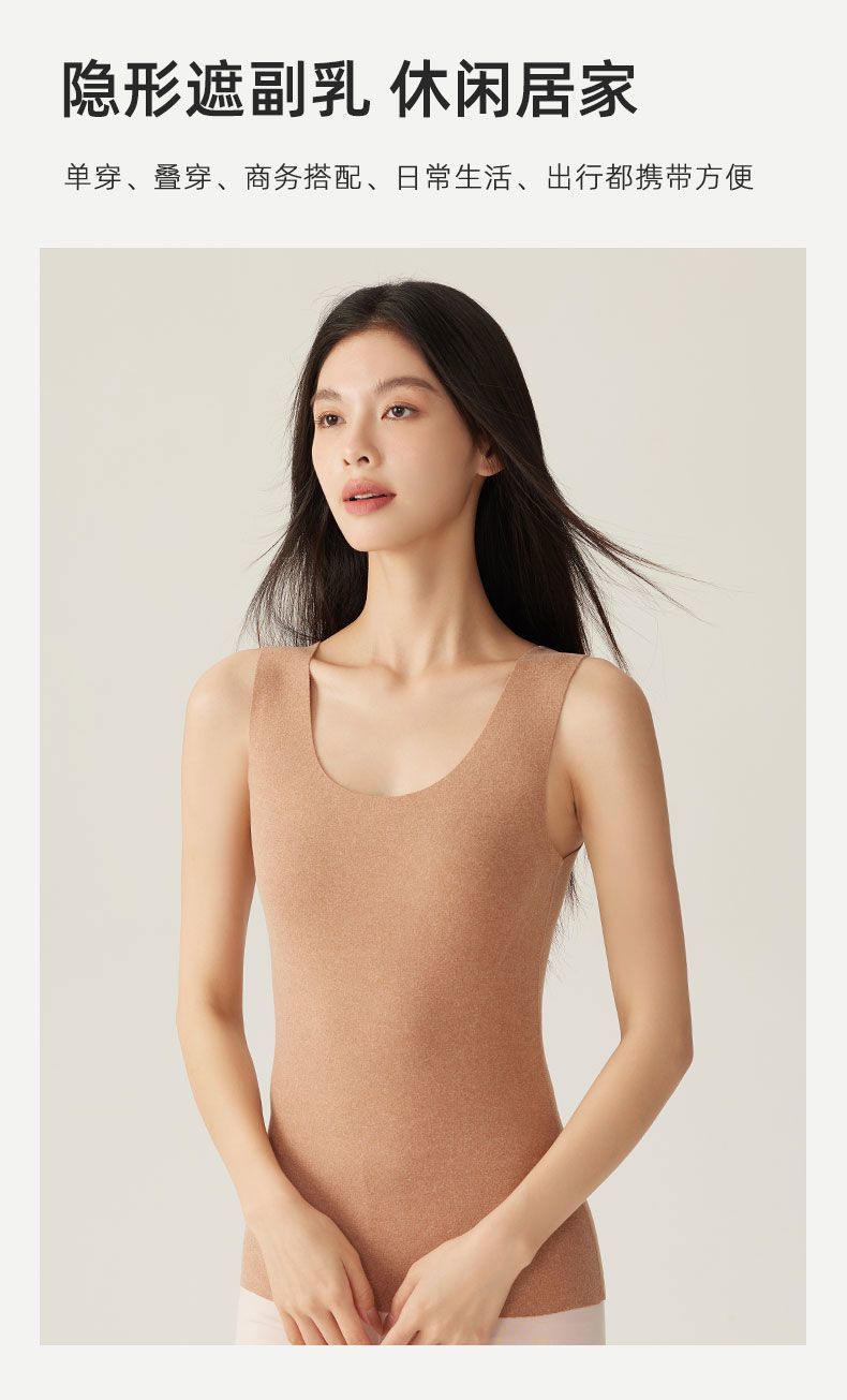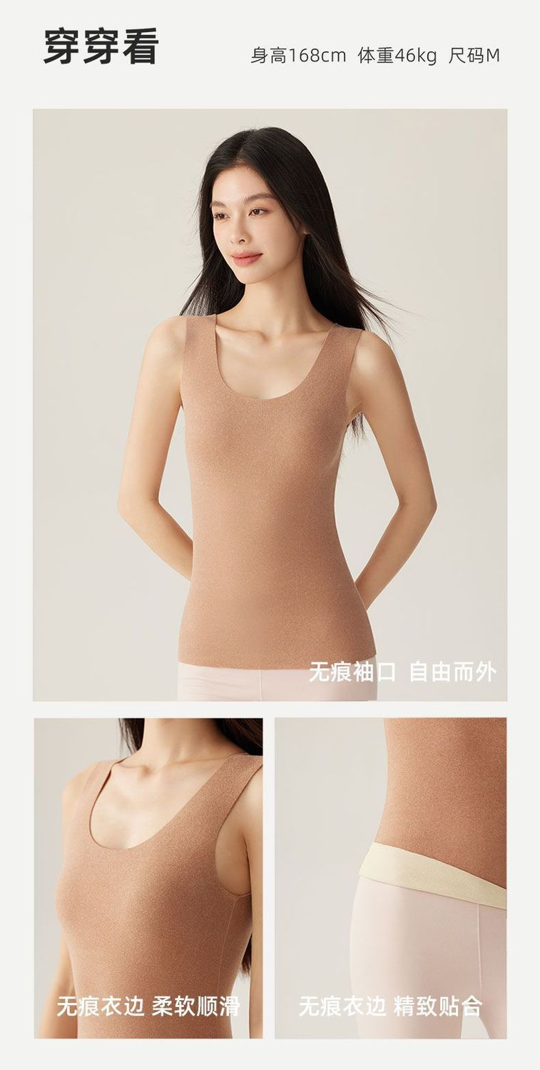 Chaleco térmico sin costuras de terciopelo para mujer, ropa interior de otoño e invierno con cuello redondo cepillado de doble cara, forro polar ajustado y parte inferior gruesa