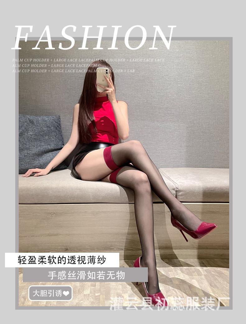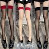Medias de seda negra con borde rojo y costuras sexys para mujer, finas y sexys, de seda negra pura, largas y hasta la rodilla.