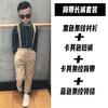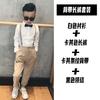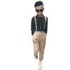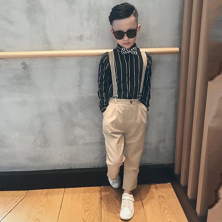 1922 khaki long trousers + black long sleeve shirt + khaki striped strap + striped bow tie