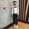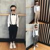 Conjunto de 4 piezas de pantalones con tirantes y pajarita para niños, pantalones largos para niños, camisa de manga larga con pajarita y tirantes