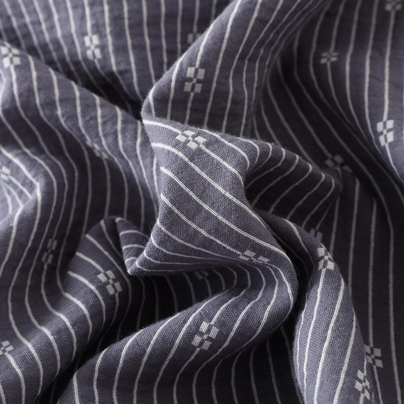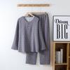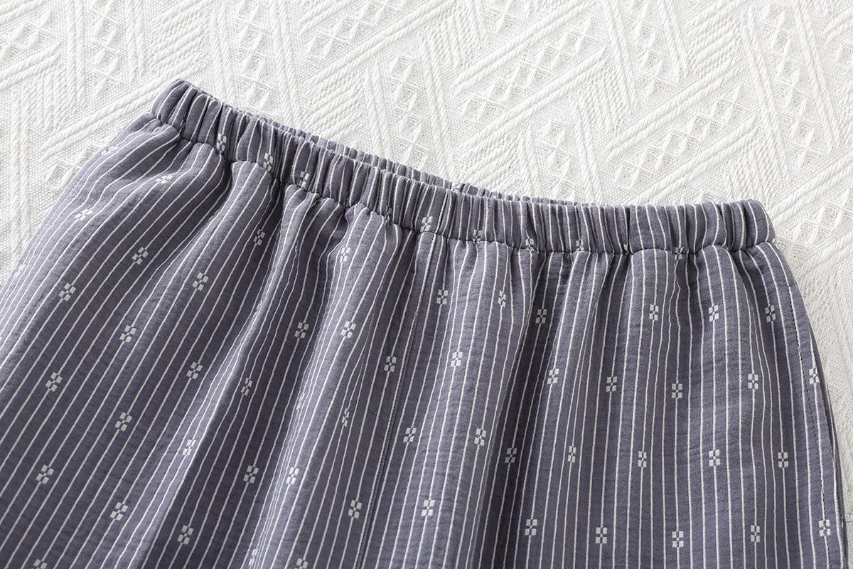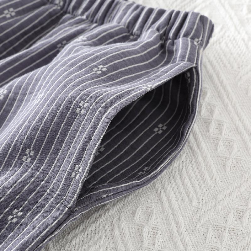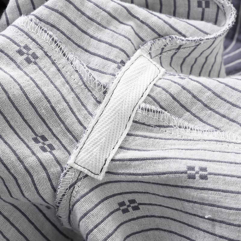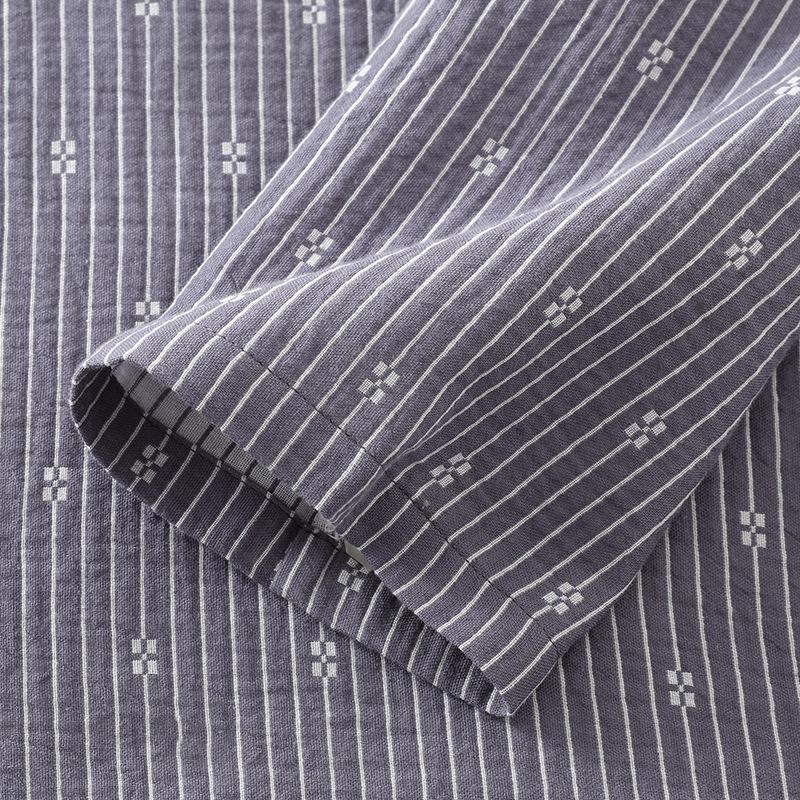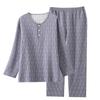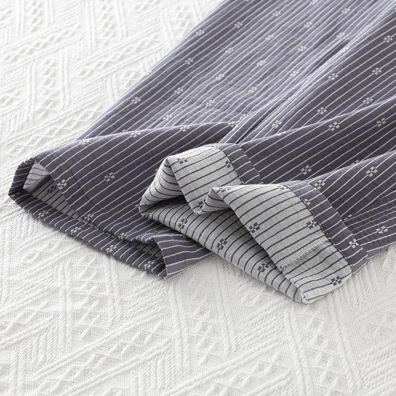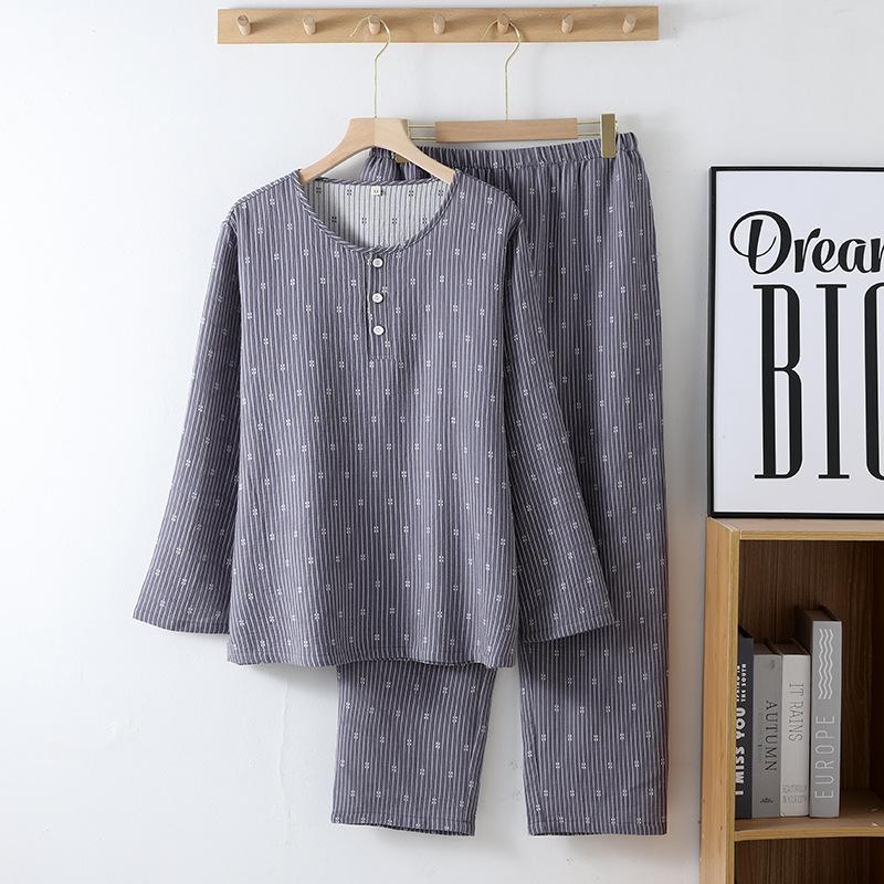 Pijama de Gasa Simple de Algodón Puro Teñido con Hilo Estilo Sin Estampado para Hombre Primavera y Otoño Verano Delgado Manga Larga Ropa de Exterior Traje de Ropa para el Hogar