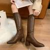 Botas hasta la rodilla para mujer, otoño e invierno 2022, nuevo estilo británico, moda, pequeño, aspecto delgado, tacón alto, botas de caballero para mujer