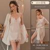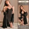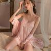 Camisón sexy longitudinal Traje de Seda de Hielo al por mayor Encaje Tira Abertura Lateral Pijama Tentación Camisón de Primavera y Otoño para Mujer 6541