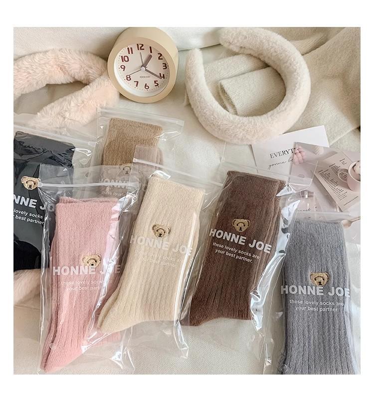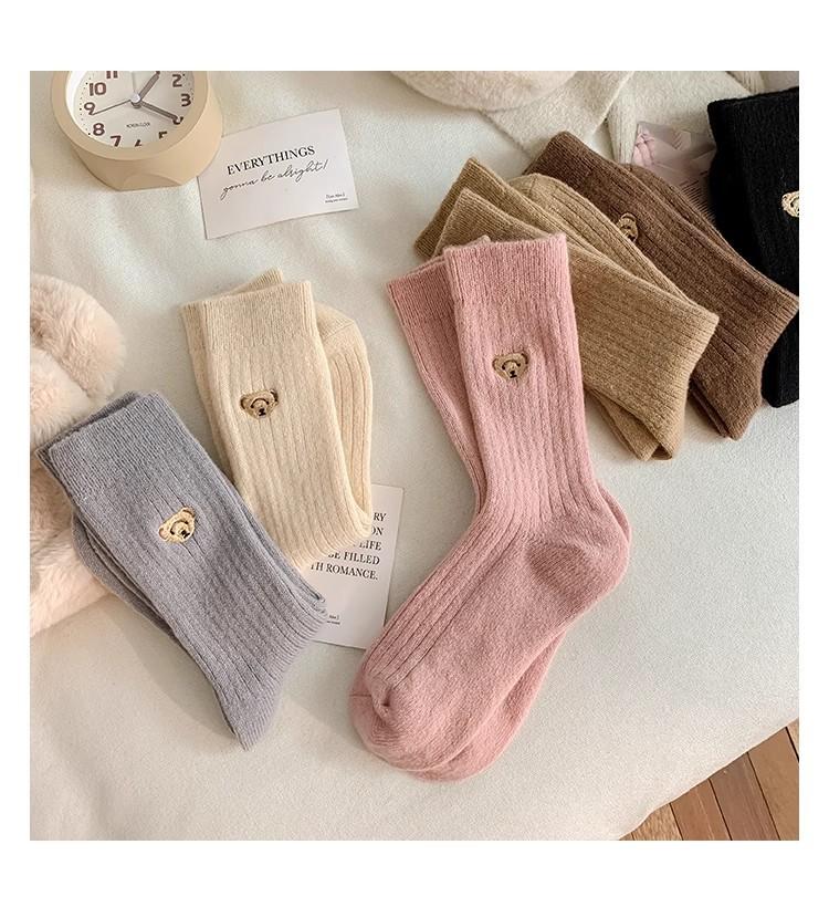 Calcetines de lana para mujer otoño e invierno calcetines de felpa con forro polar gruesos cálidos rosas calcetines de media pantorrilla calcetines de cachemira oso primavera y otoño