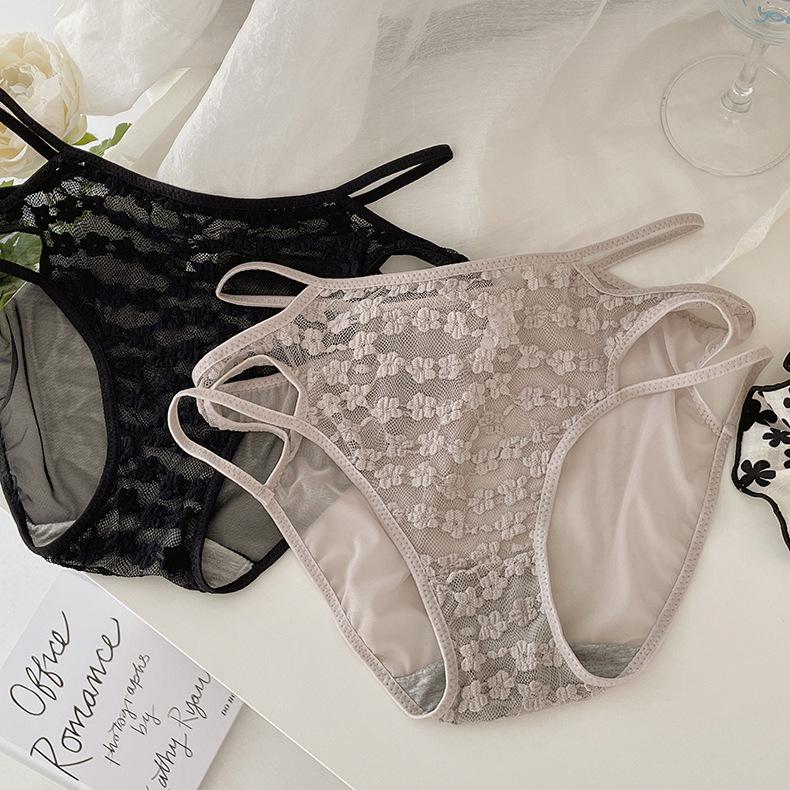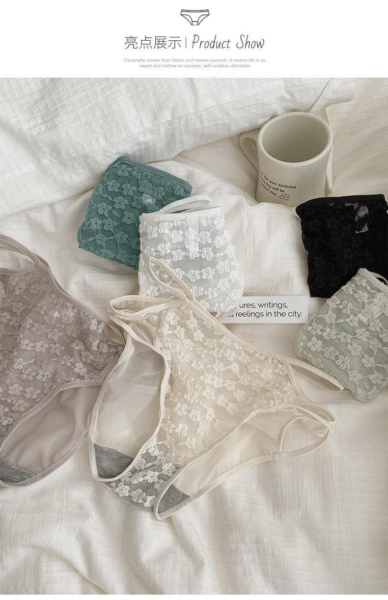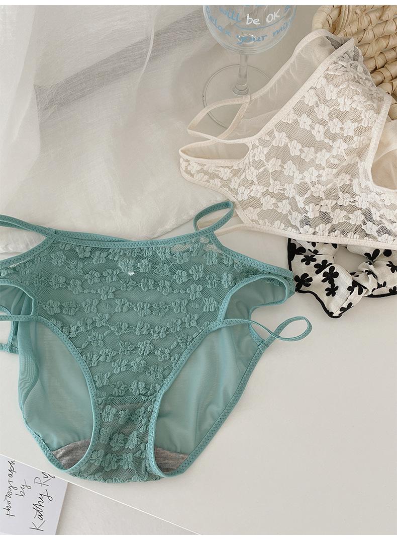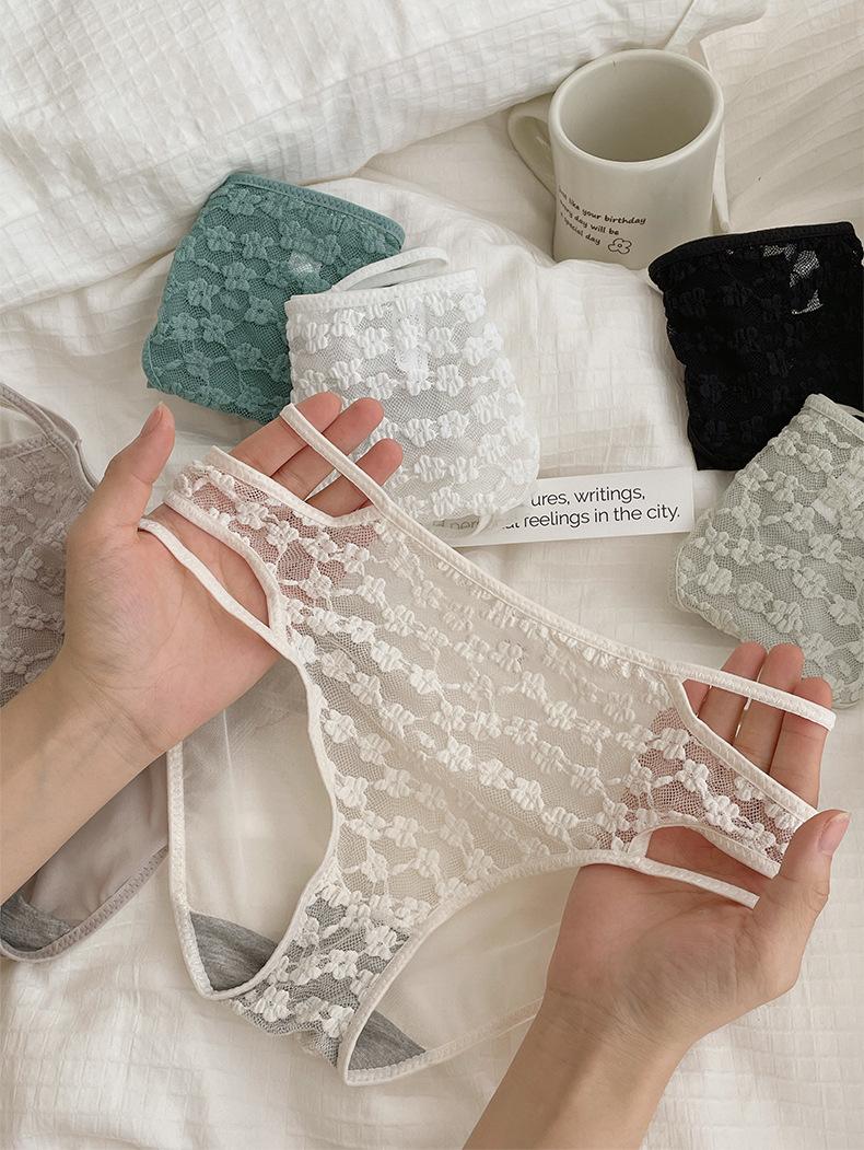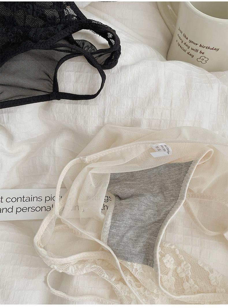 Bragas japonesas de puro deseo sexy de encaje hueco para mujer, malla transparente, tentación, cintura media, cómodas, con entrepierna de algodón