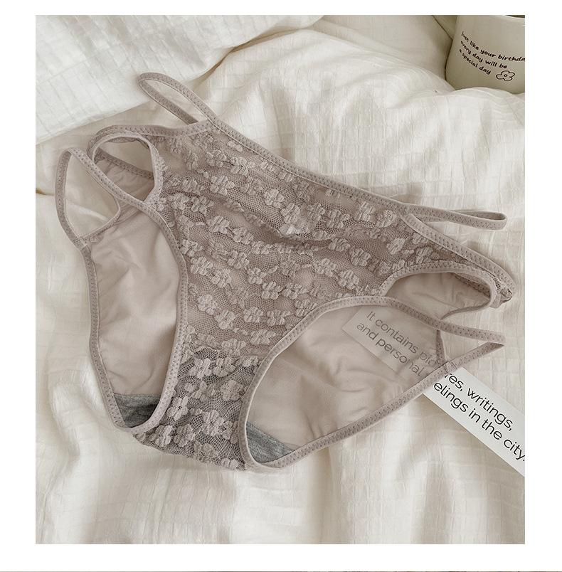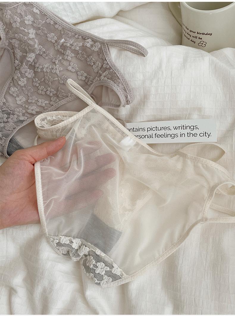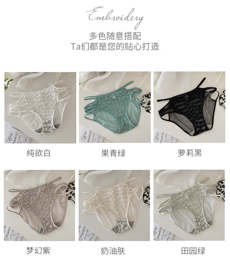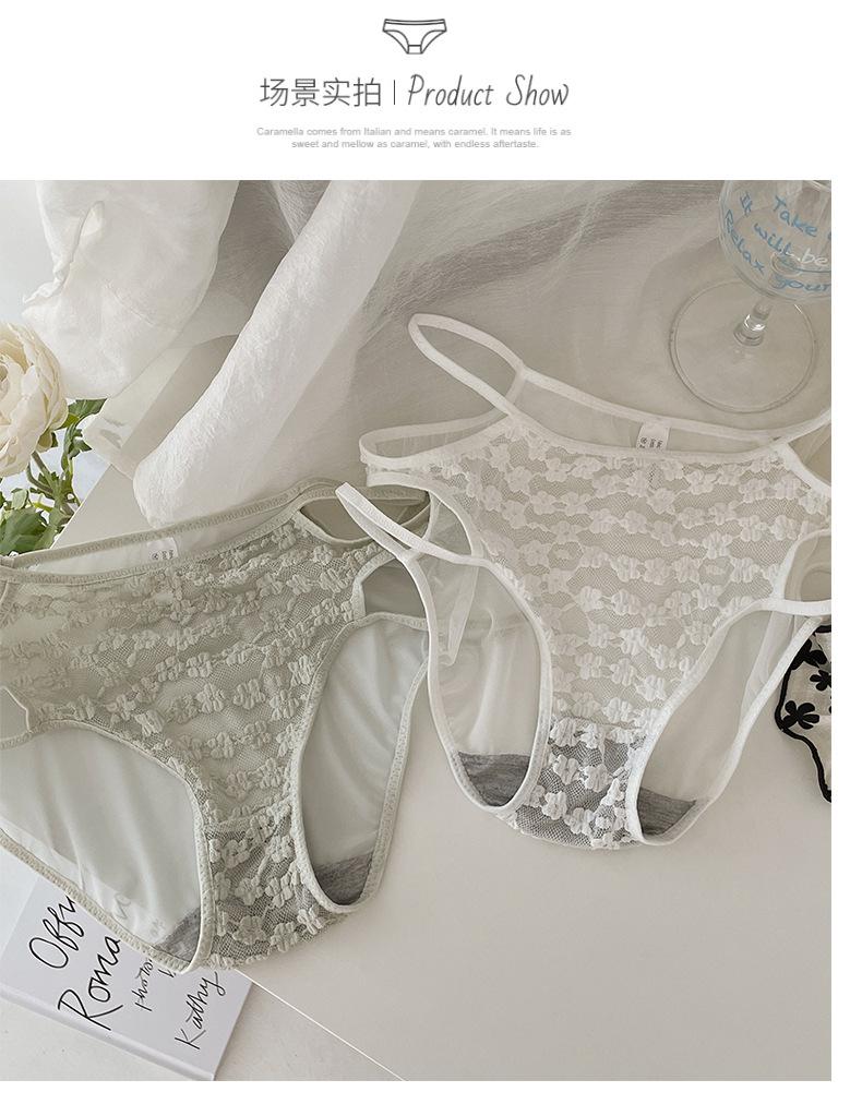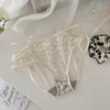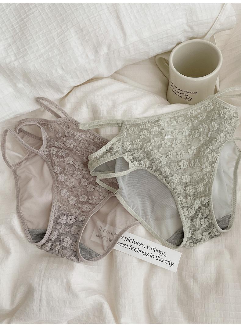 Bragas japonesas de puro deseo sexy de encaje hueco para mujer, malla transparente, tentación, cintura media, cómodas, con entrepierna de algodón