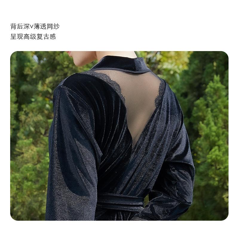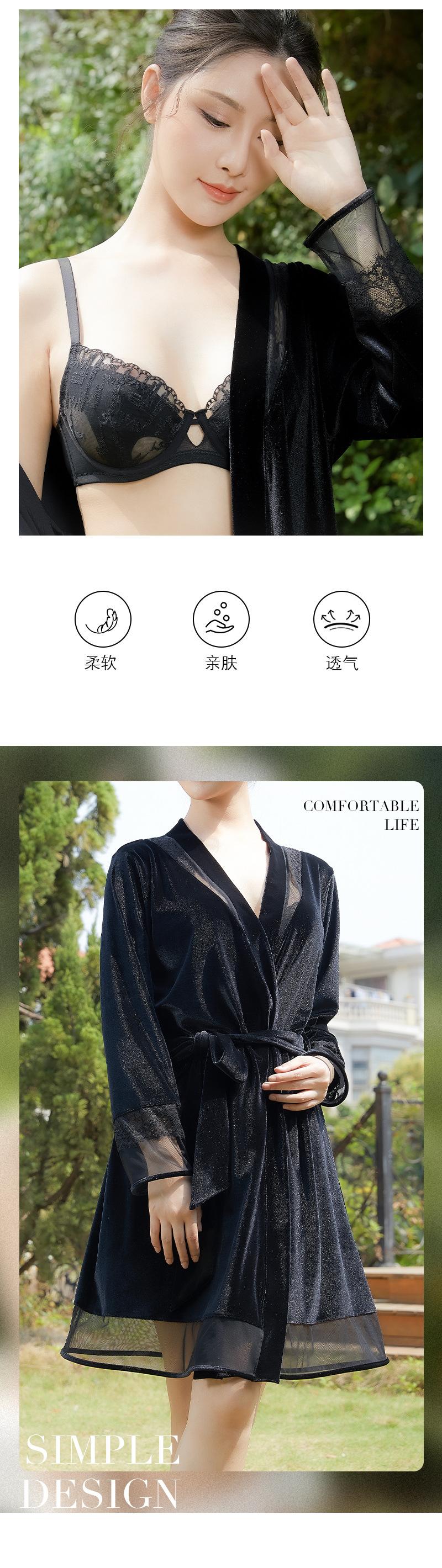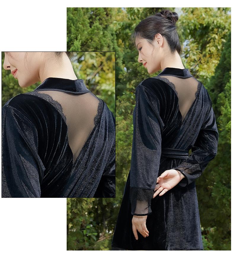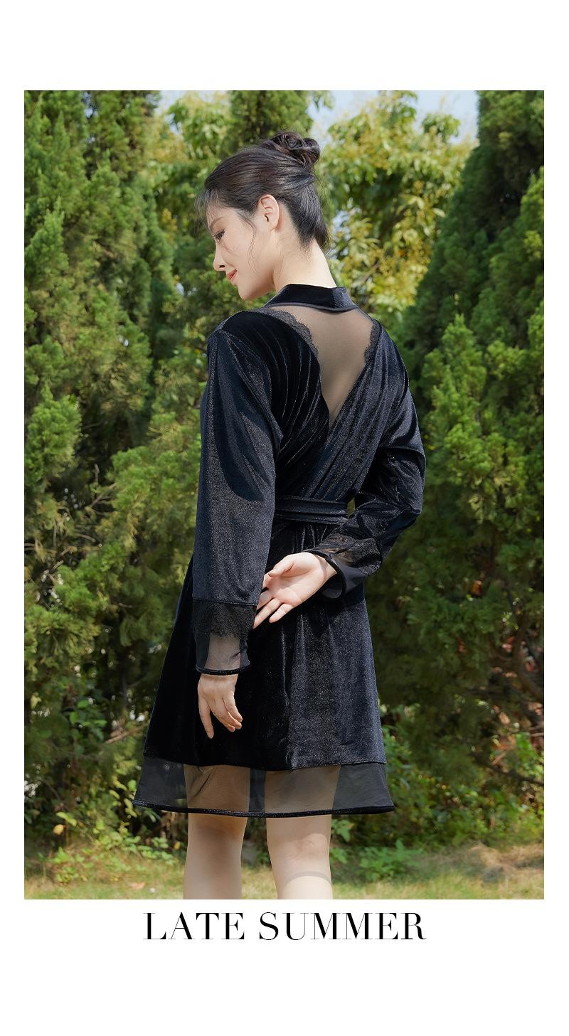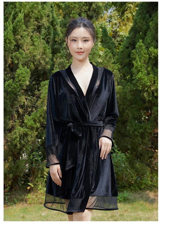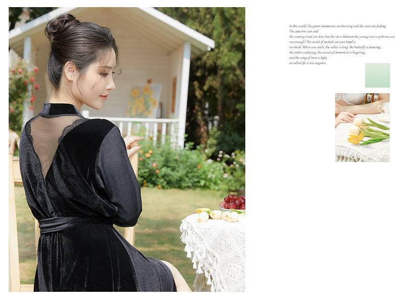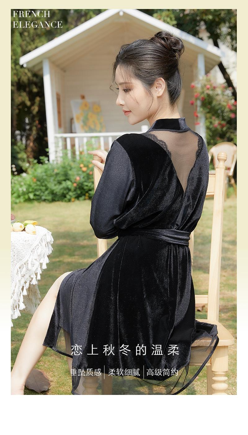 Camisón de terciopelo de lujo ligero estilo francés, pijama que las mujeres pueden usar en el exterior, cárdigan con cordones en la cintura, ropa de casa de alta calidad 72123