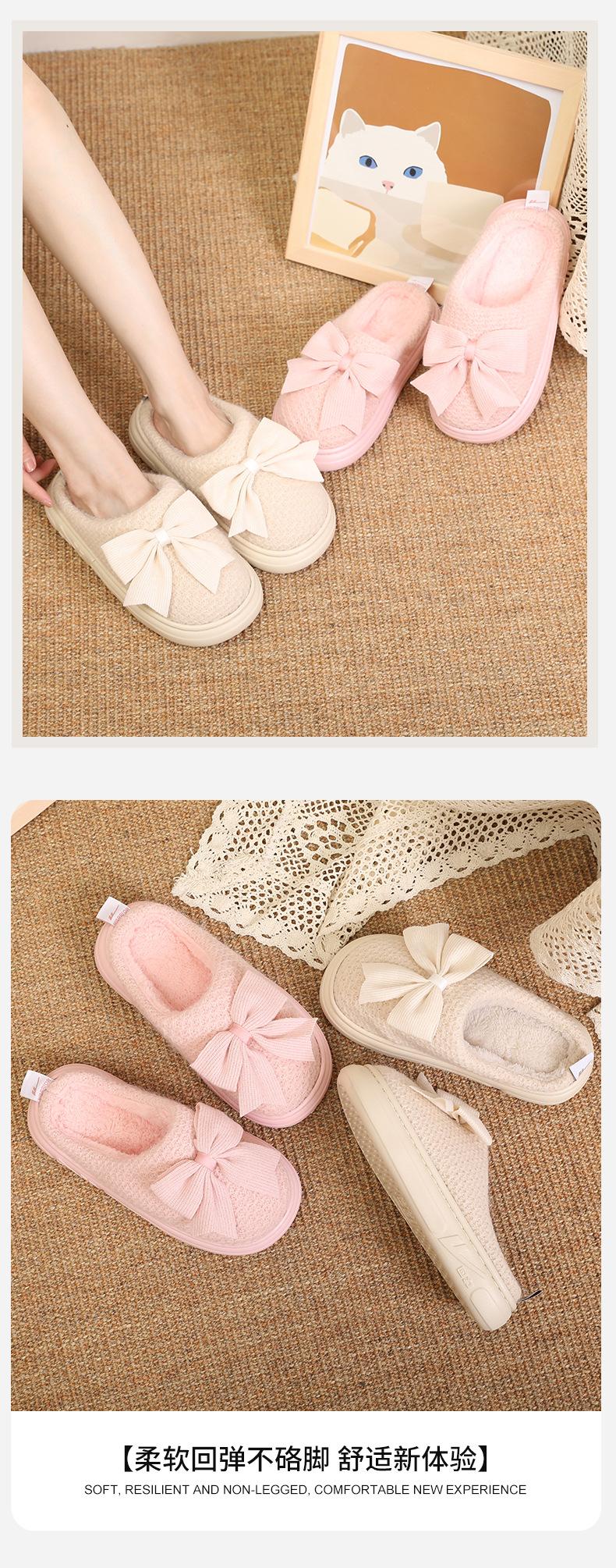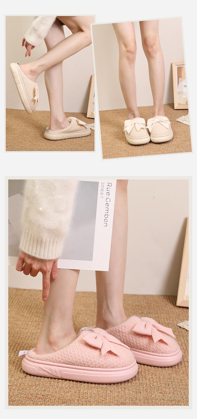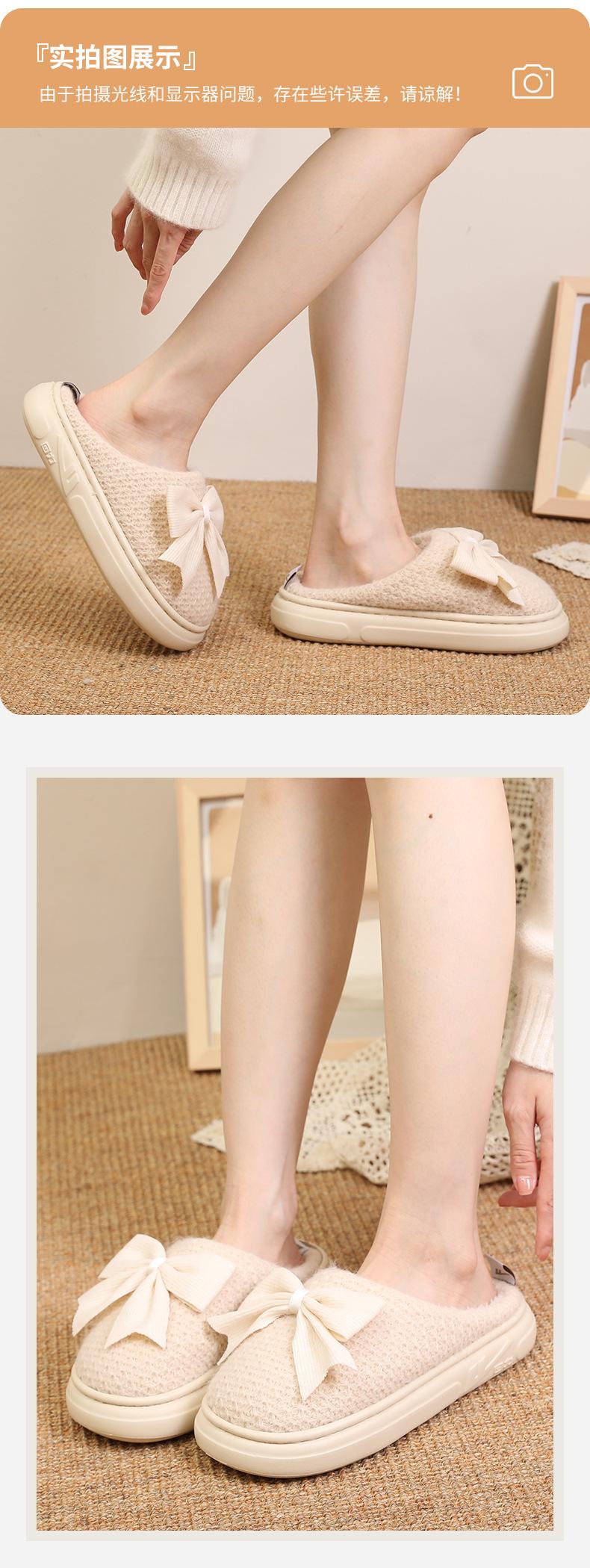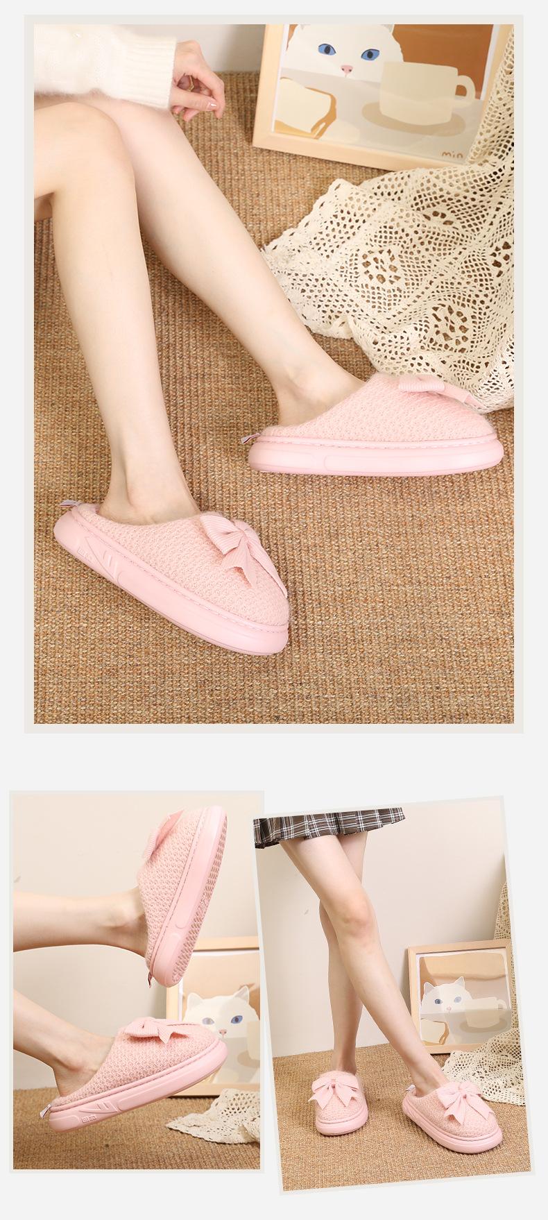 [Oferta Relámpago con 30% de descuento] Pantuflas de Algodón con Lazo Dulce, Suelas Gruesas para Invierno, Cálidas y Felpa, Antideslizantes para Interior