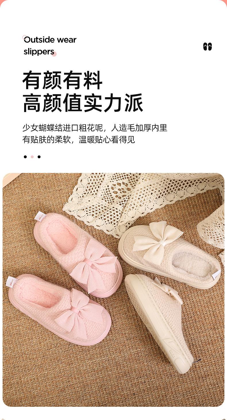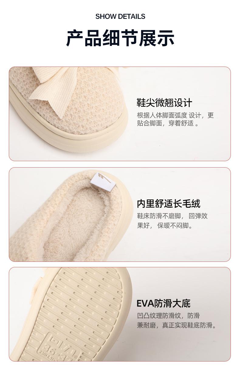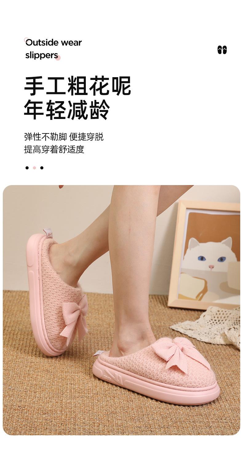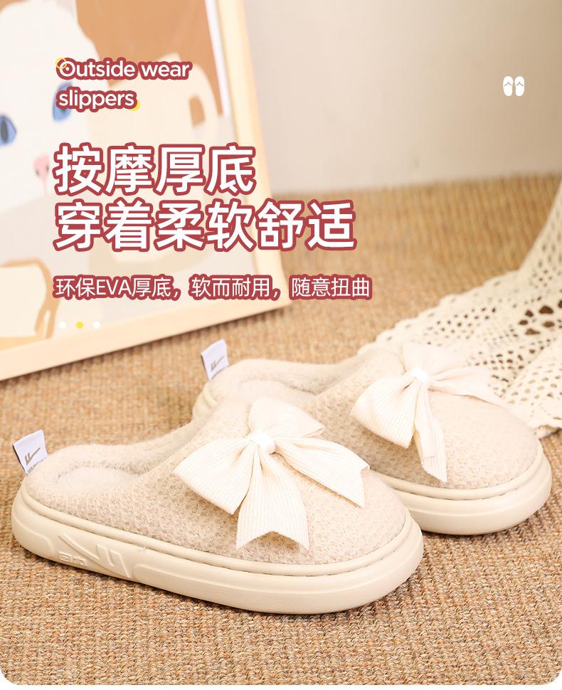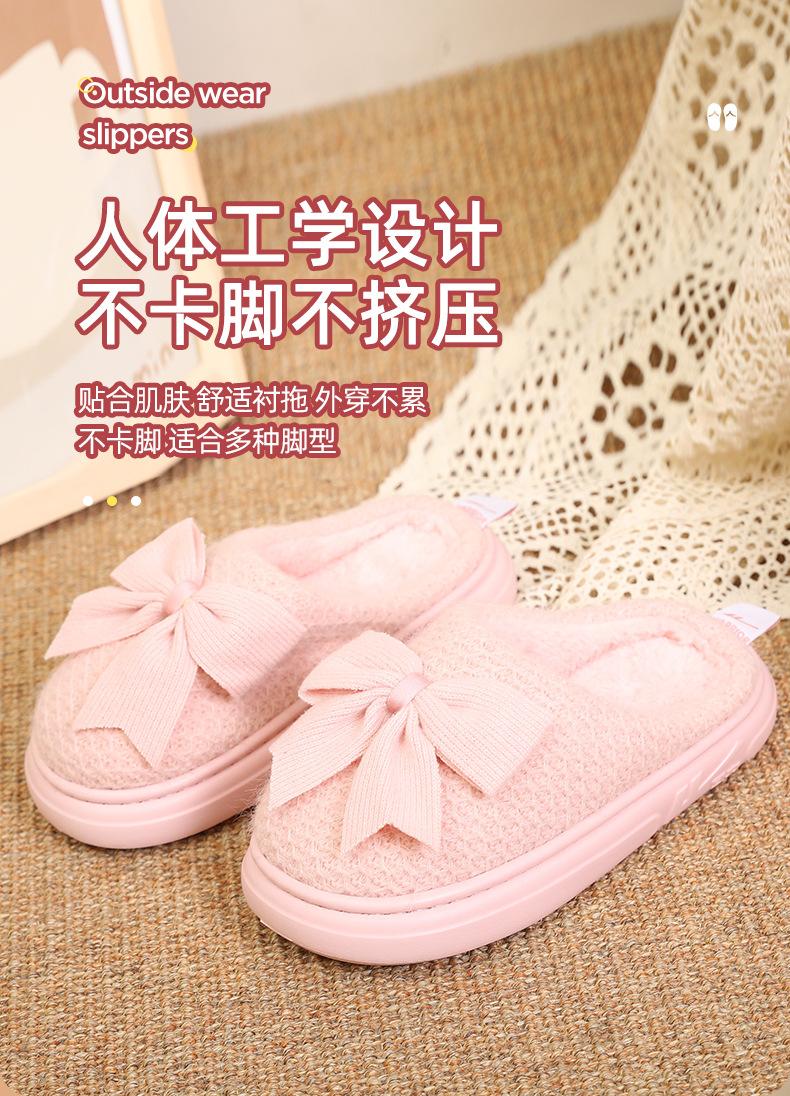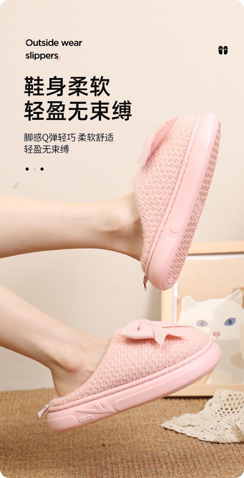 [Oferta Relámpago con 30% de descuento] Pantuflas de Algodón con Lazo Dulce, Suelas Gruesas para Invierno, Cálidas y Felpa, Antideslizantes para Interior