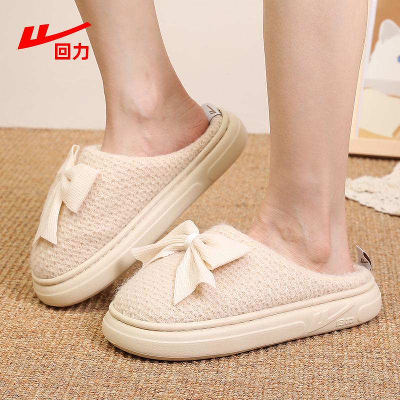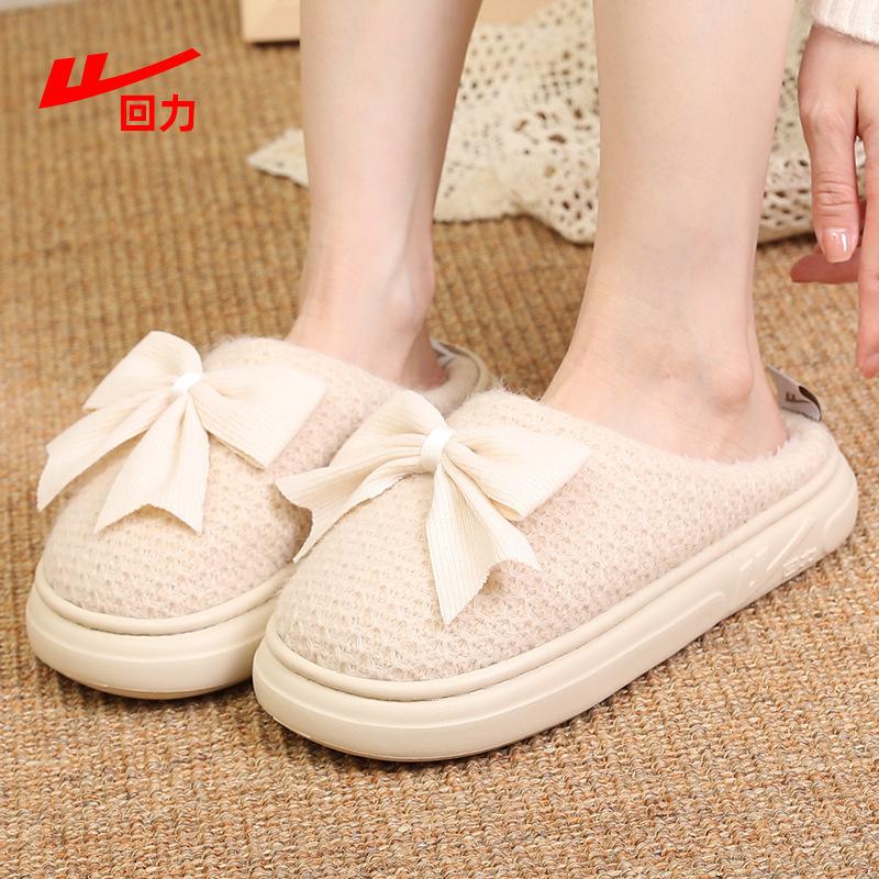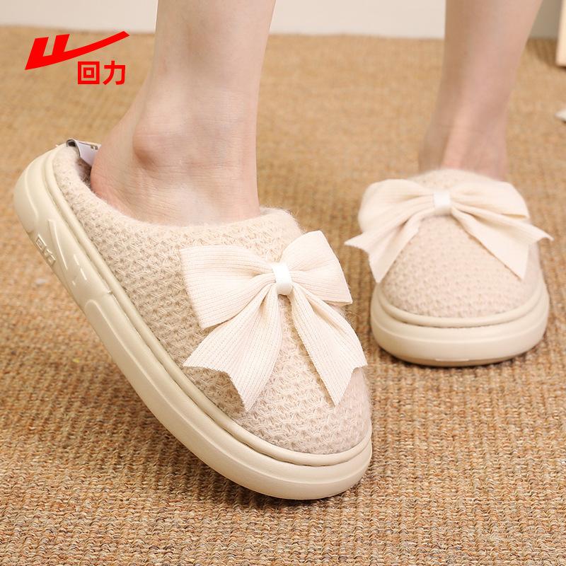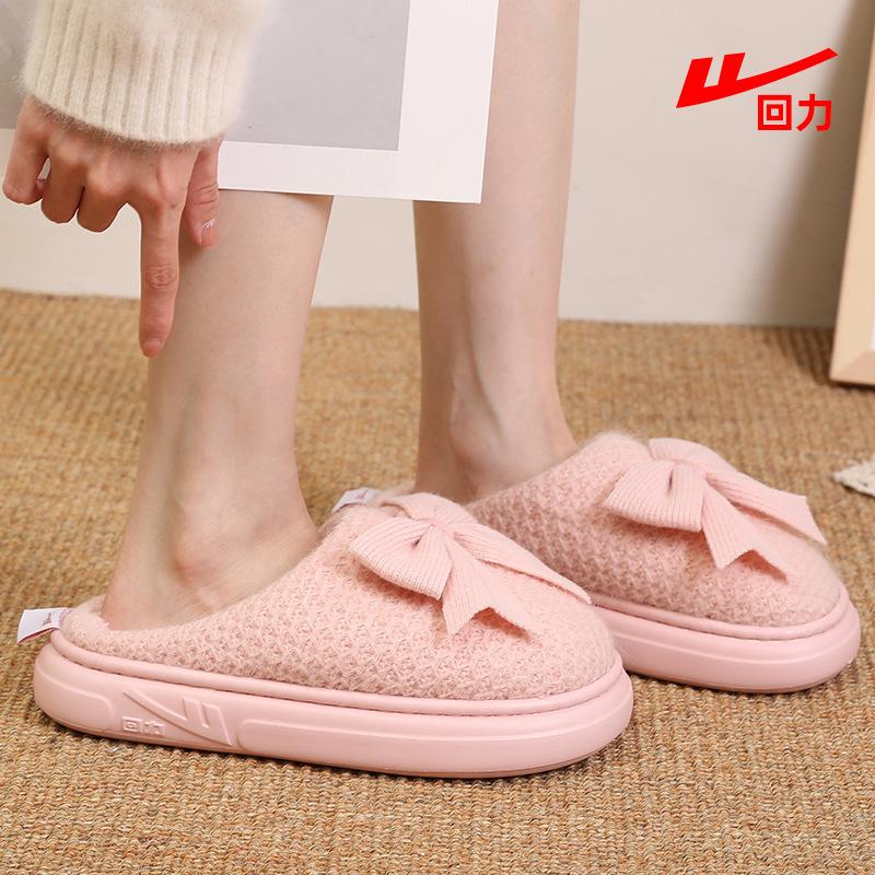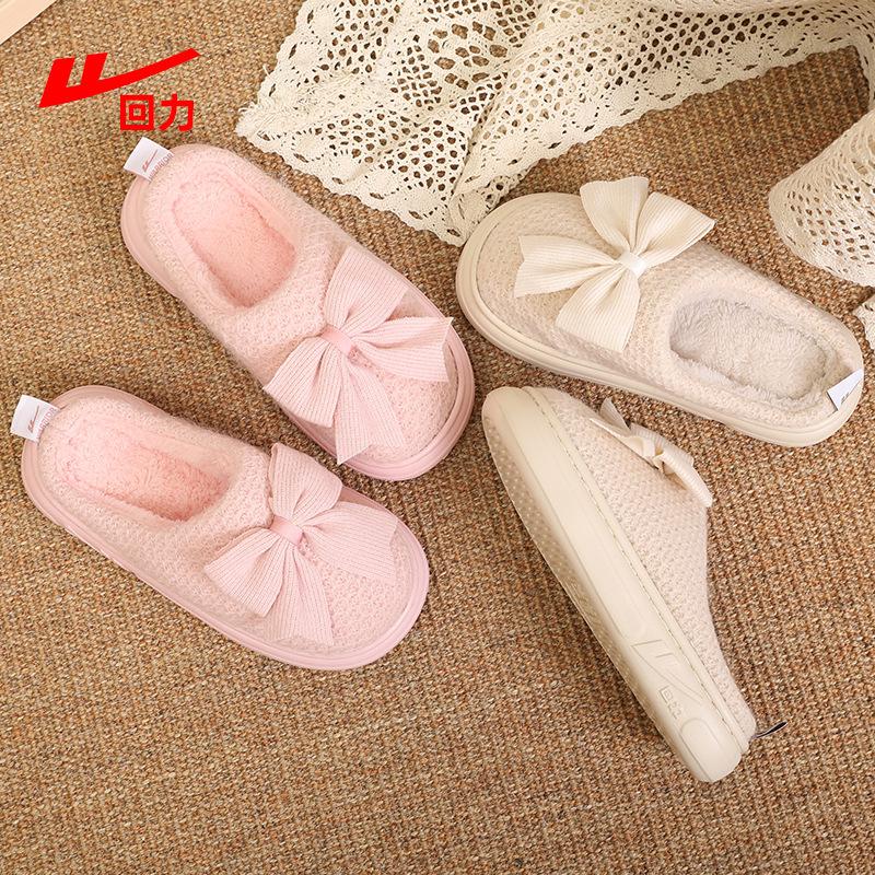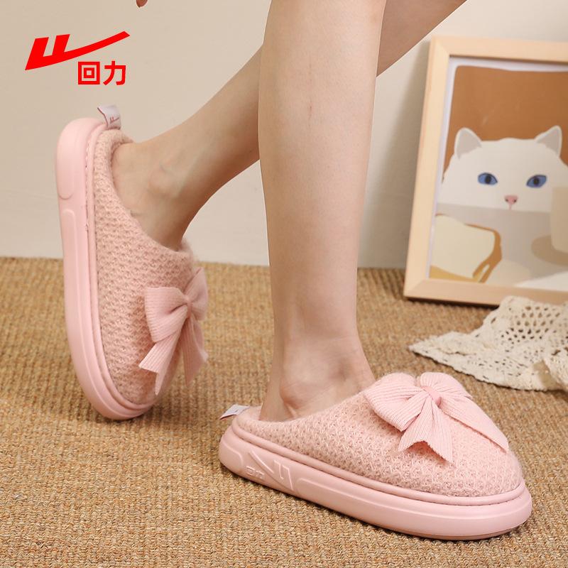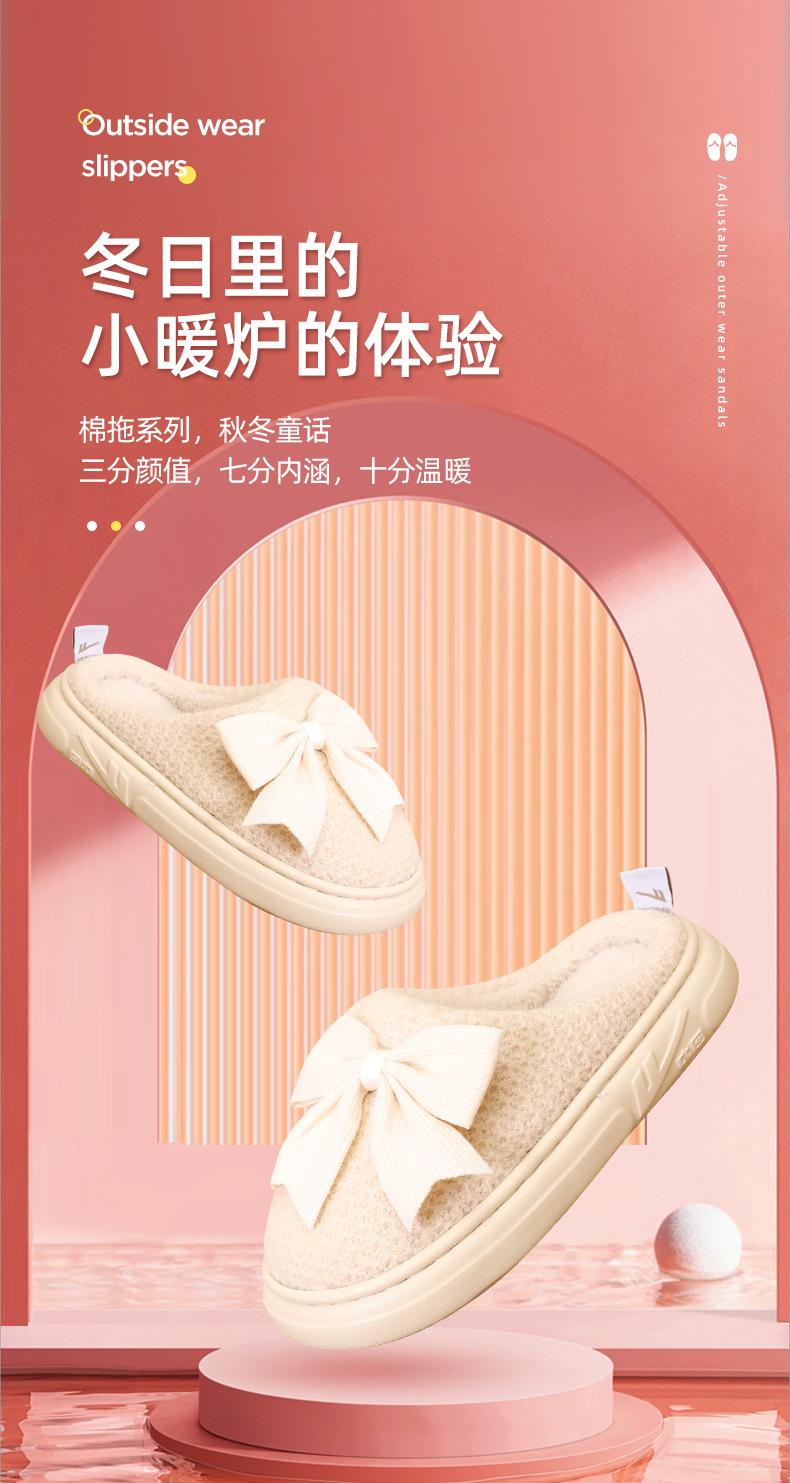 [Oferta Relámpago con 30% de descuento] Pantuflas de Algodón con Lazo Dulce, Suelas Gruesas para Invierno, Cálidas y Felpa, Antideslizantes para Interior