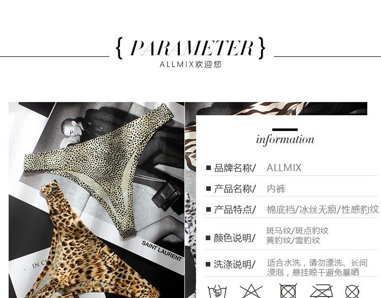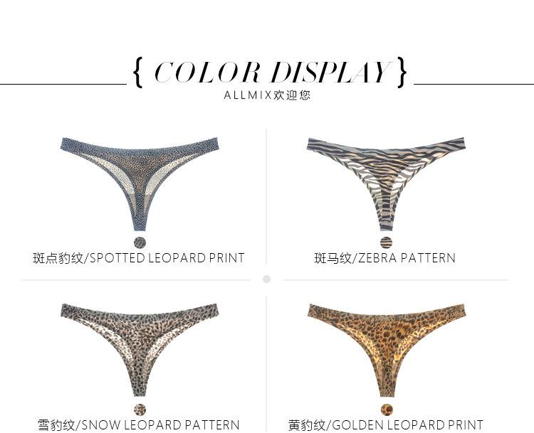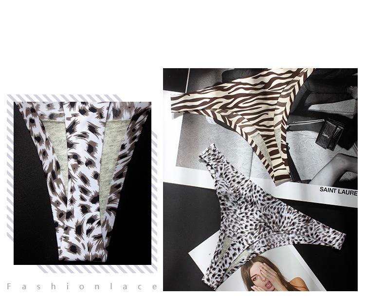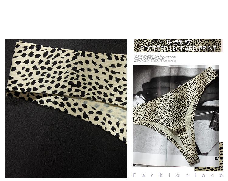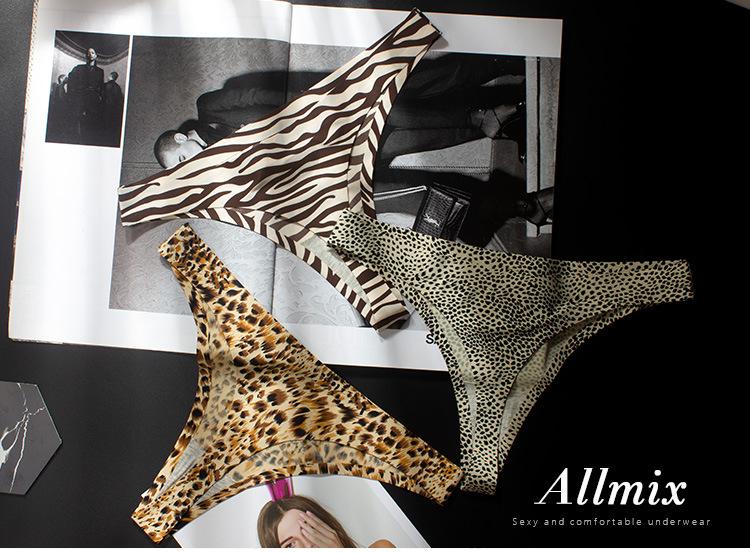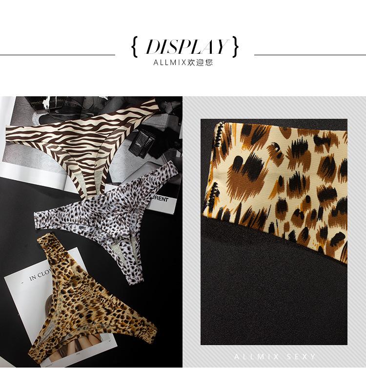 Ropa Interior de Mujer de Comercio Exterior Sexy e Interesante Estampado de Leopardo Seda de Hielo Cintura Baja Una Pieza Sin Costuras Calzones Tanga para Mujer