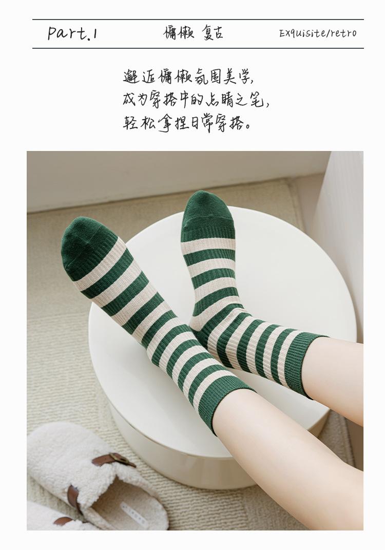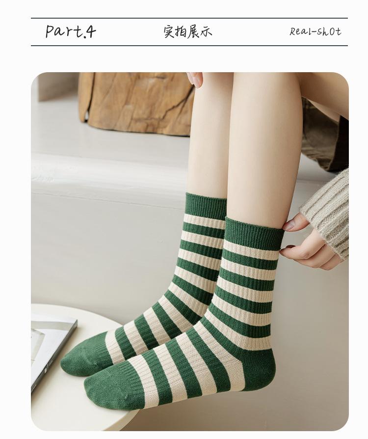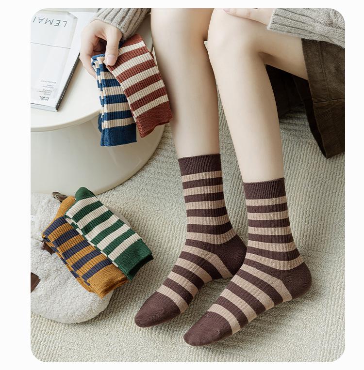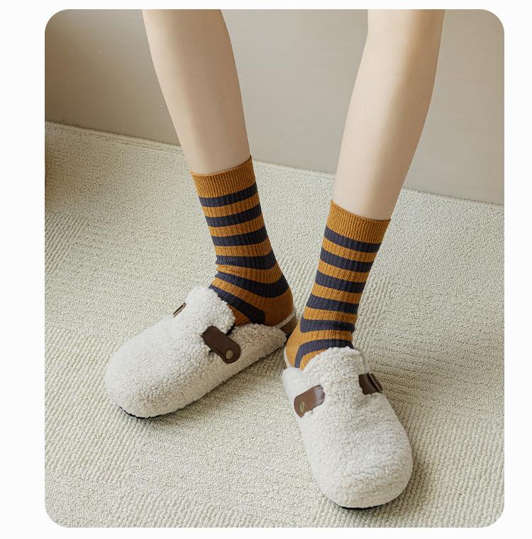 Calcetines Rayados de Bloques de Color para Mujer, Calcetines de Media Pantorrilla Otoño e Invierno, Calcetines Cálidos Deportivos para Mujer Estilo Birkenstock Arrugados Doble Aguja, Venta al por Mayor desde Zhuji