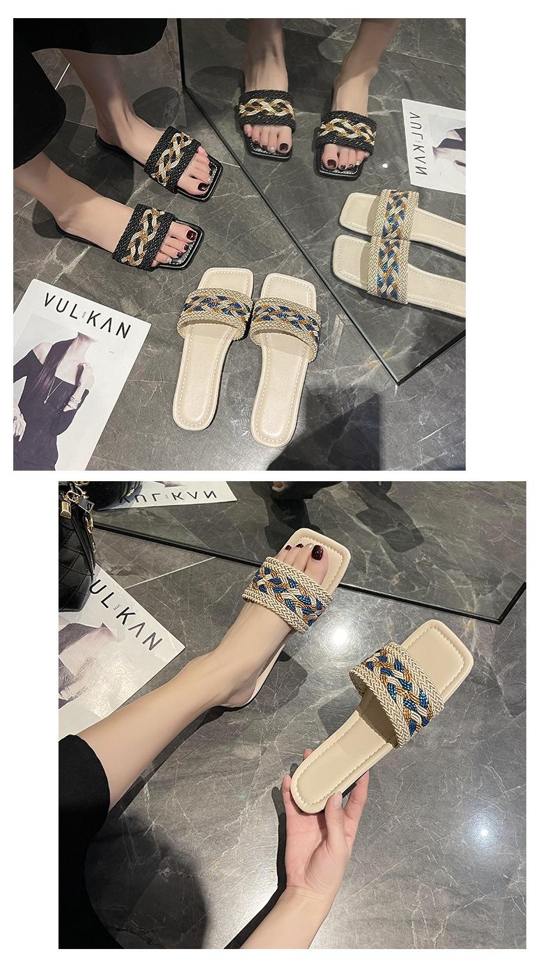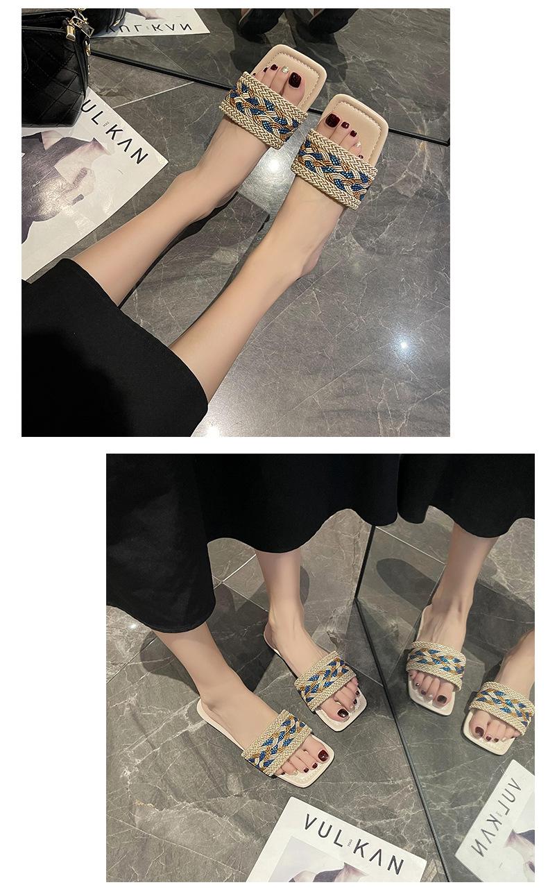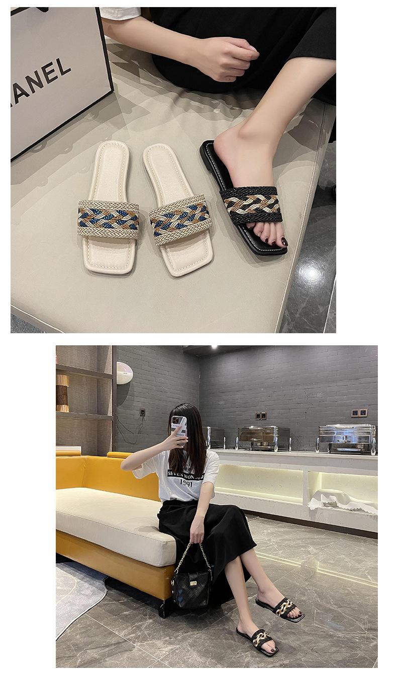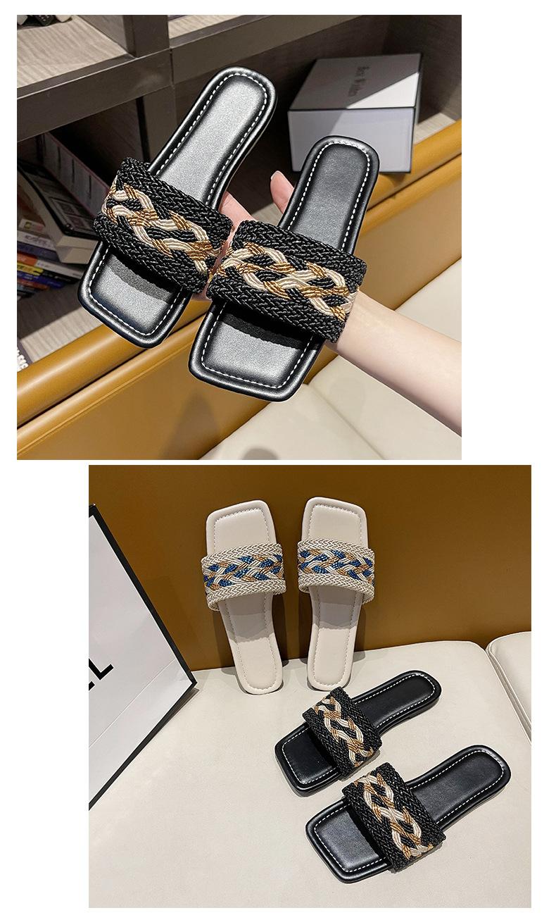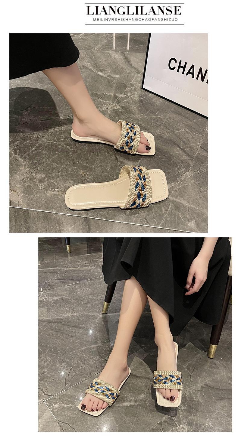 Sandalias y zapatillas de playa de estilo coreano de gran tamaño con tejido plano y cabeza cuadrada para mujer, estilo étnico, estación independiente