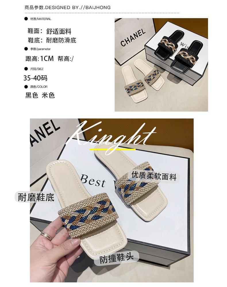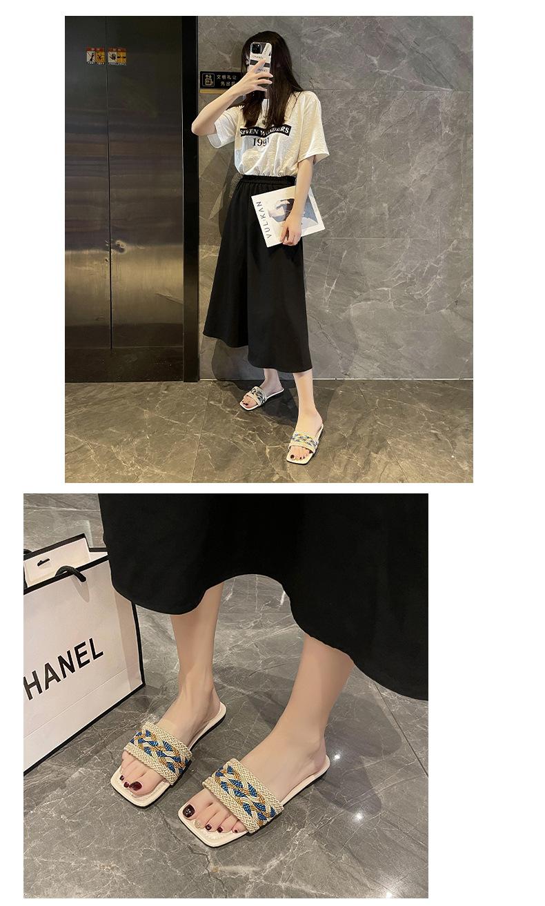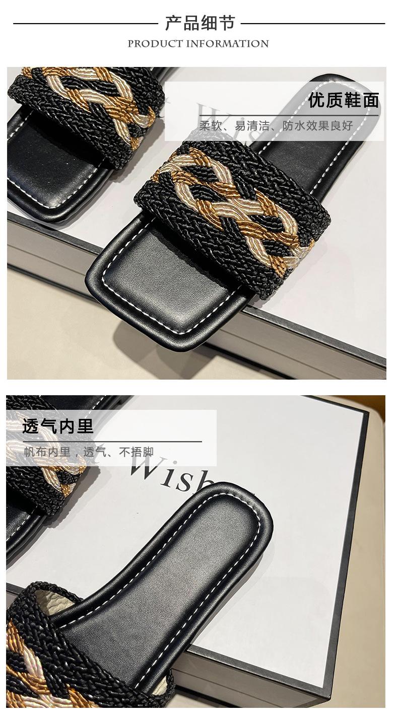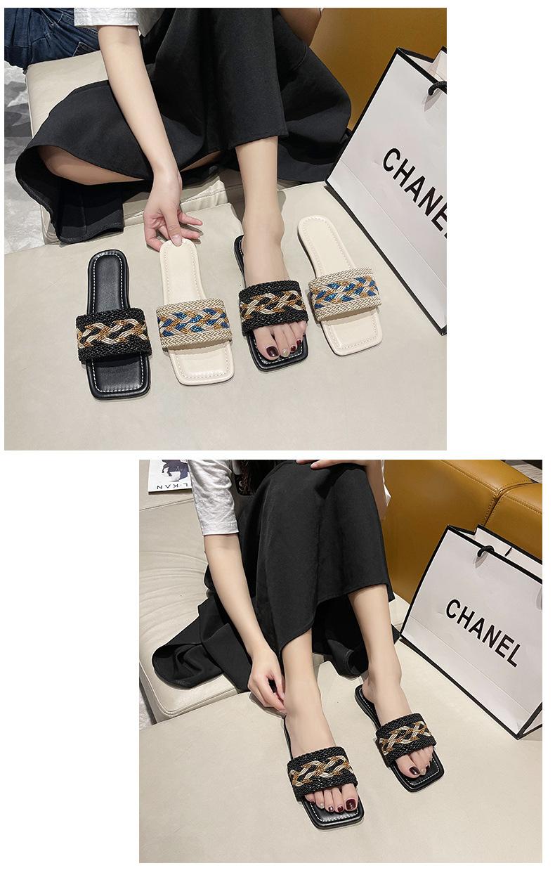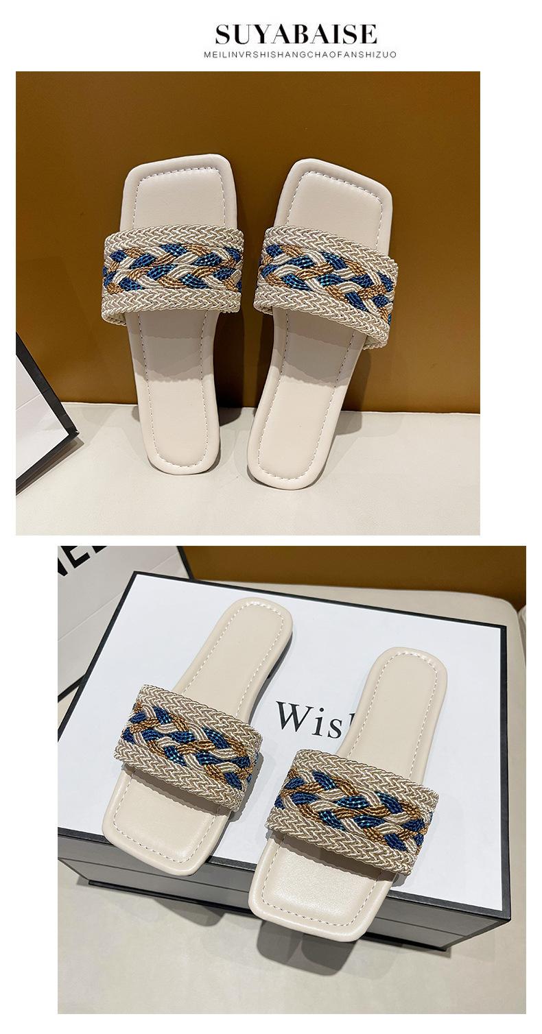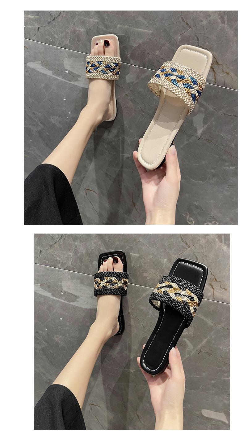 Sandalias y zapatillas de playa de estilo coreano de gran tamaño con tejido plano y cabeza cuadrada para mujer, estilo étnico, estación independiente
