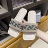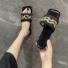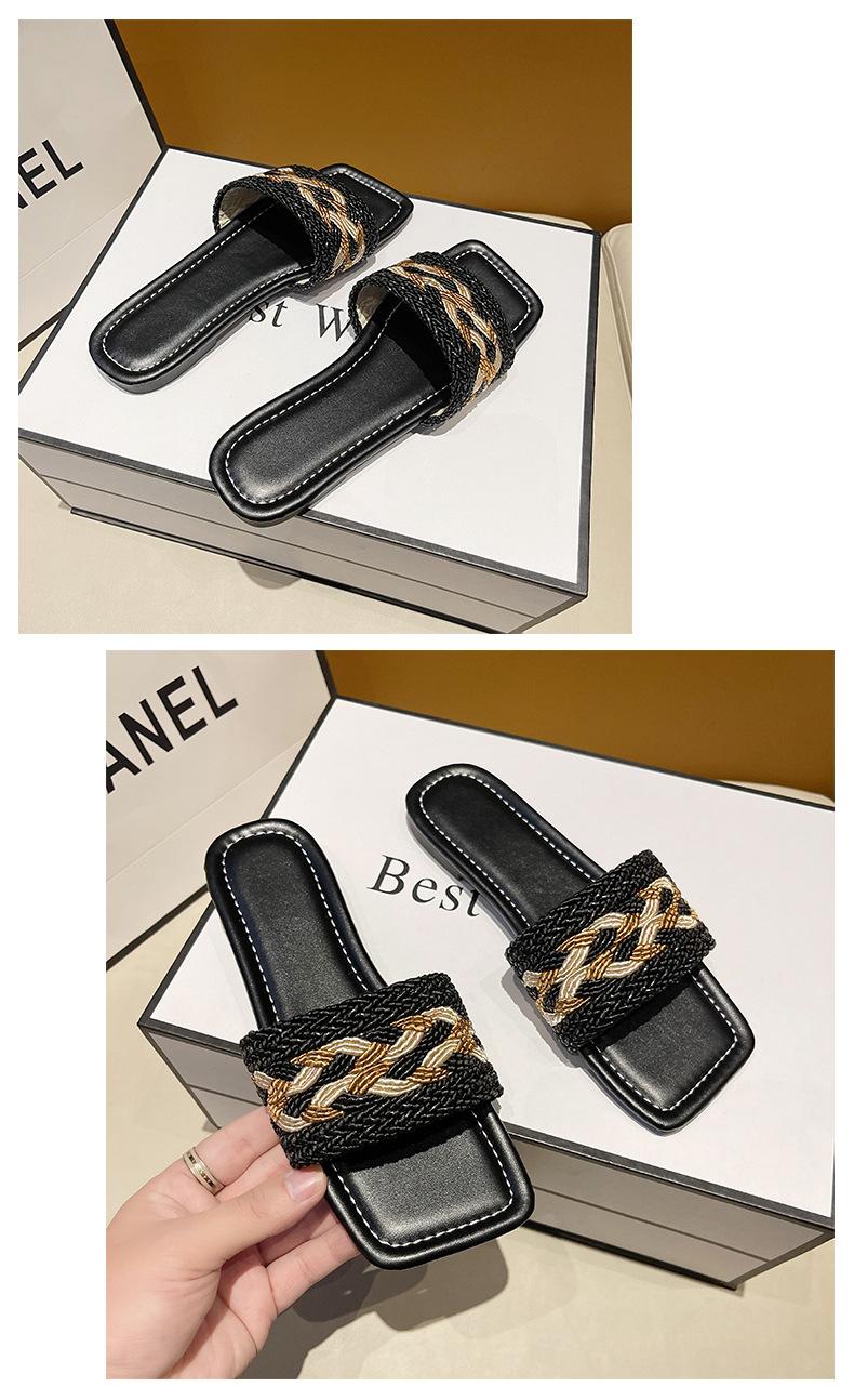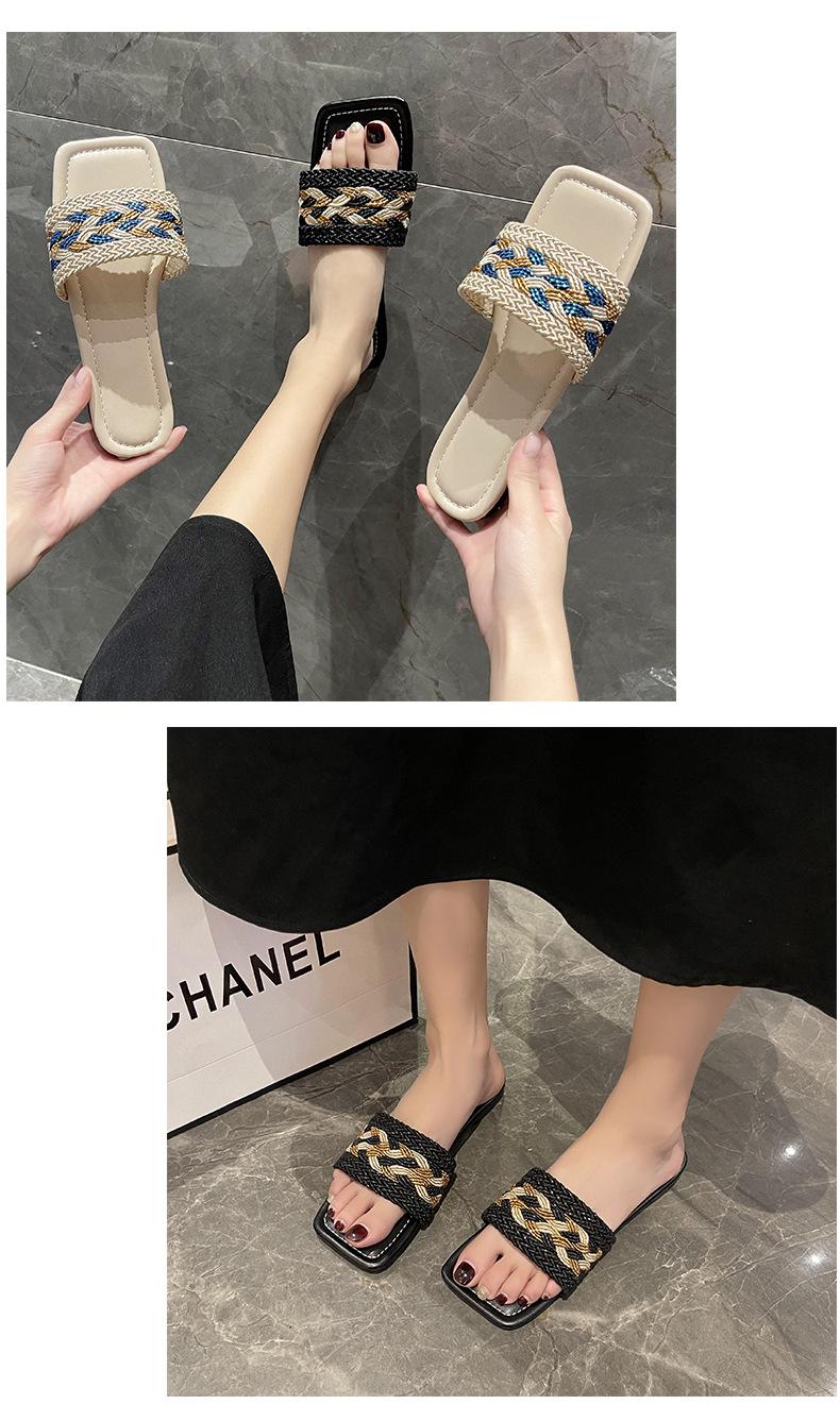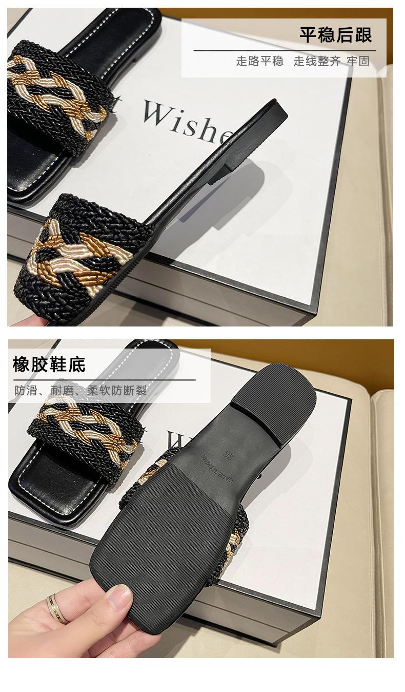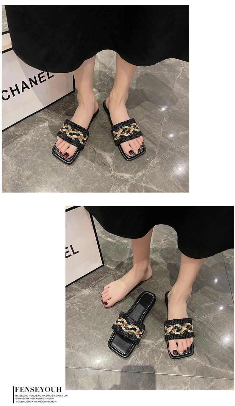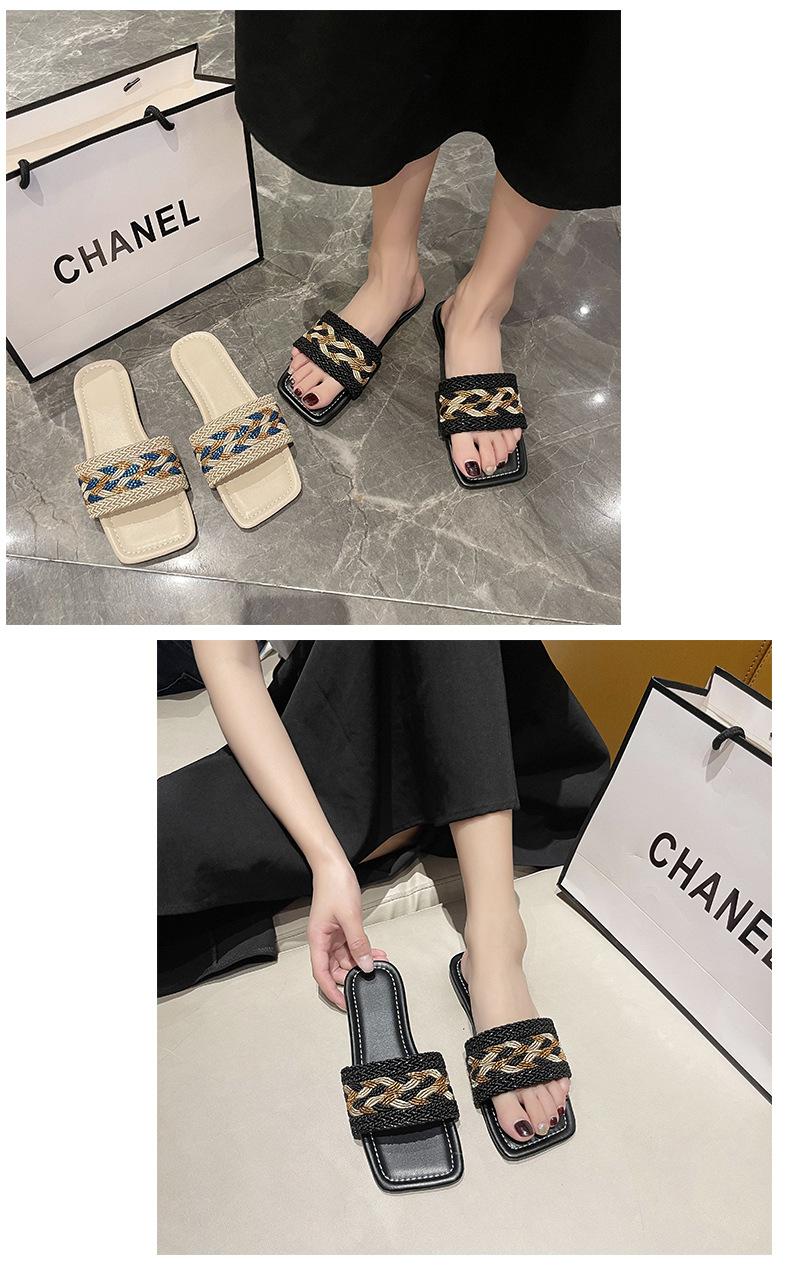 Sandalias y zapatillas de playa de estilo coreano de gran tamaño con tejido plano y cabeza cuadrada para mujer, estilo étnico, estación independiente