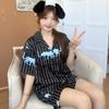 Pijama informal de verano para pareja, holgado, de manga corta, con estampado de leopardo azul y blanco, con solapa sencilla y cuello redondo