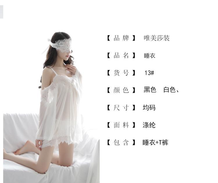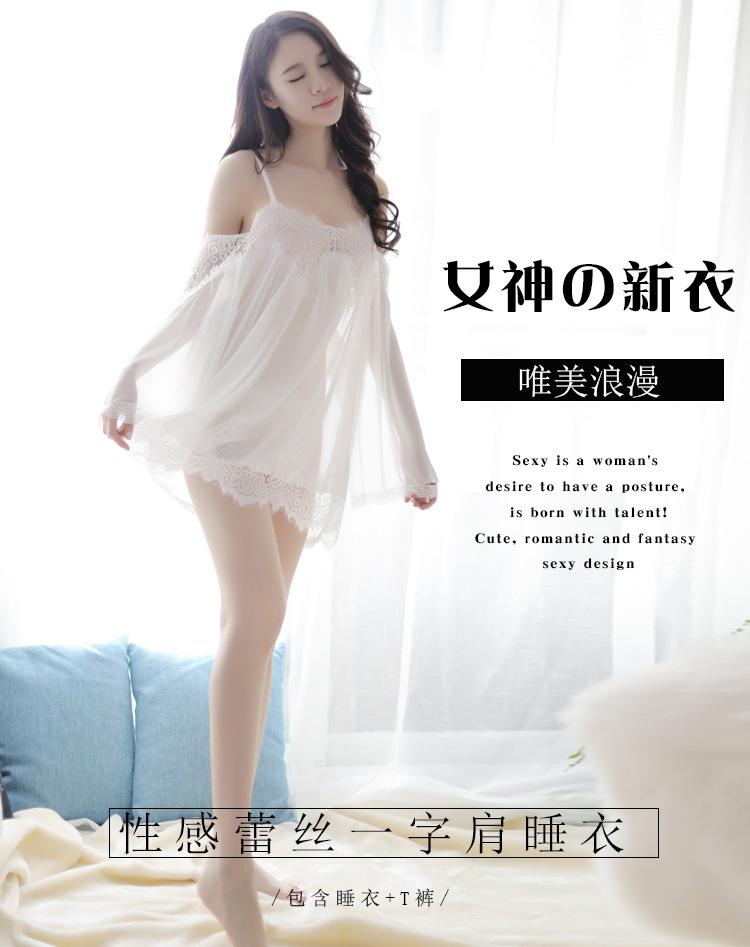 Camisón Sexy de Encaje Talla Grande Lencería Sexy Transparente de Un Hombro con Tirantes Pijama Tentación Ropa de Casa Set para Mujeres