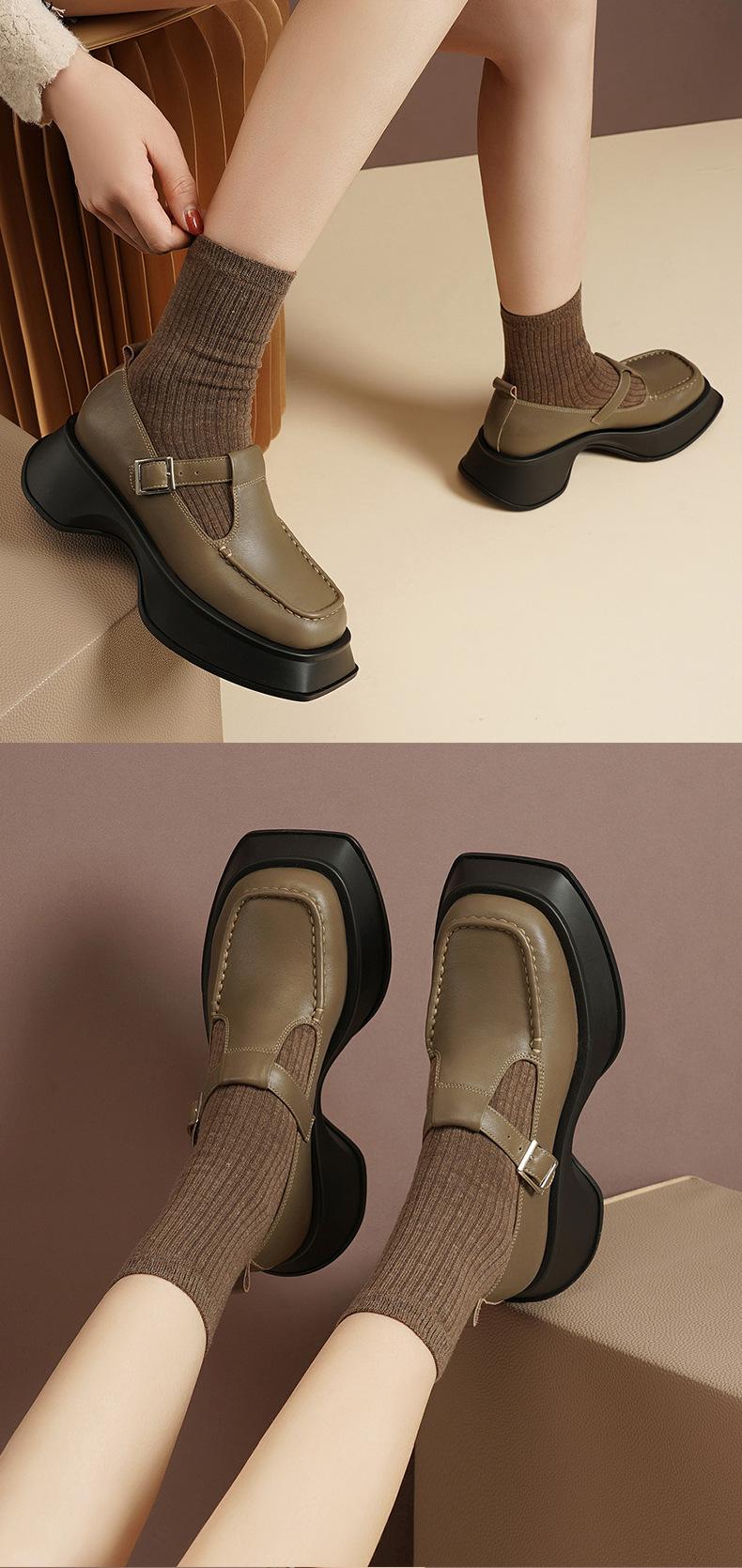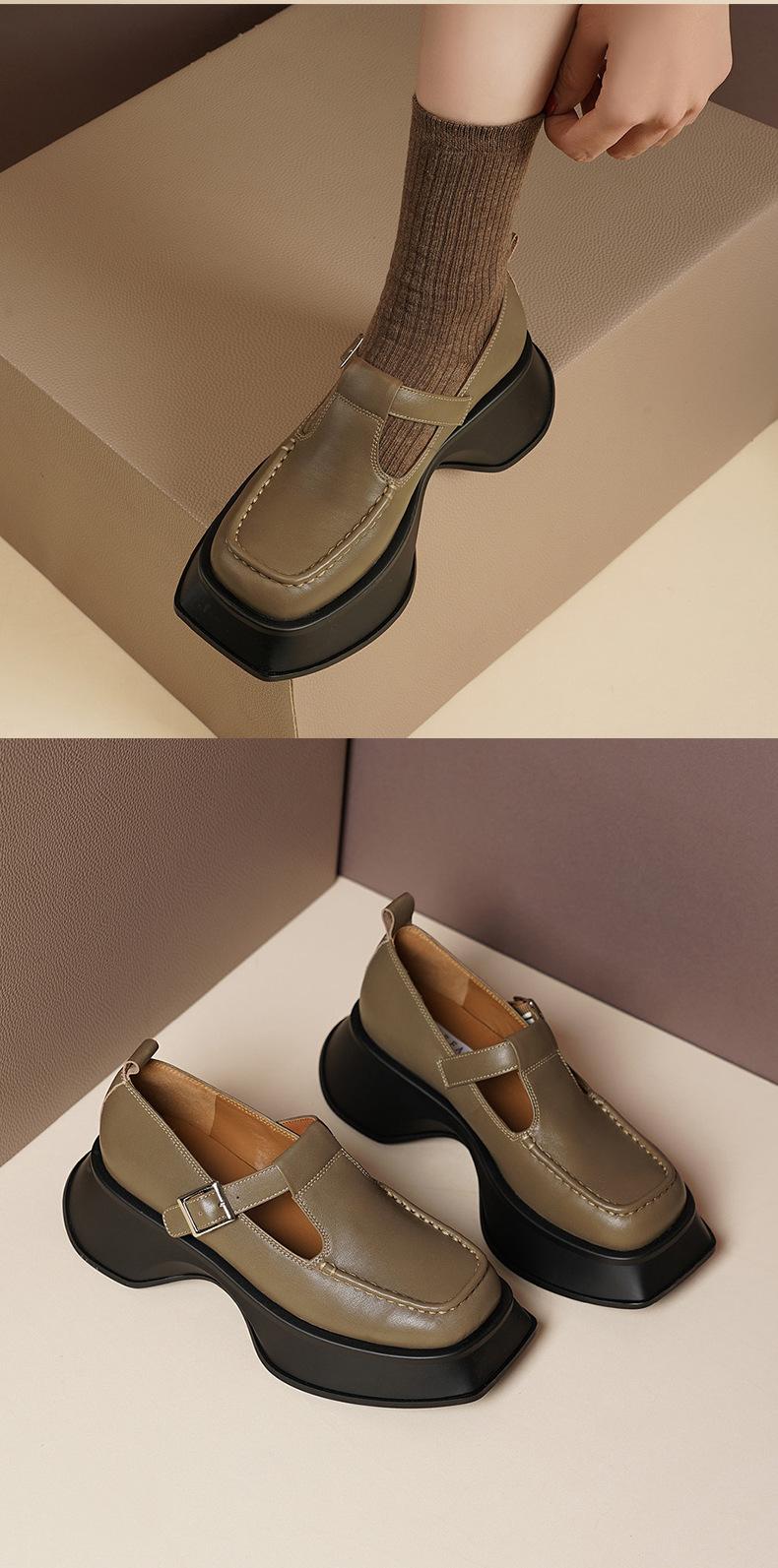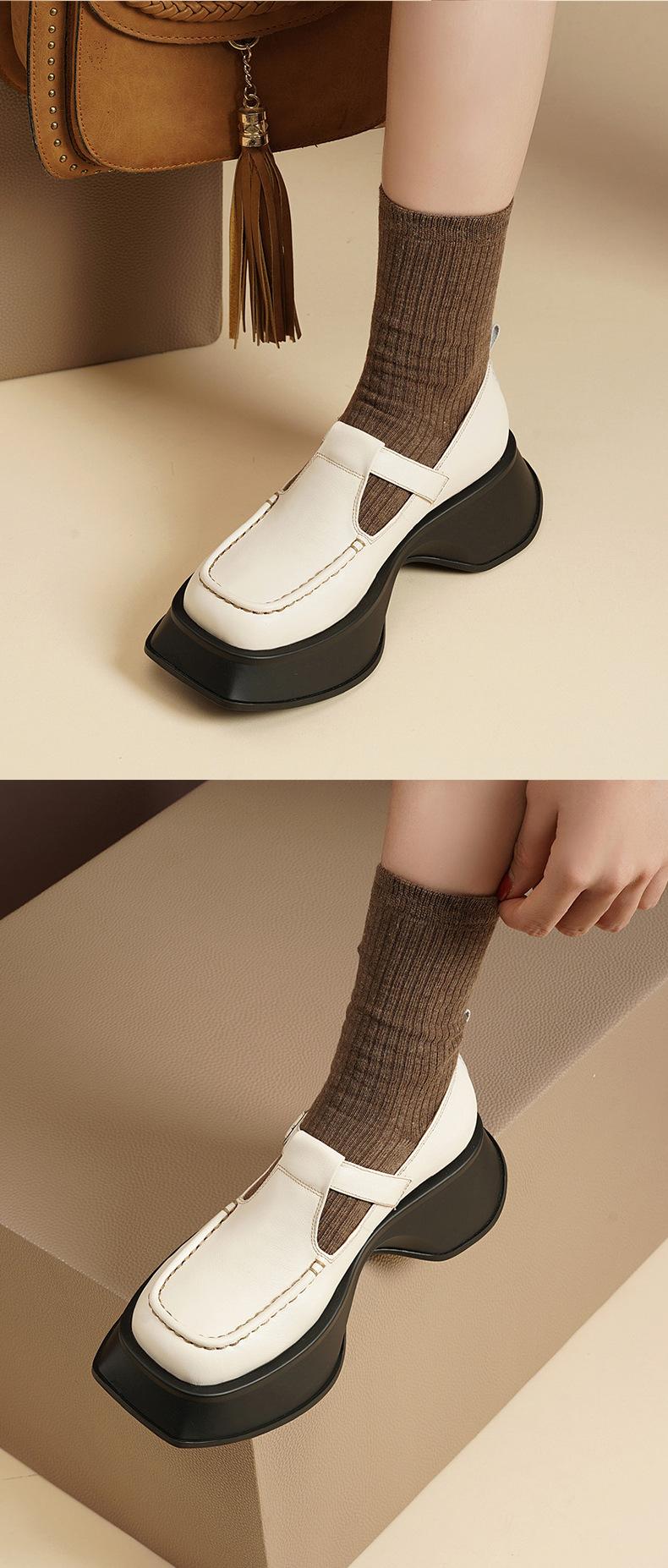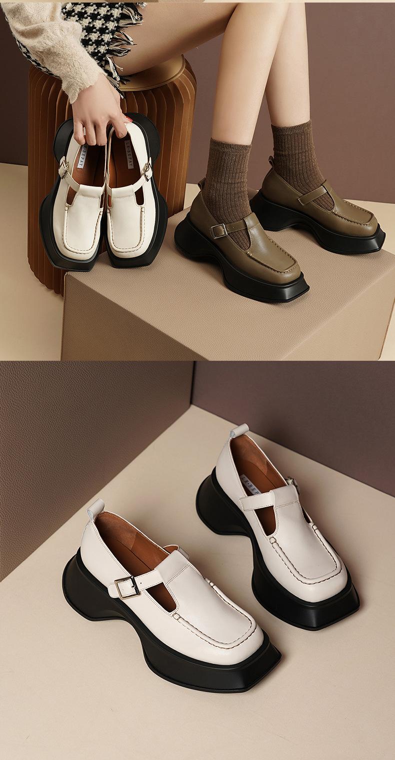 Zapatos Mary Jane tipo mocasín de Primavera/Verano 2024 Moda para Mujer Casual de Suela Gruesa con Aumento de Altura Zapatos Individuales Bajos Versátiles Estilo Universitario